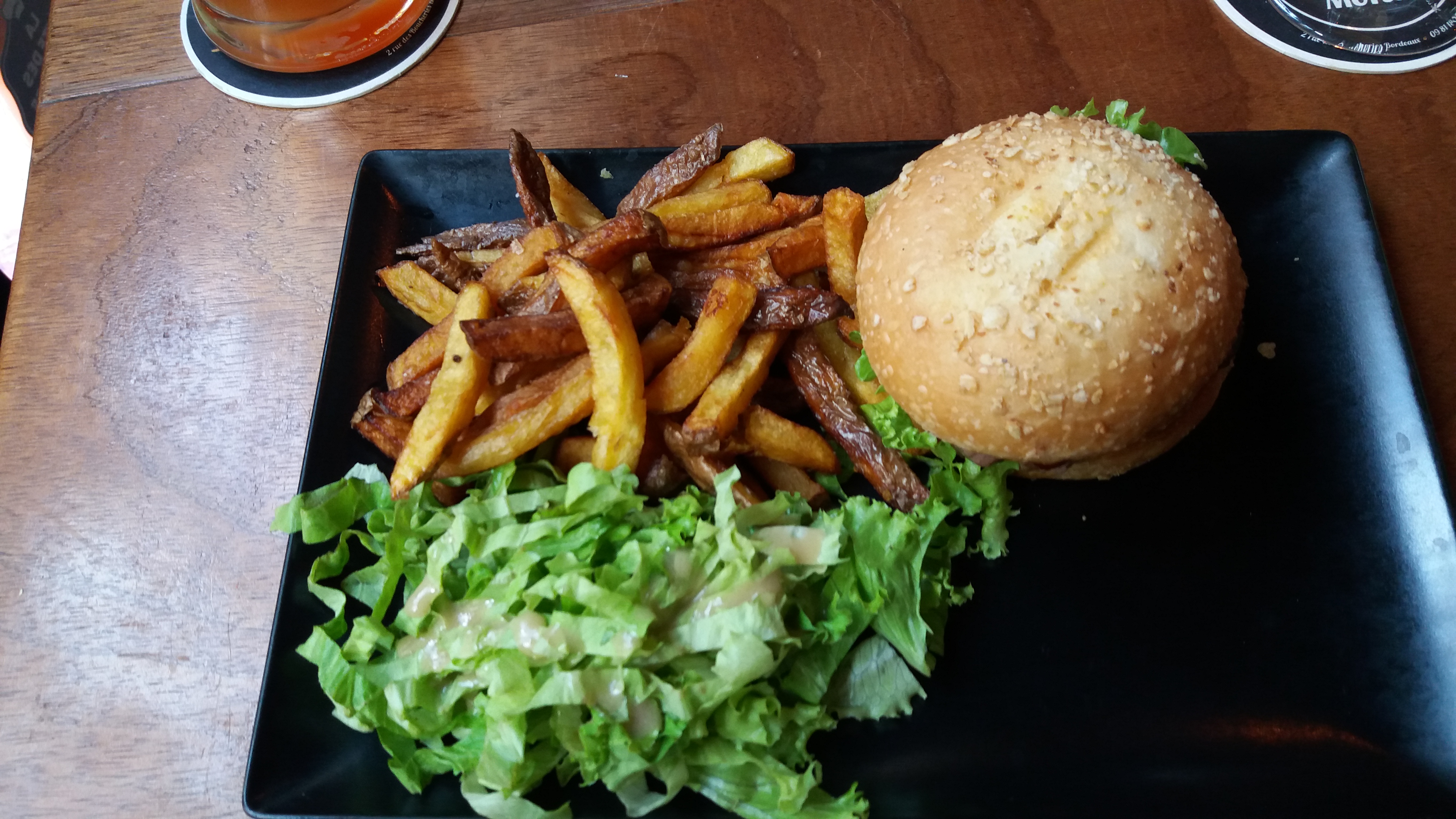 Très bonne découverte, lieu très joli, confortable et déco sympa, le personnel est très accueillant, et le rapport qualité prix très correct ! Nous avons toutes pris des hamburgers et ils étaient excellents, les frites aussi. Service rapide et restaurant bien placé dans un quartier sympa de Bordeaux