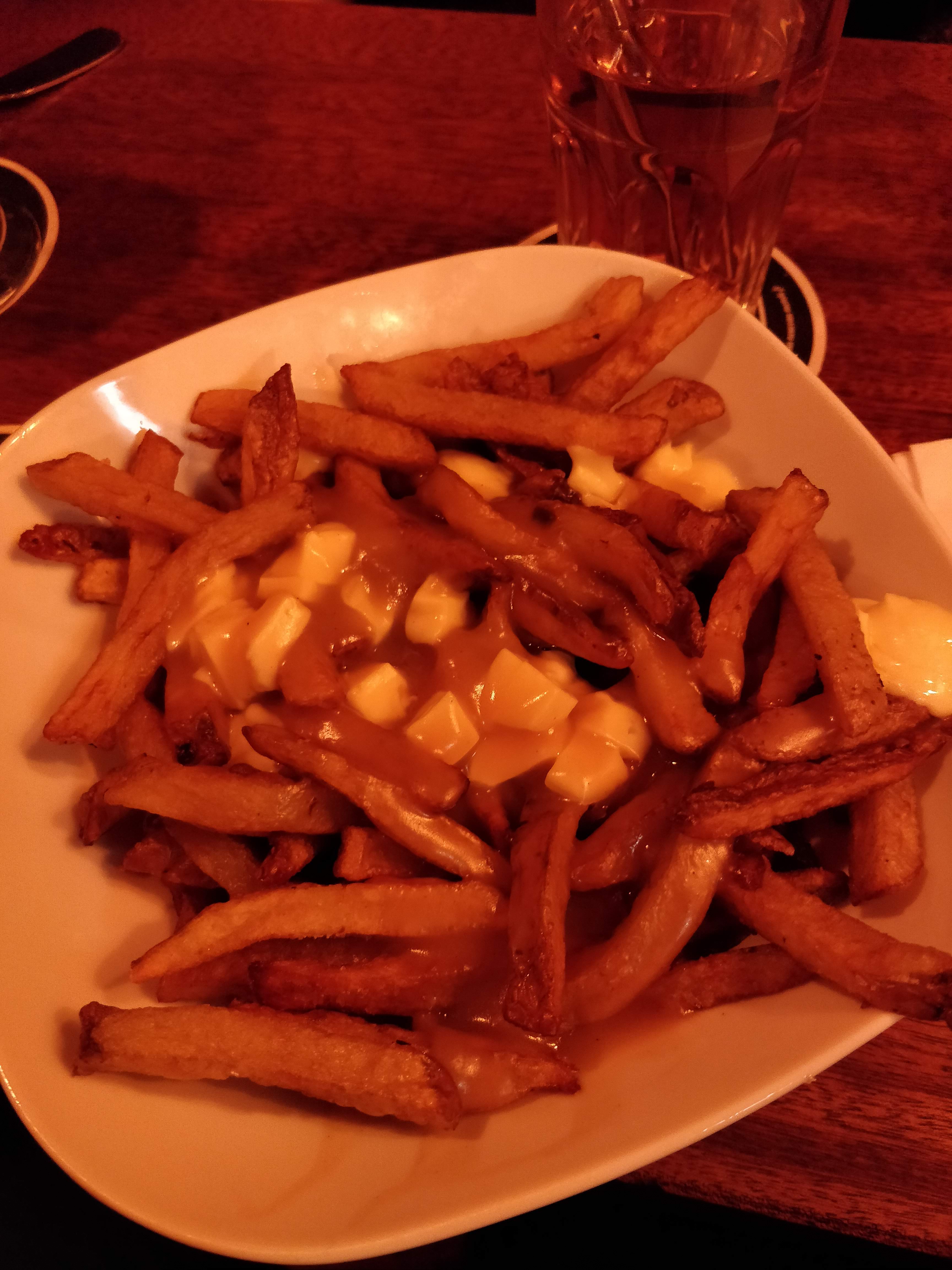 Toujours un plaisir de pouvoir manger une poutine même si le fromage n'est pas l'original québécois. Très bon accueil et large choix de bières brassées sur place. Une excellente soirée en somme.