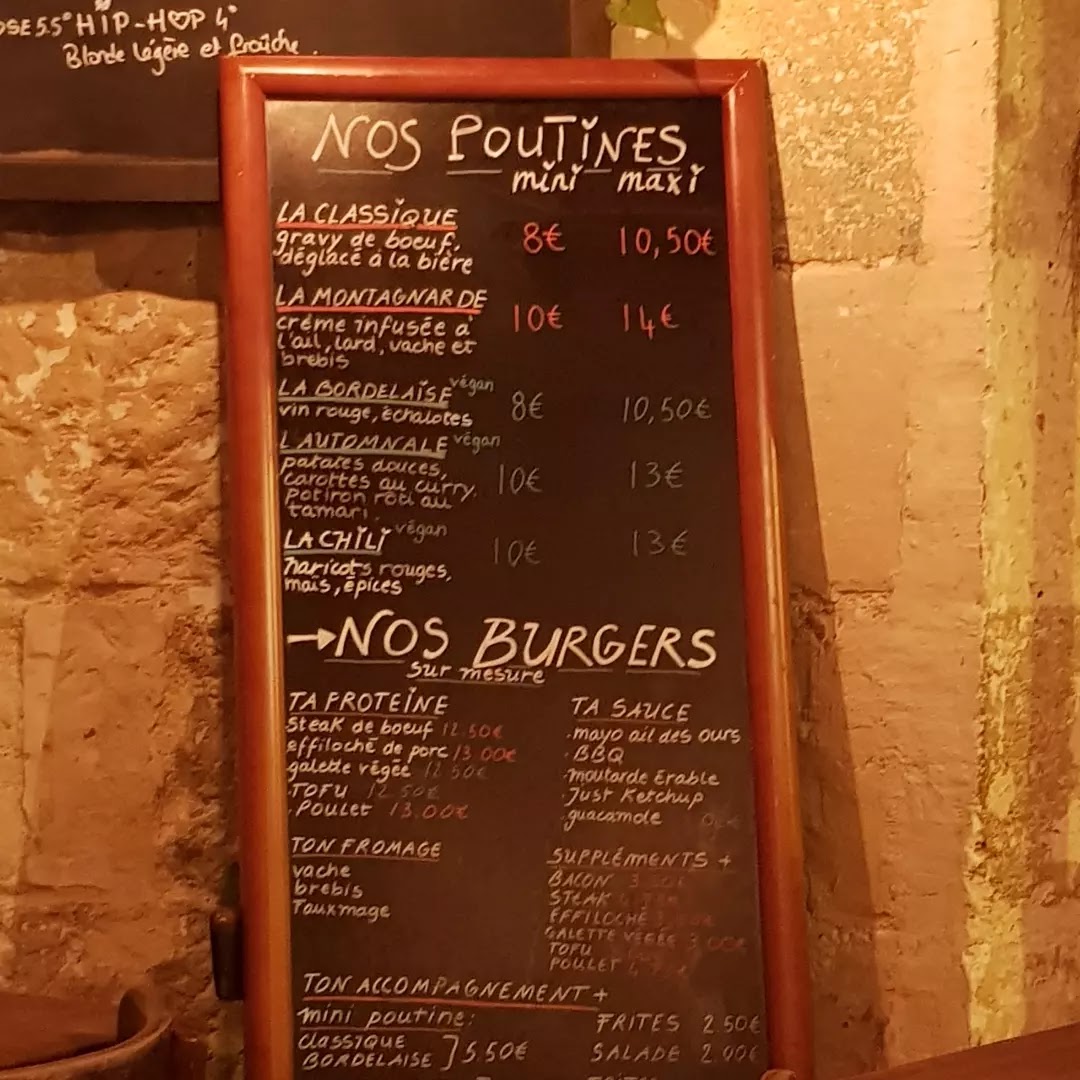 Les bières locales sont très bonnes et la poutine est fabuleuse ( la montagnarde est la meilleure). C'est une pépite de bordeaux !