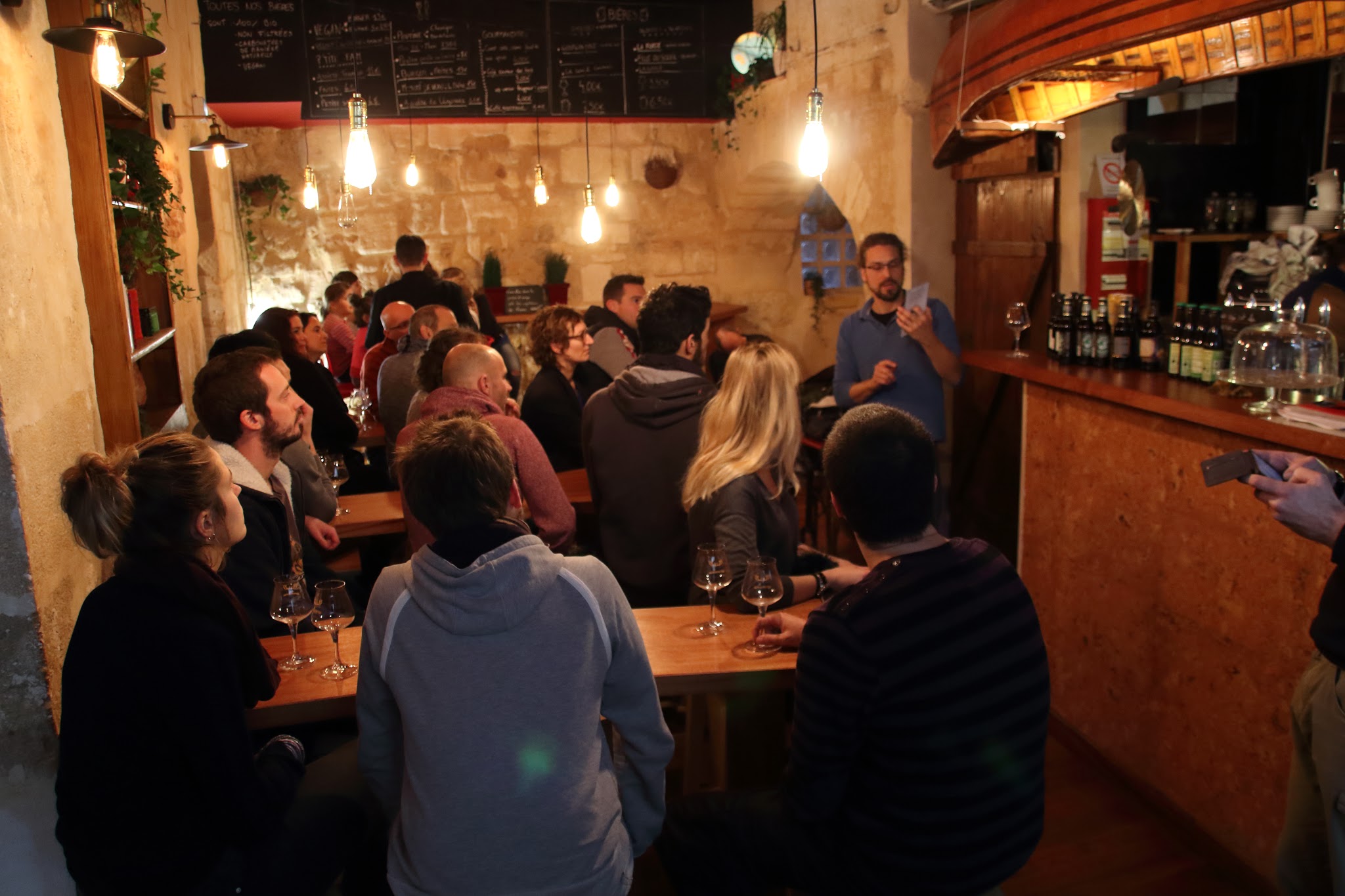 Lieu idéal pour passer une excellente soirée entre amis. L'ambiance est chaleureuse et il y en a pour tous les goûts, tant pour les bières que pour les plats. Mention spéciale pour les assiettes végétariennes qui en plus d'être équilibrées sont délicieuses ! :)