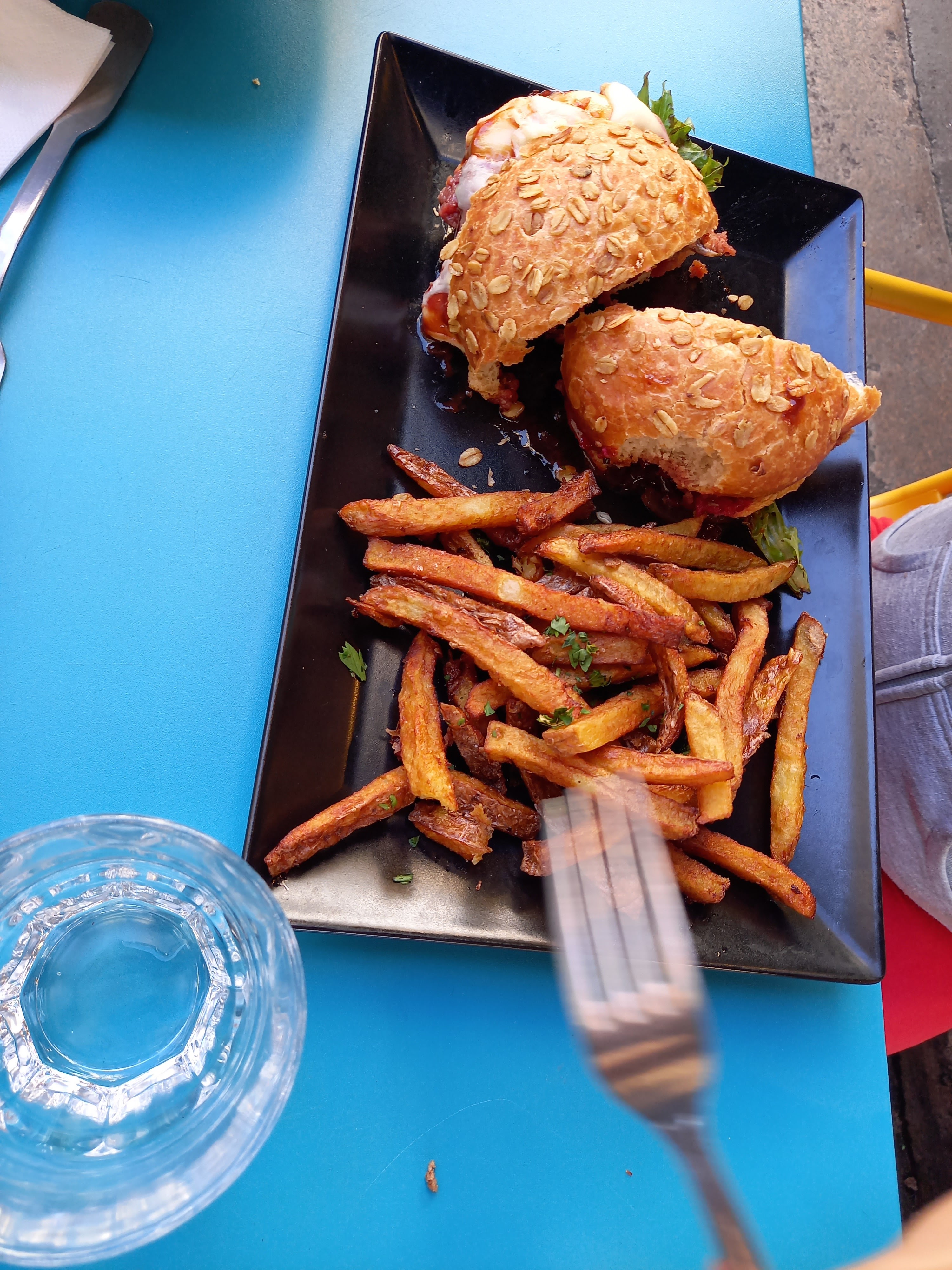 Un petit repas improvisé en milieu de semaine pour casser la routine et ça fait du bien. Une troisième visite dans ce restaurant de burgers et de poutines. Pour une fois, j’ai été raisonnable et j’ai pris des frites en accompagnement, et je me suis régalée, et bien entendu un burger avec steack. Très bon restaurant de burgers. Cadre sympa, personnel agréable.