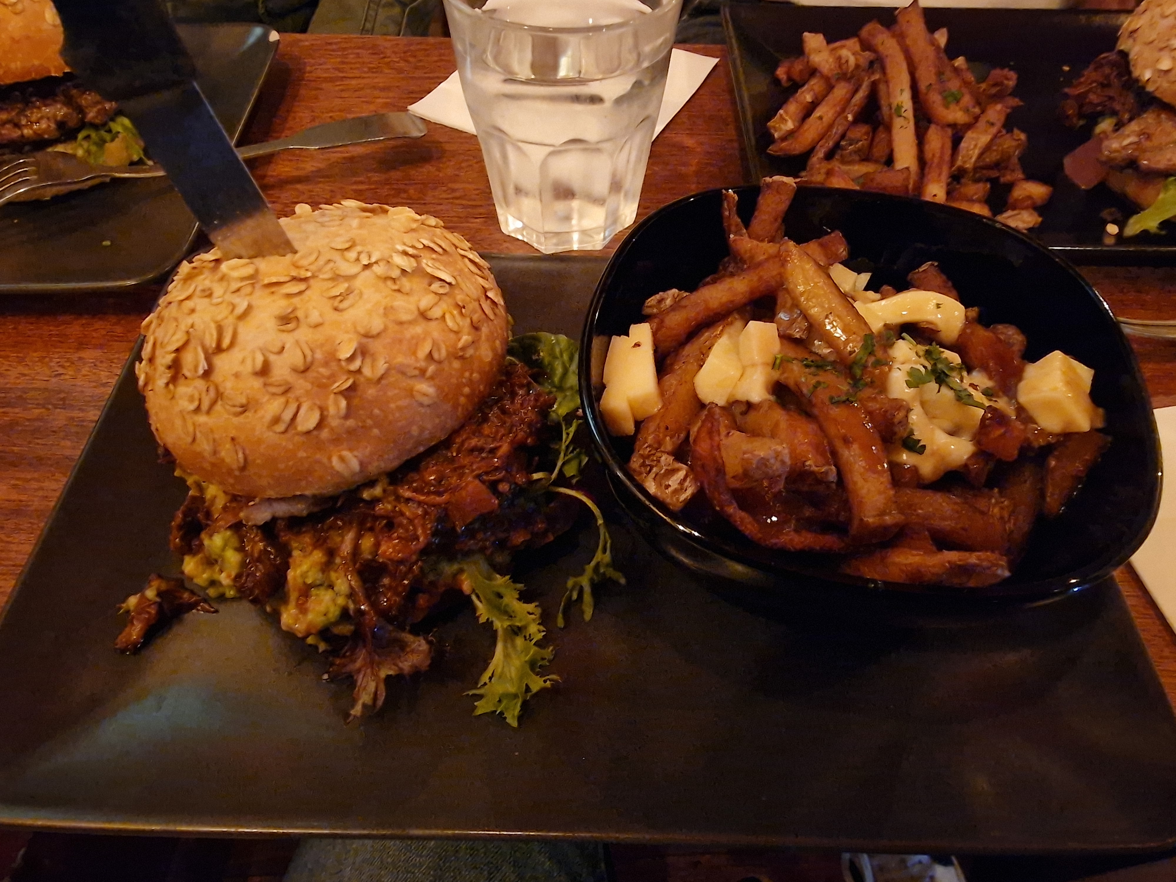 Super bar : ambiance et musique cool et poutine et burger végé ou vegan possible, un plaisir (en plus tout est bio)