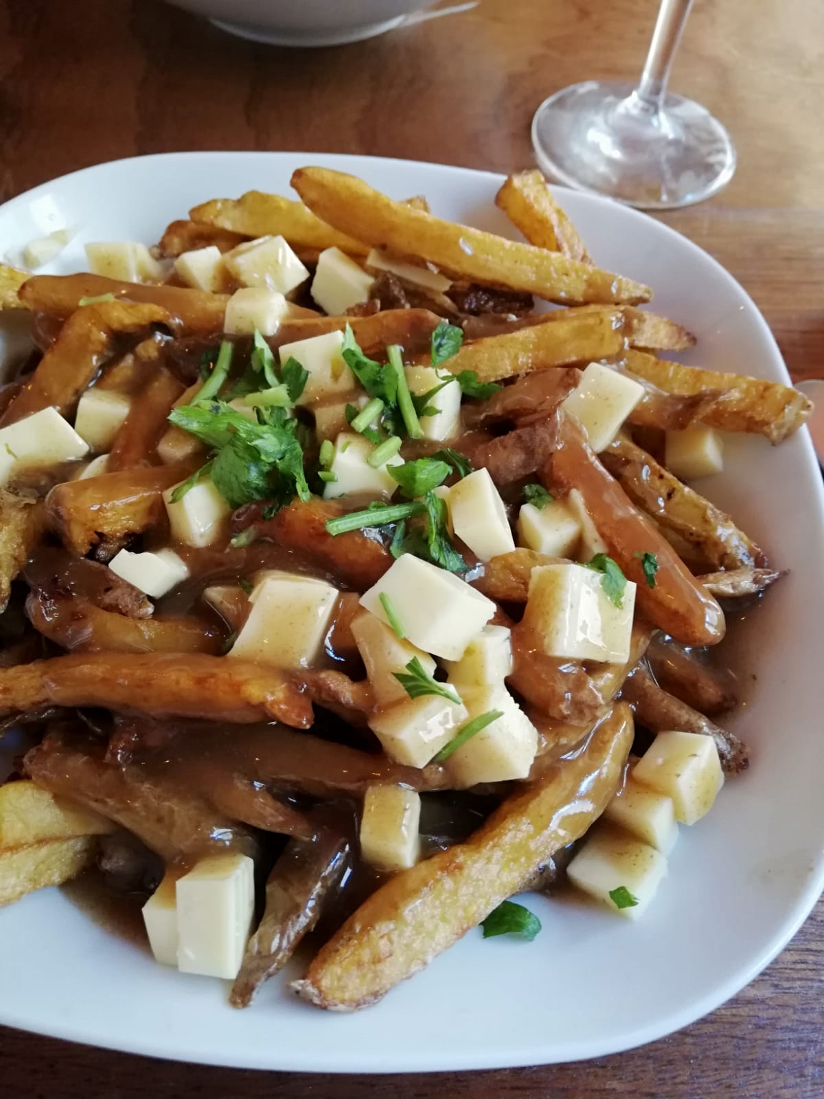 Bar restaurant dans un petit espace au cœur de Bordeaux. Ambiance chaleureuse, petit bémol, la lumière chaude fait mal aux yeux pour manger et chansons Françaises même si j'adore, j'aurai choisi une web radio canadienne. J'ai choisi une mini poutine montagnarde. 1ere impression sur la quantité, j'ai peur de ne pas avoir assez.... Mais en fait c'est suffisant. On sent bien que les produits sont frais. La serveuse est vraiment agréable et le service rapide. Une proposition d'apéritif avant la prise de commande serait plus intéressante le temps de faire le choix Les tarifs sont très corectent