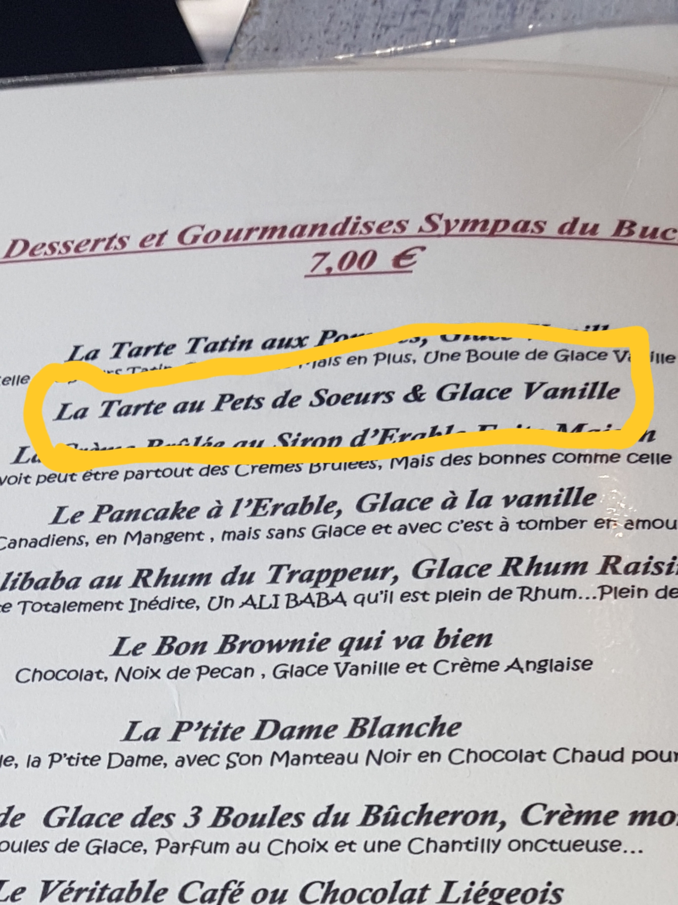Deco originale et typique! Un detour aux toilettes s'impose... Plat originaux, bons et accessibles niveau prix , ne partez pas sans gouter a la tarte aux pets de soeurs!!!! Serveur très sympathique et disponible.