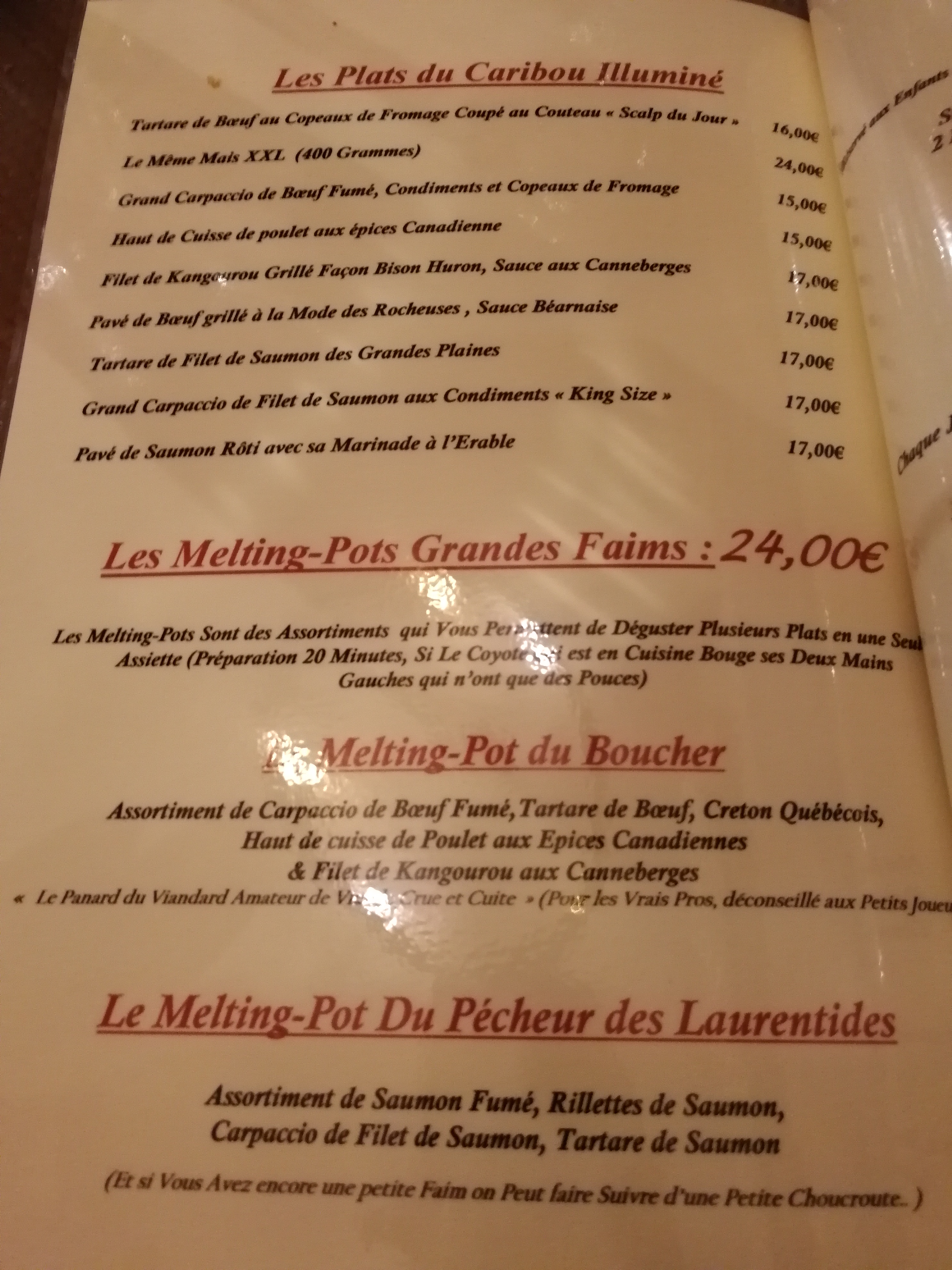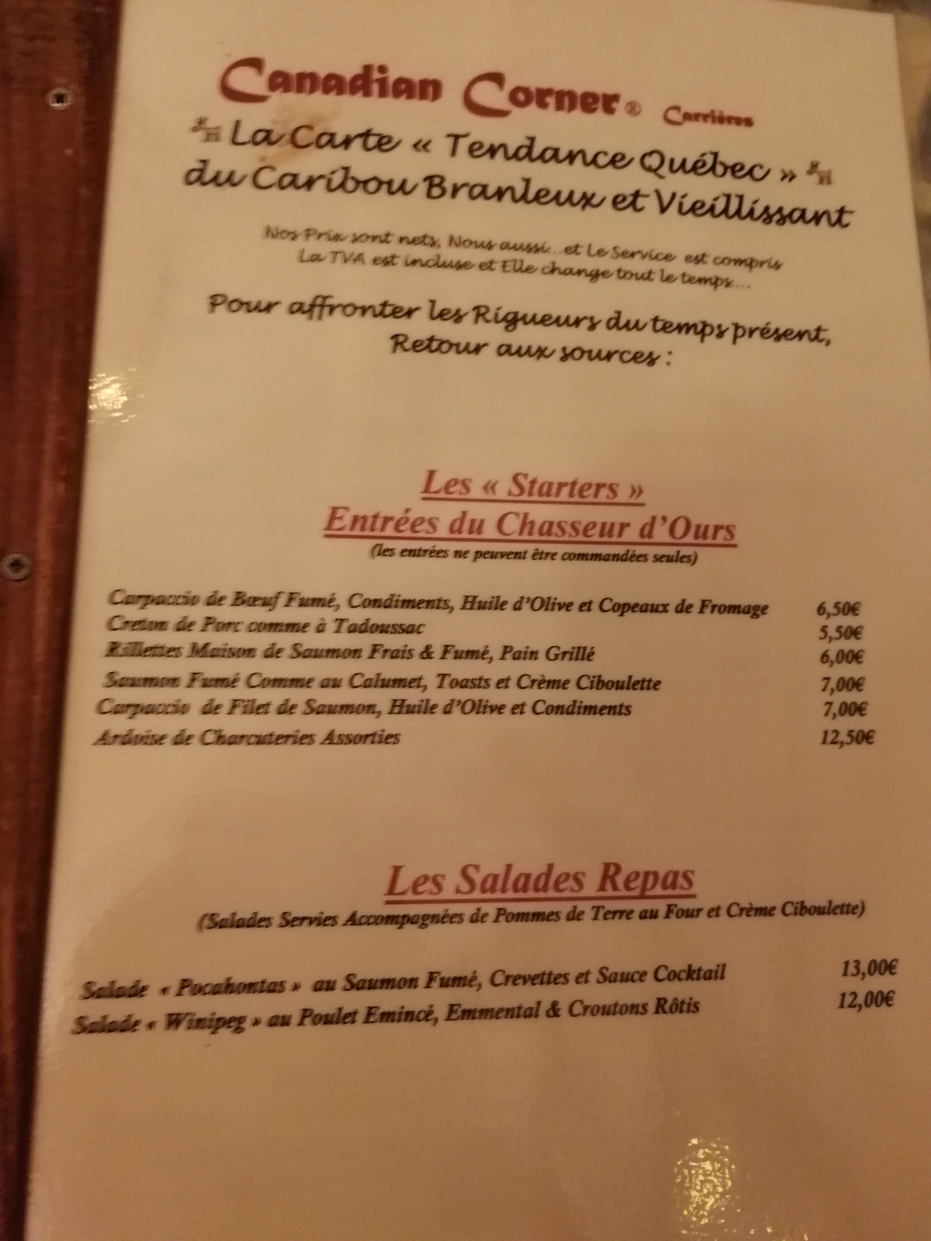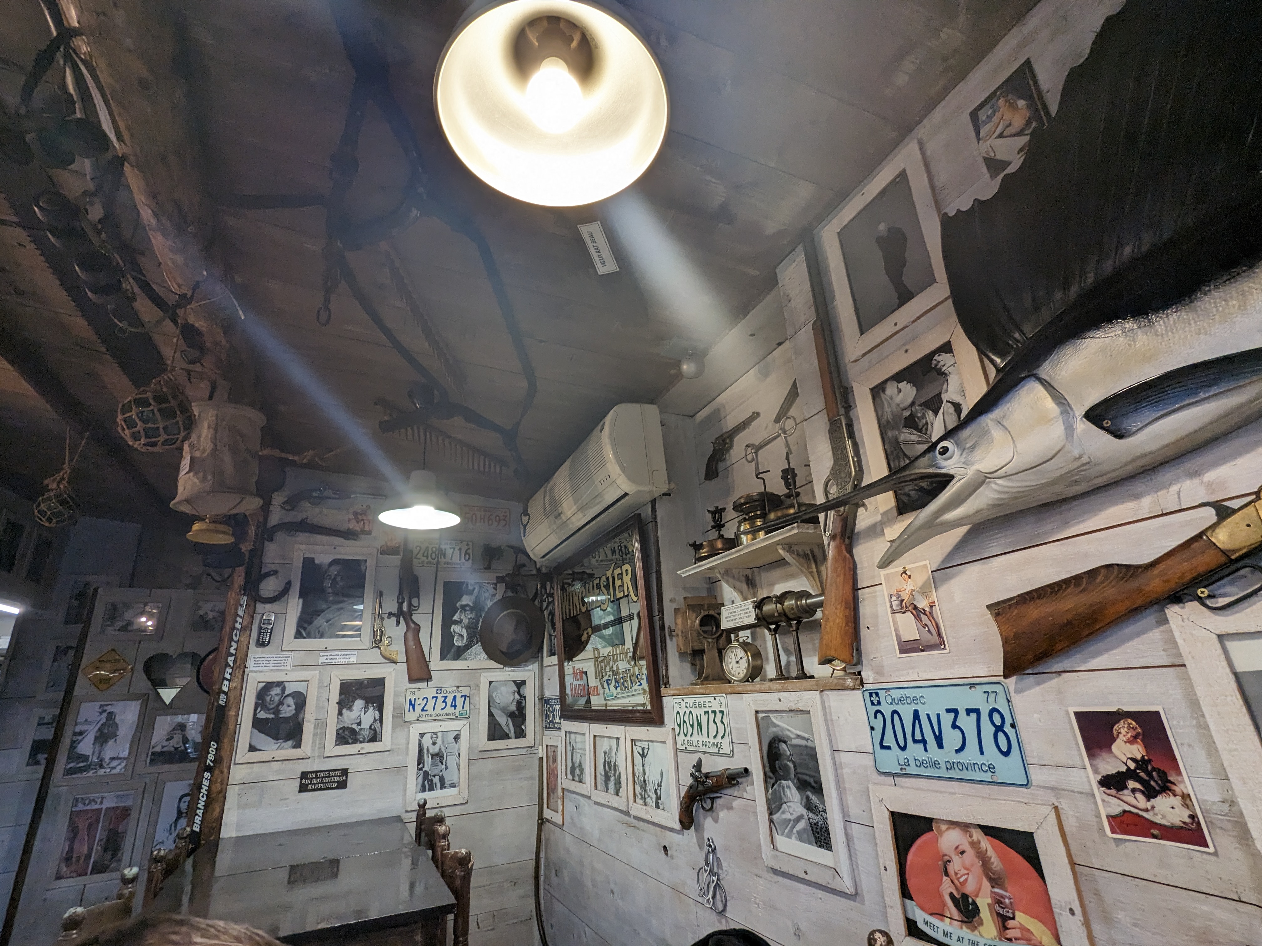 Je recommande ce restaurant à 100% car le service a été impeccable et la cuisine est délicieuse. La carte proposée est à la fois canadienne et française. On retrouve la traditionnelle poutine que j’ai goûté et que j’ai aimé. Le serveur est vraiment très sympa. Il n’est pas originaire du Canada, mais il est aussi cool que les québécois ! Le restaurant est décoré de façon humoristique. On retrouve un tas d’objets et images en tout genre avec des affiches rigolotes.
