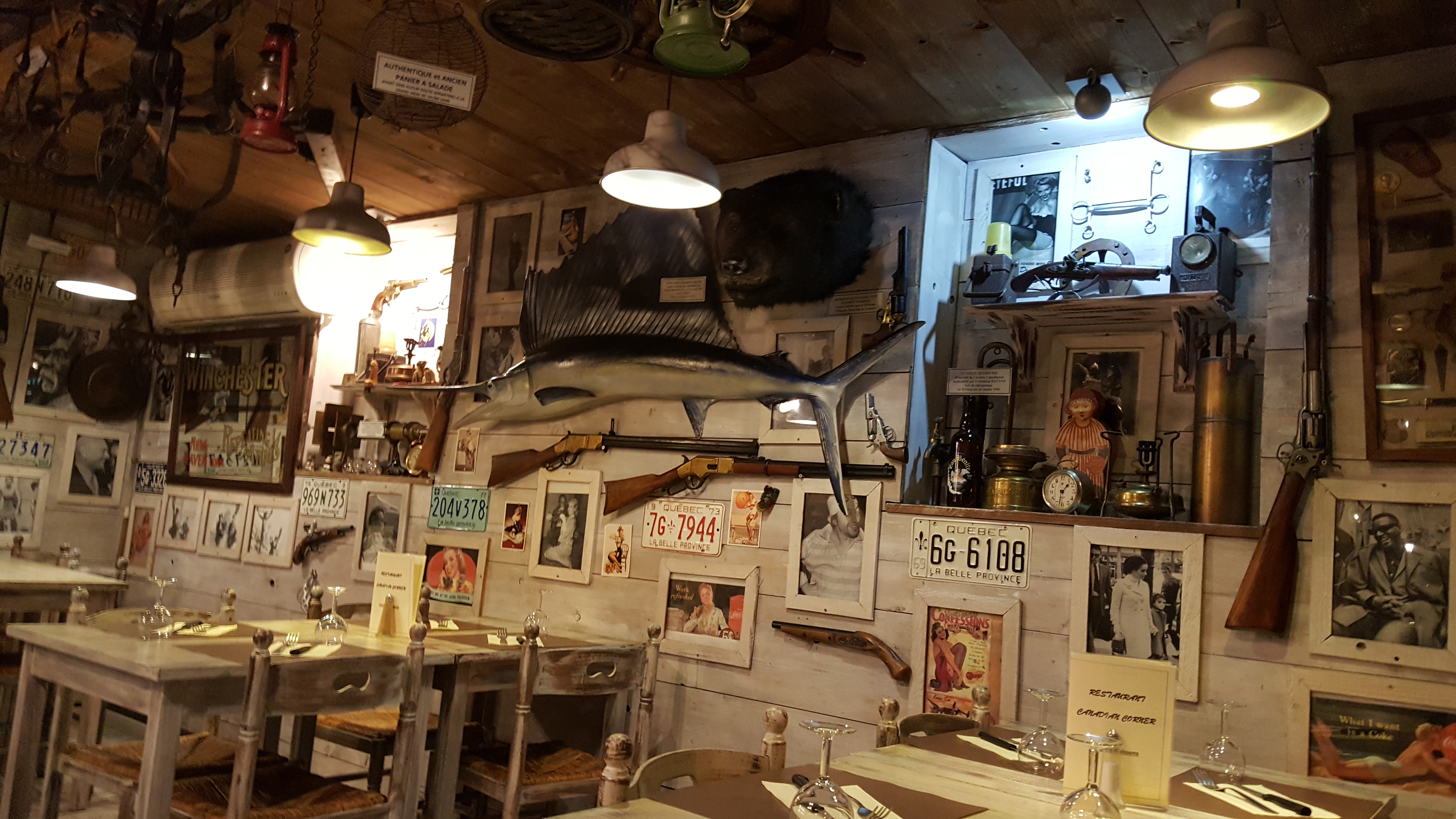Endroit très sympa. Nous y allons très régulièrement et avons toujours été bien accueillis. La décoration est déjantée : vous pouvez passer des heures à observer tout ce qui a pu être accroché aux murs et au plafond (une barque, une tête de caribou, une pomme de terre, des peluches, des sous-vêtements de grand-mère...) Allez-y ça vaut le détour ! Je vous conseille très simplement la bavette : la viande est délicieuse. Les prix ne sont pas excessifs. On peut y manger entre 15 et 30€. (et pensez à réserver, surtout le week-end) Bonne soirée :D
