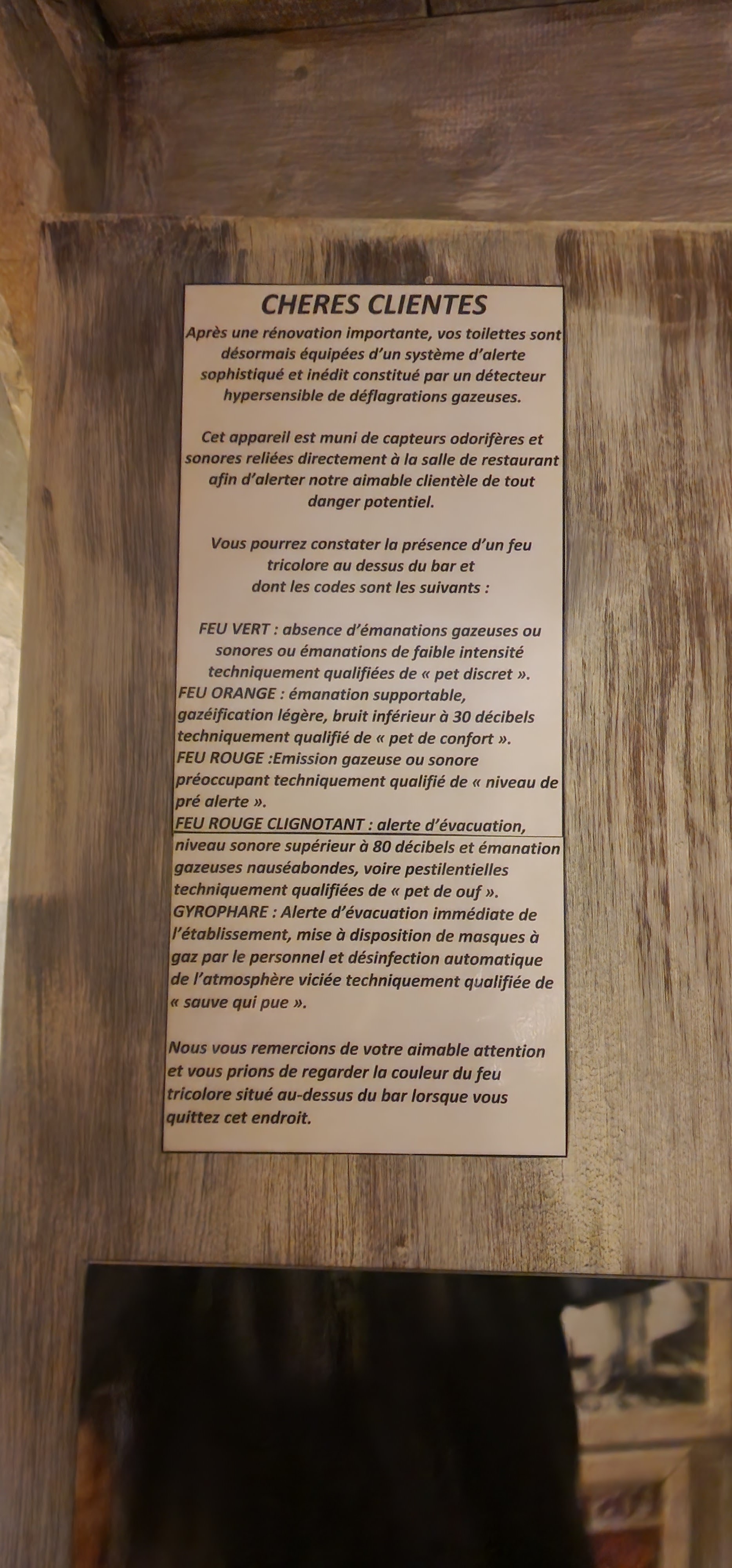Repas excellent, c’était la deuxième fois que j’y revenais, et sûrement pas la dernière, et la petite touche humoristique de cette deco ! Je recommande à 100% vous pouvez y aller les yeux fermés !