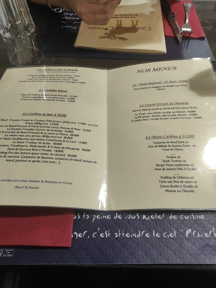 Depuis 3 semaine changement de propriétaire . rien de canadien que 5 plats au choix , très cher pour rien avoir dans l'assiette , aucune carte de vin , accueil très très froid nous mettant très mal à l aise . À ne pas recommandé