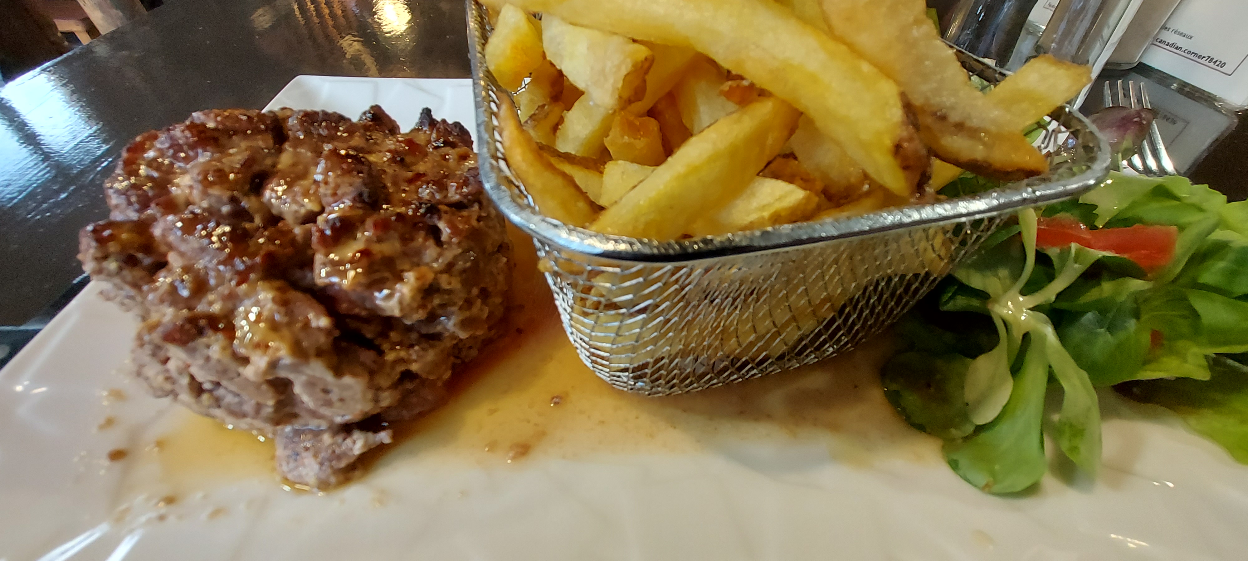 Après.une première visite très satisfaisante j ai êté très déçue par ma seconde experience. Carte composée essentiellement de poisson et de viande cru. Aucun plat typique . La carte avait changé mais pas dans le bon sens. La viande est bonne mais pas .plus que dans un hippopotamus. Servie avec une sauce béarnaise une feuille de salade et des frites moyenne.et surgelées je pense. Bref une réel décalage entre les deux visites qui ont eu lieu à 1 mois d écart.