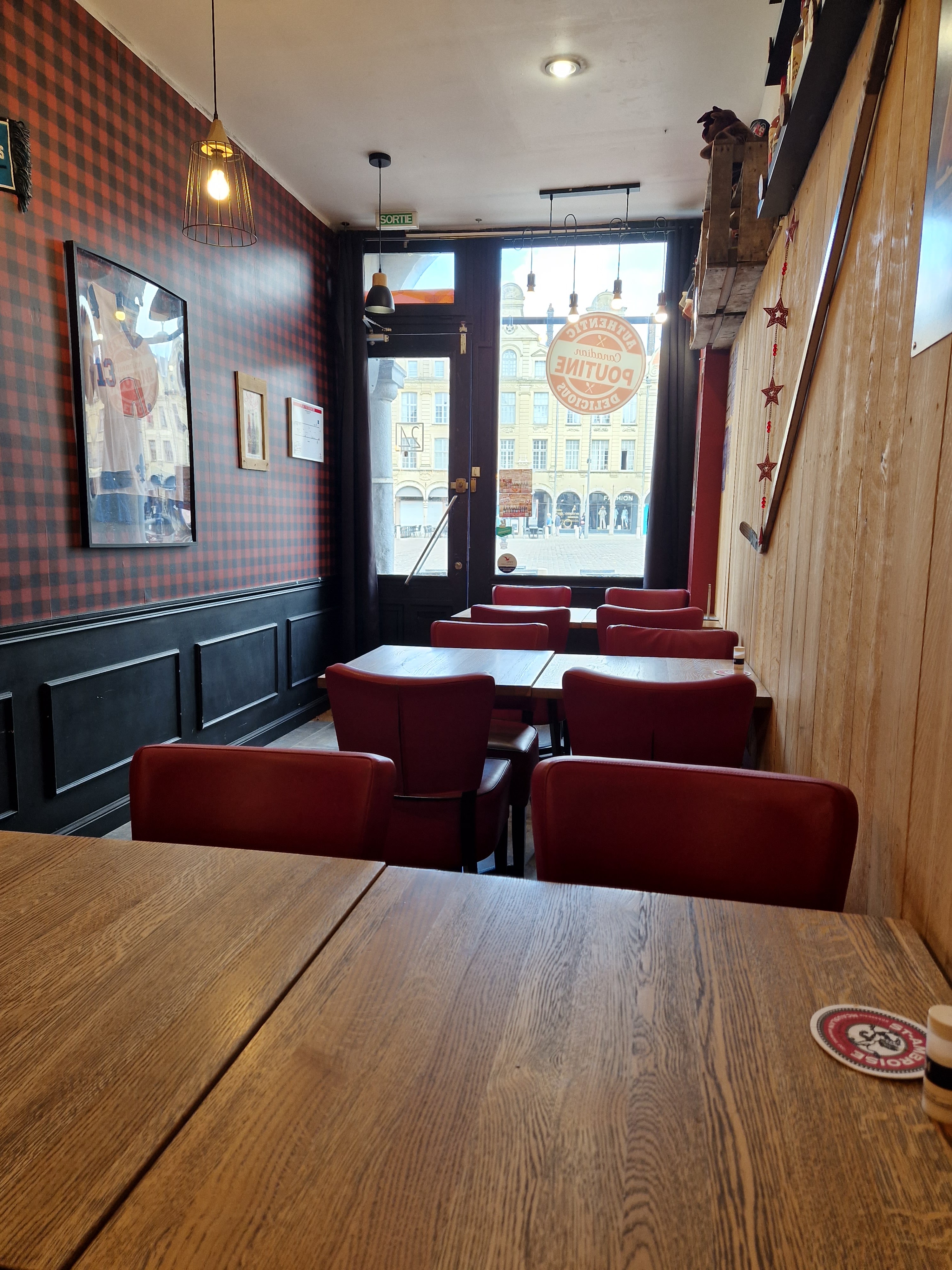 Restaurant sympathique et tout à fait dans le thème du Canada la poutine est délicieuse et bien servie le choix de bière est conséquent et sont également canadienne l équipe est sympathique et l accueil est très cordial au même titre que le ambiance des lieux
