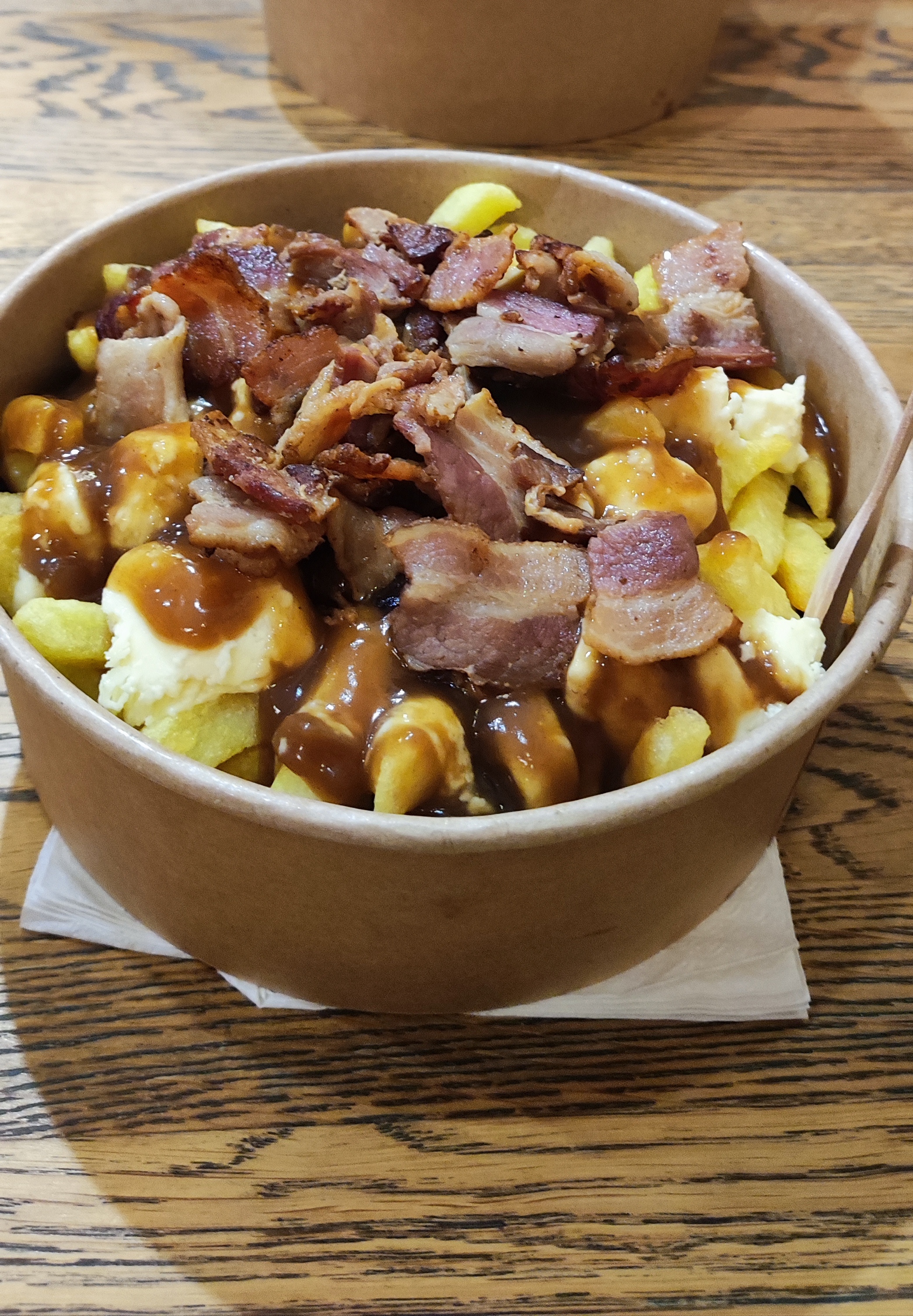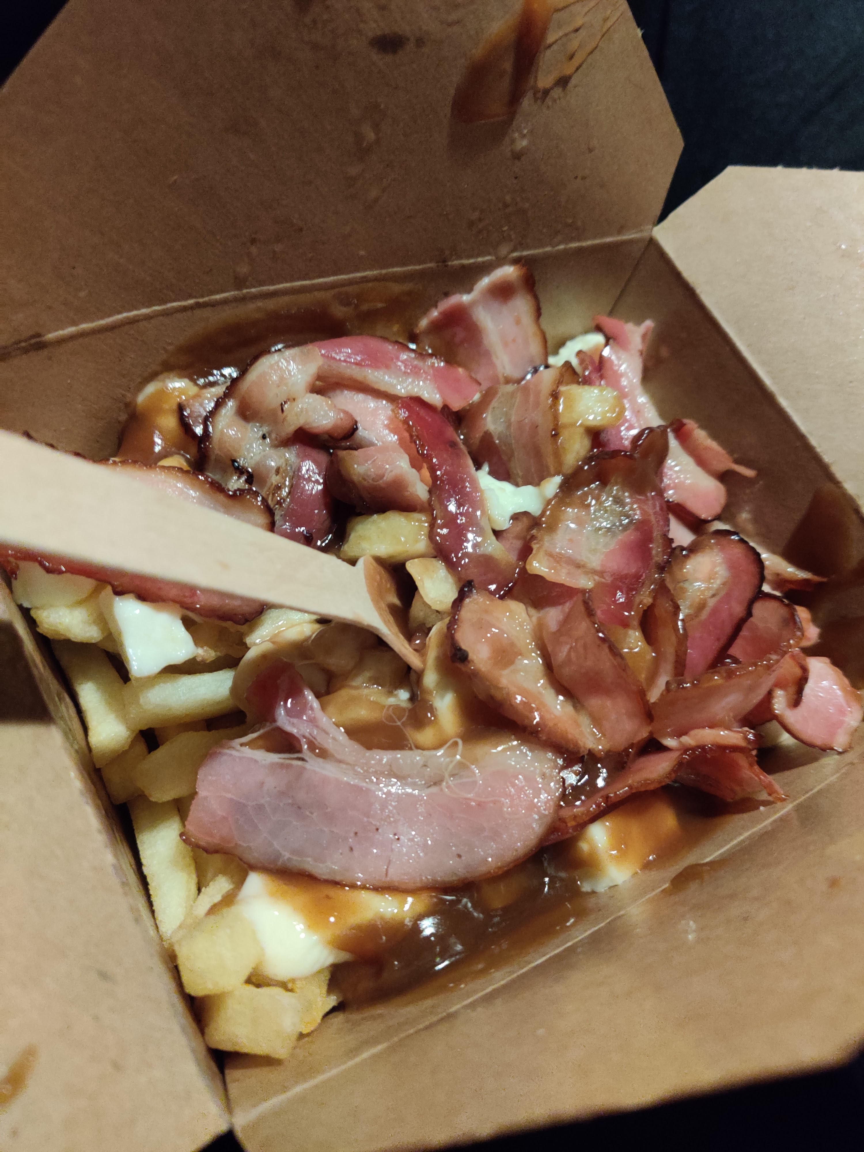 Une première...et nous reviendrons ..une très bonne poutine au bacon... A venir déguster sur place