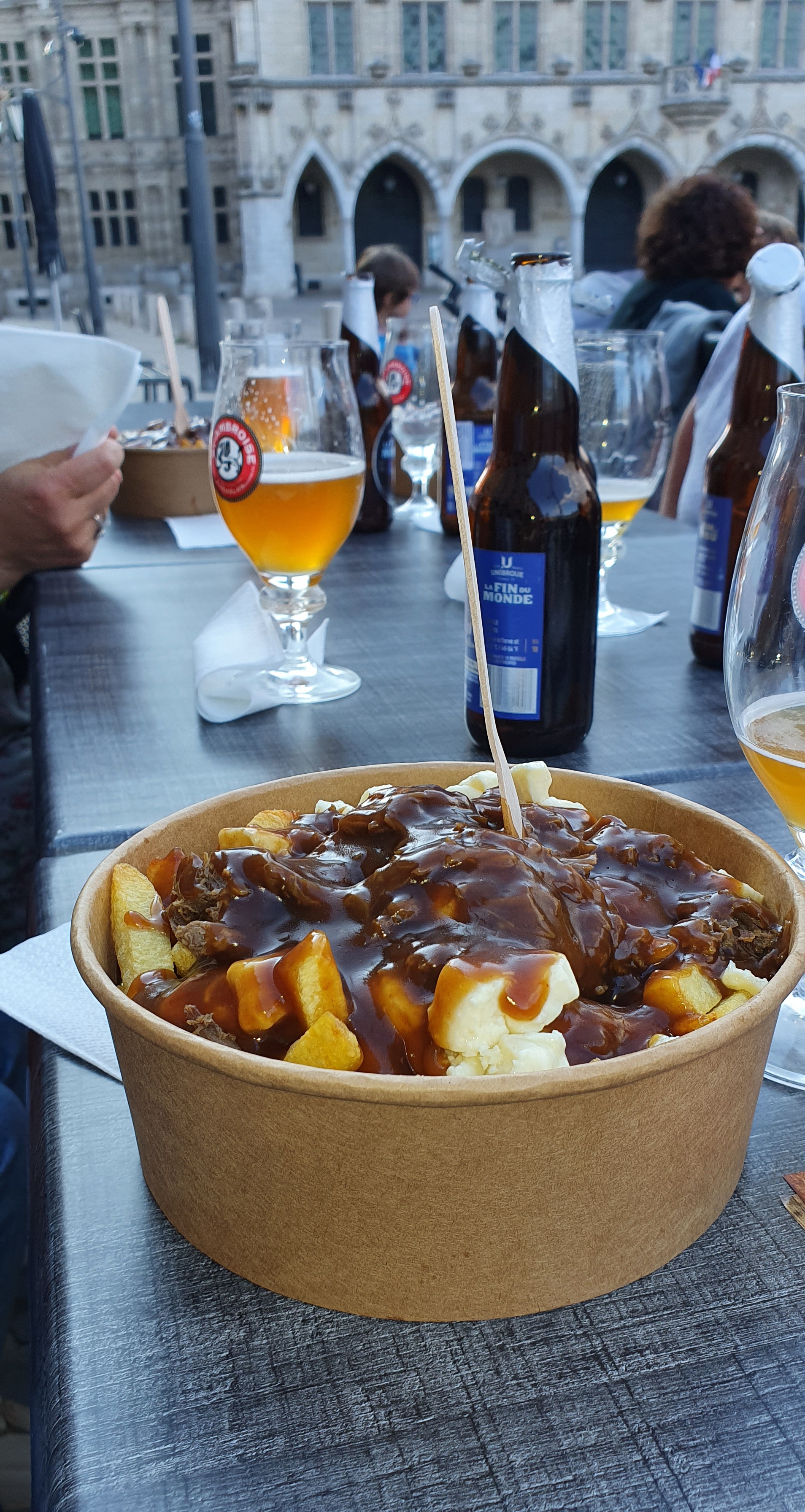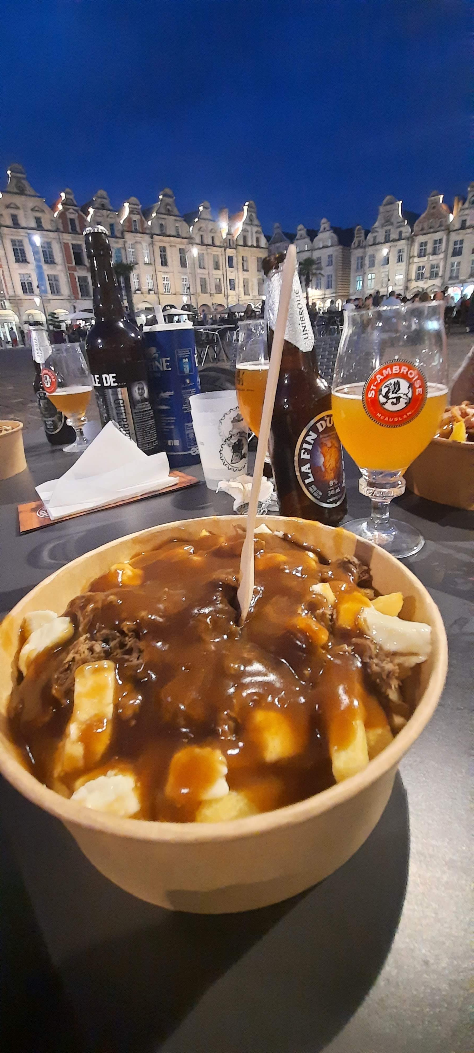 La Poutine est vraiment bonne, elle goûte comme celle du Québec. Frites fraiches et fromage très bon. Les proprios sont super sympa. Il y a des tables et des chaises pour s'installer dehors c'est top avec une vue dans le centre ville dArras.