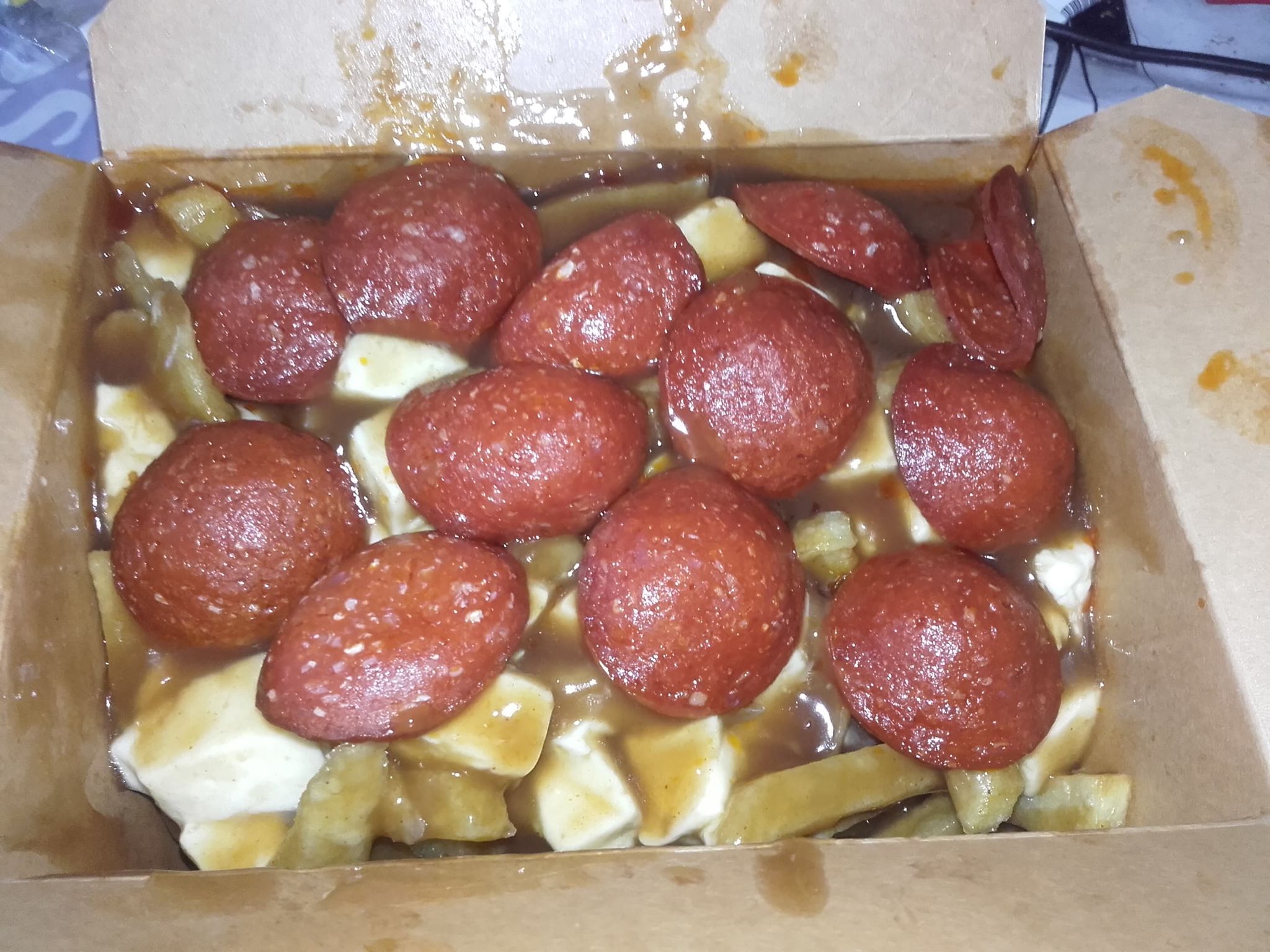 Déçu, malgré les notes affichés et selon mon avis ! j’ai reçu une poutine peut être trop salée a mon gout, fromage parfait mais les frites sont absolument a revoir, un gout de frites décongelées puis cuites a la friteuse. Donc une mauvaise cuisson de frites ou qualitée de frites ? Ayant déjà testé il y a fort longtemps mon avis personnel etait similaire :/