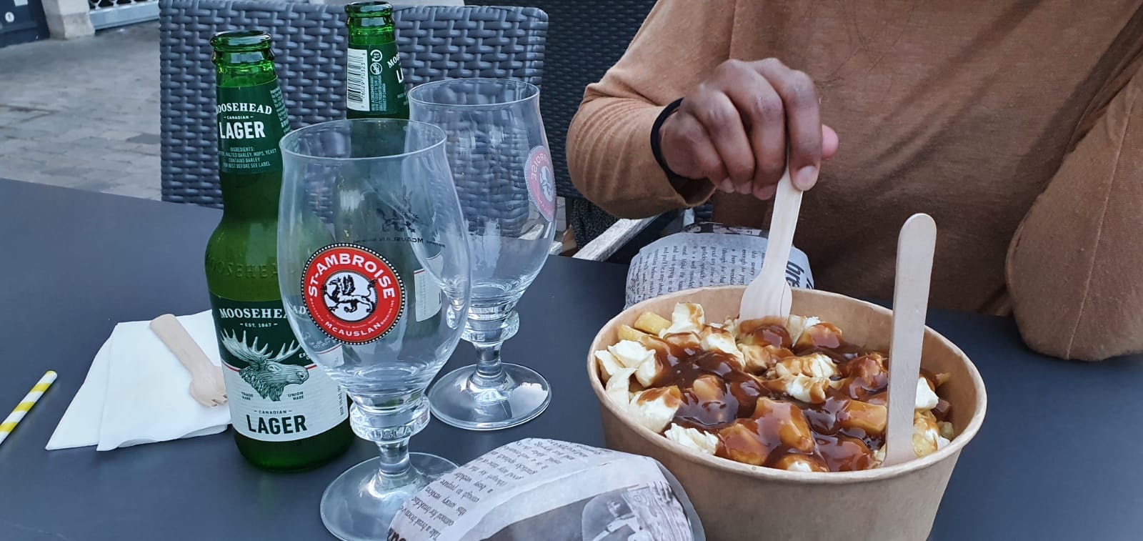 Poutine vraiment copieuse bières canadienne très bonnes