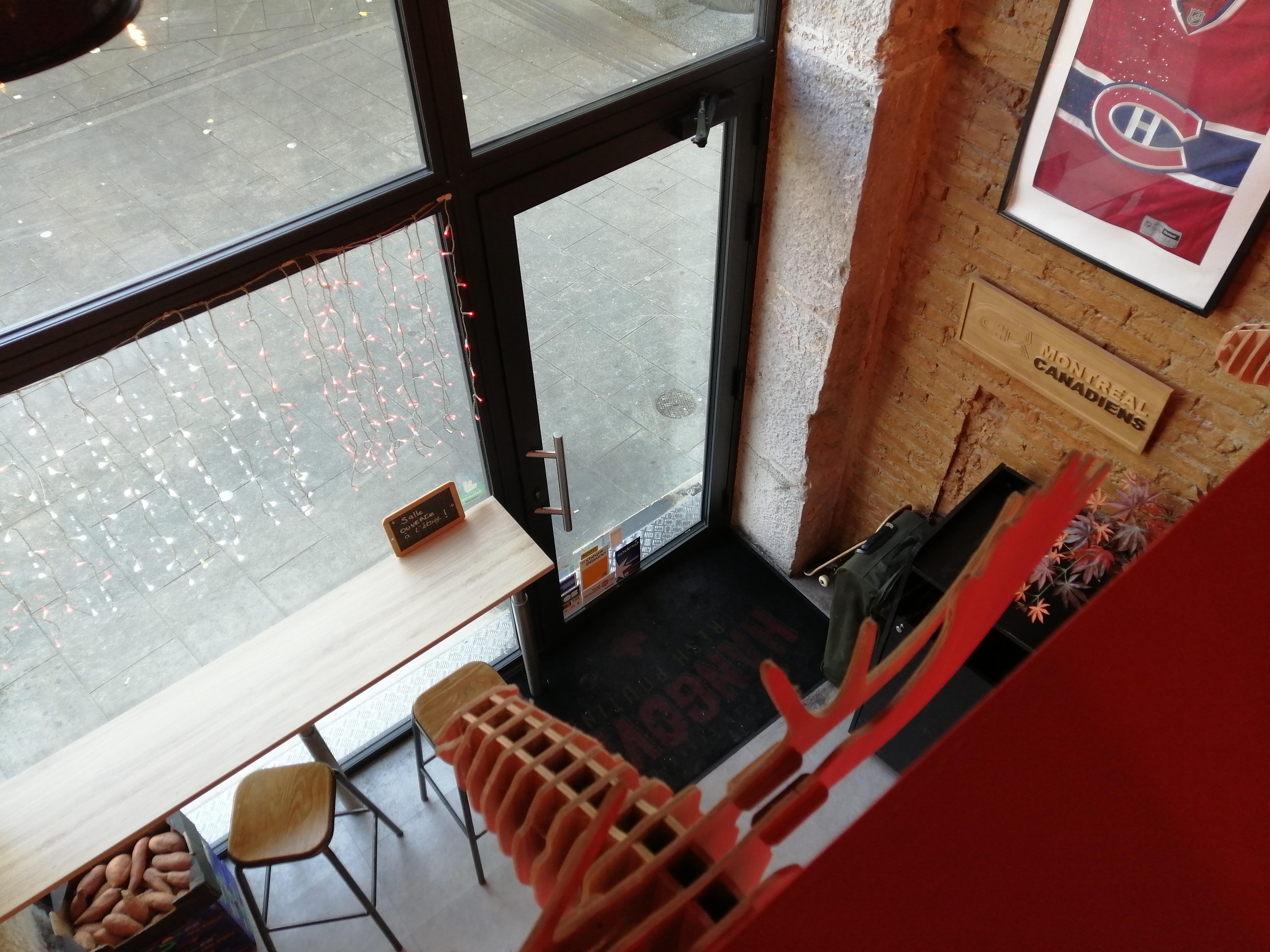 Possibilité de manger sur place à l'étage même si la salle est toute petite. Ça ne nous a pas empêché d'apprécier nos poutines !