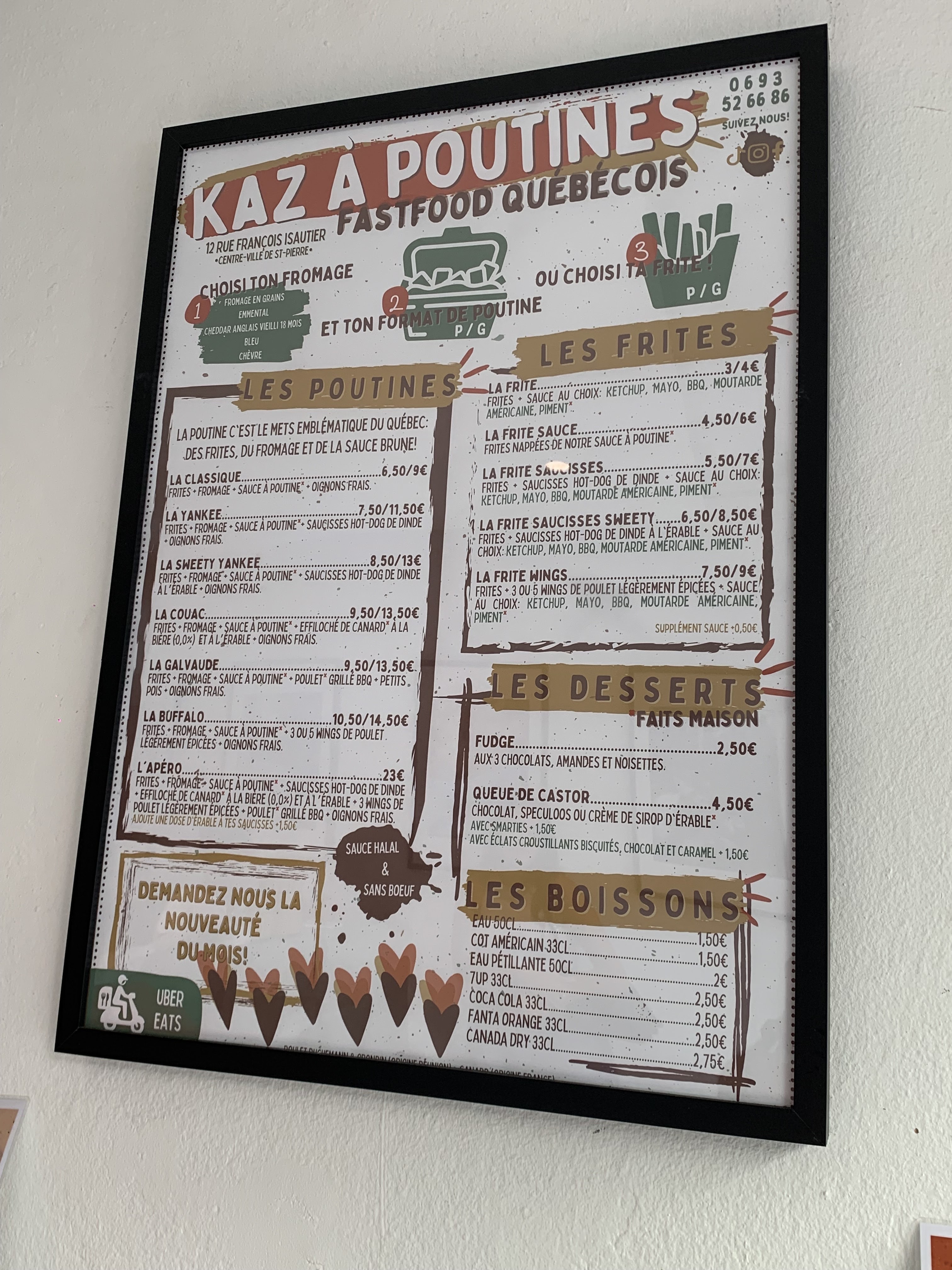 Voici mon avis sur Kaz à Poutines, un restaurant situé à Saint-Pierre, qui m’a vraiment plu par son ambiance et sa cuisine. En tant que restaurant québécois, il offre une expérience culinaire unique avec des plats emblématiques de cette région, notamment des poutines préparées avec des frites maison, divers fromages au choix et une sauce à poutine maison. J'ai particulièrement apprécié la variété des options, incluant des viandes comme l’effiloché de canard à l’érable et des saucisses de poulet. Chaque mois, ils proposent une nouveauté qui mélange les influences québécoises et réunionnaises, ce qui apporte une touche originale à leur menu. Les desserts maison méritent également d'être mentionnés. J'ai goûté à la queue de castor, une délicieuse création qui combine le meilleur de la gaufre et du beignet, ainsi qu'au fudge aux trois chocolats, un vrai régal pour les amateurs de douceurs. Le cadre du restaurant est agréable, avec une atmosphère conviviale et une décoration qui reflète bien le thème québécois. Les horaires d'ouverture sont pratiques, étant ouverts du mardi au samedi, ce qui facilite la planification d'un repas sur place. Le personnel est accueillant, ajoutant à l'expérience globale. En somme, Kaz à Poutines est une excellente adresse à découvrir, surtout si vous aimez la poutine et souhaitez goûter à des plats qui fusionnent les cultures québécoise et réunionnaise. J'y retournerai certainement pour explorer plus de choix au menu et savourer à nouveau ces délicieuses créations. Pour plus d'informations, n'hésitez pas à visiter leur page sur les offices de tourisme du Sud de l'île de La Réunion.
