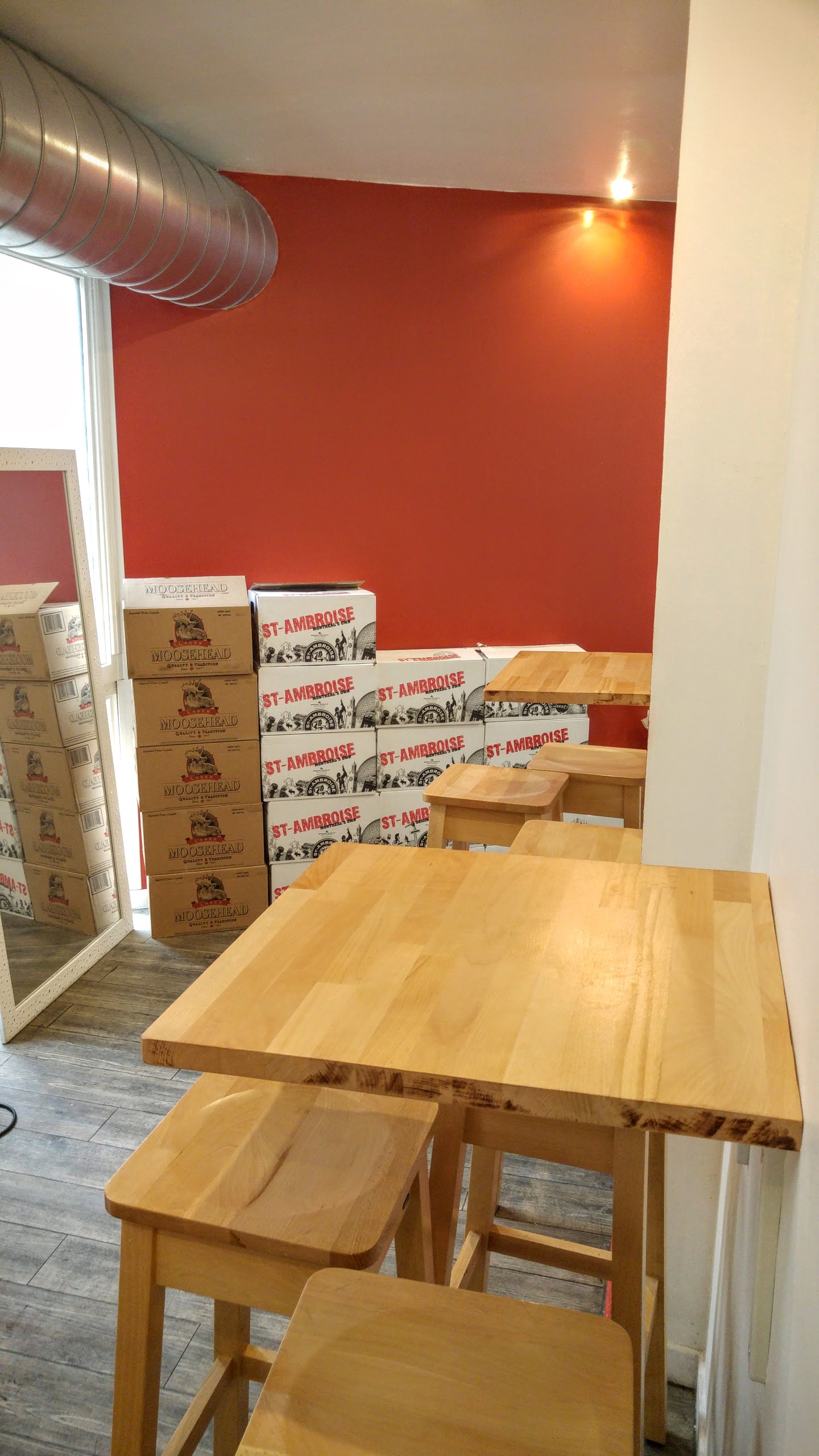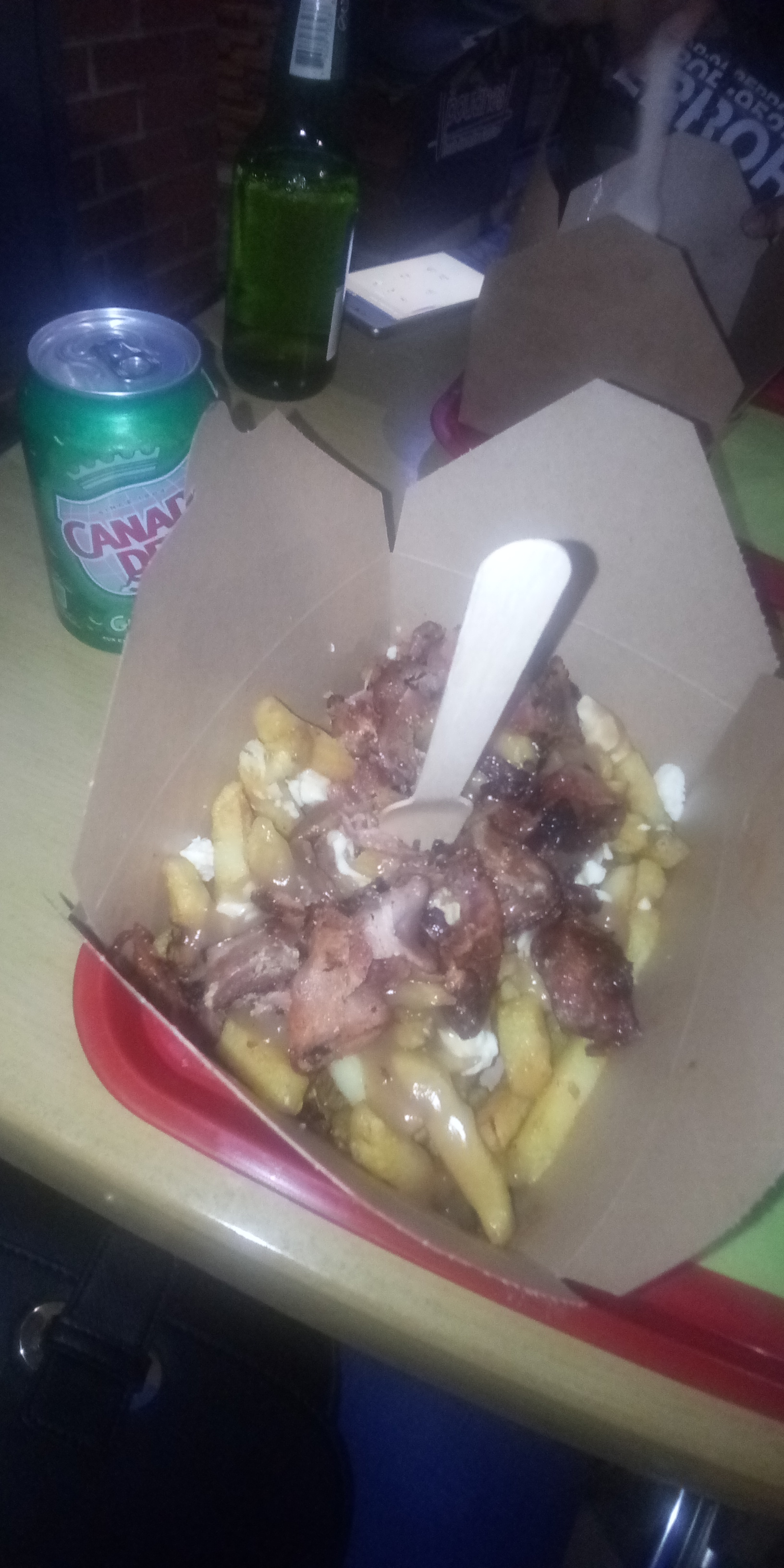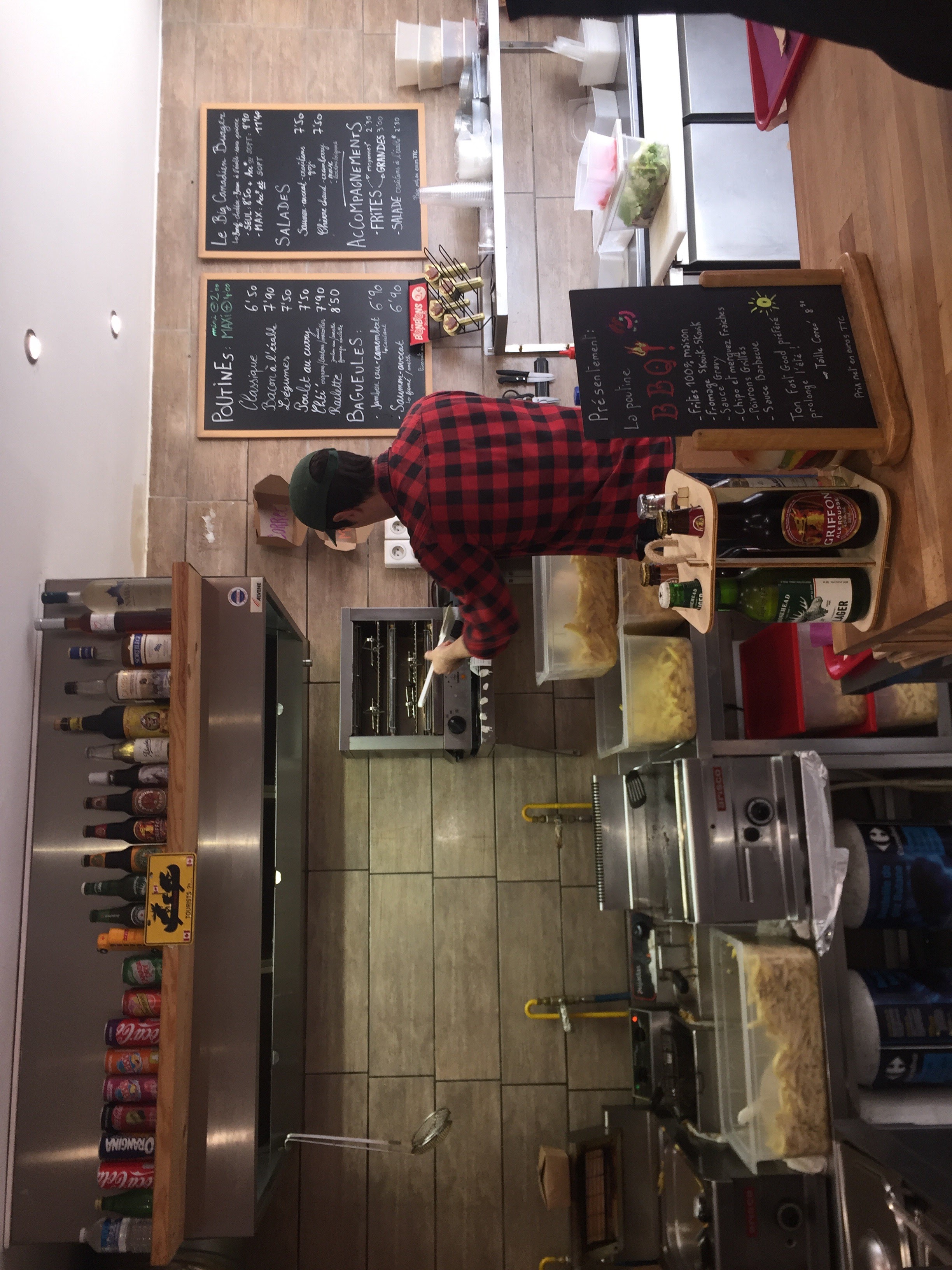 Bonne expérience poutine. Bières canadiennes en vente. Je vous conseille la St Ambroise à l'abricot ! Le service pourrait être amélioré cependant. Les sanitaires sont à revoir afin d'offrir aux clients une porte qui ferme correctement, un robinet utilisable et du savon sans eau...
