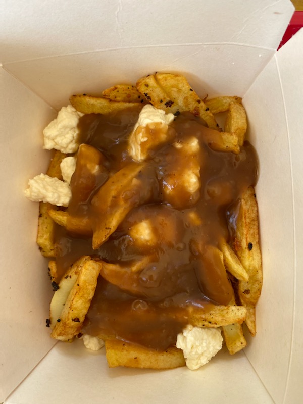 Rien à voir avec une poutine. Des frites surgelées très sèches, une sauce brune qui n'en a ni le goût ni l'odeur, un fromage loin du squish squish. Au final une plâtrée sans le moindre intérêt. Un steak haché et une carotte ne donnent pas un bourguignon de boeuf, c'est une ignominie d'appeler ça une poutine ! Les Québécois s'insurgeraient, avec raison.