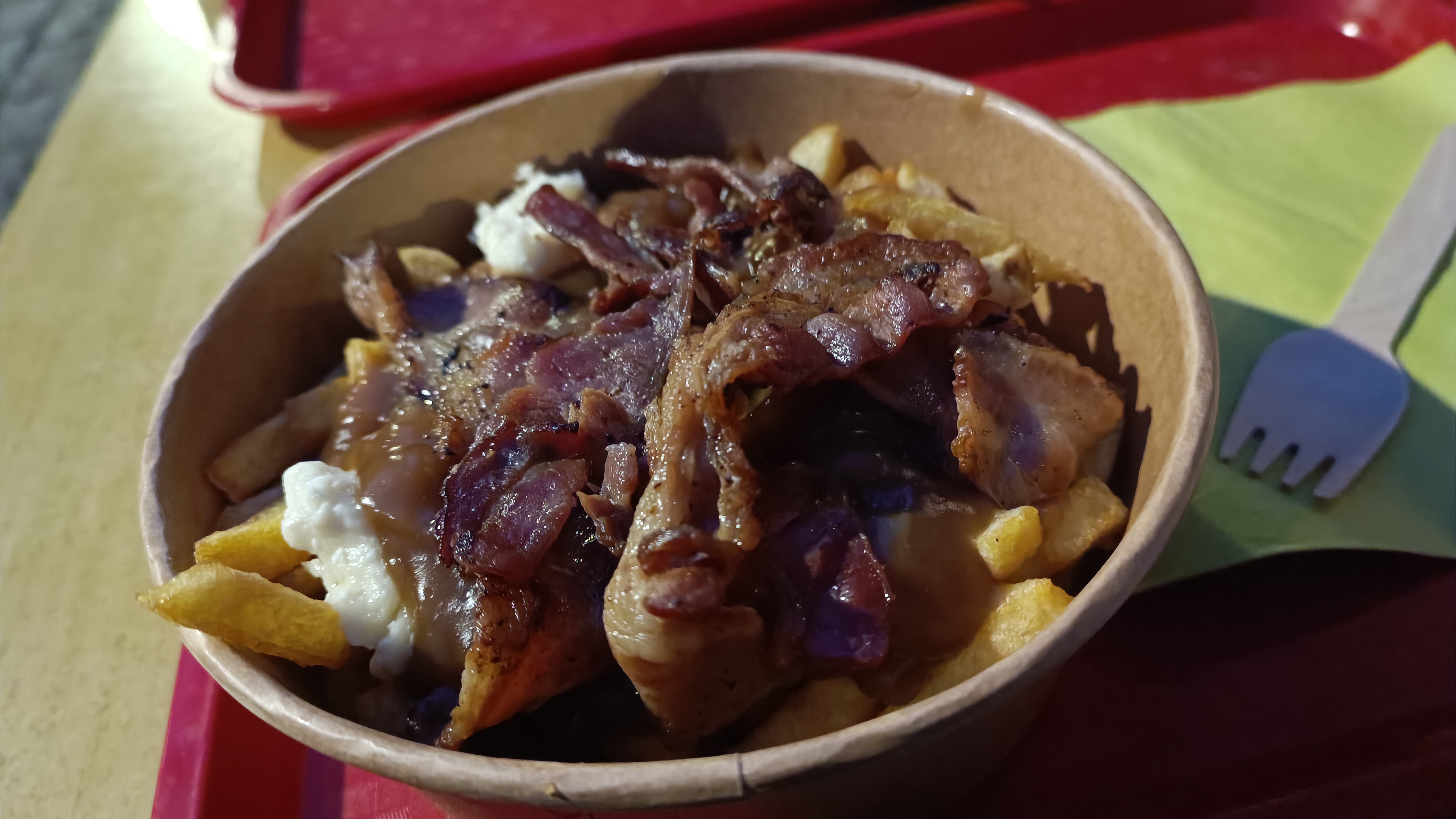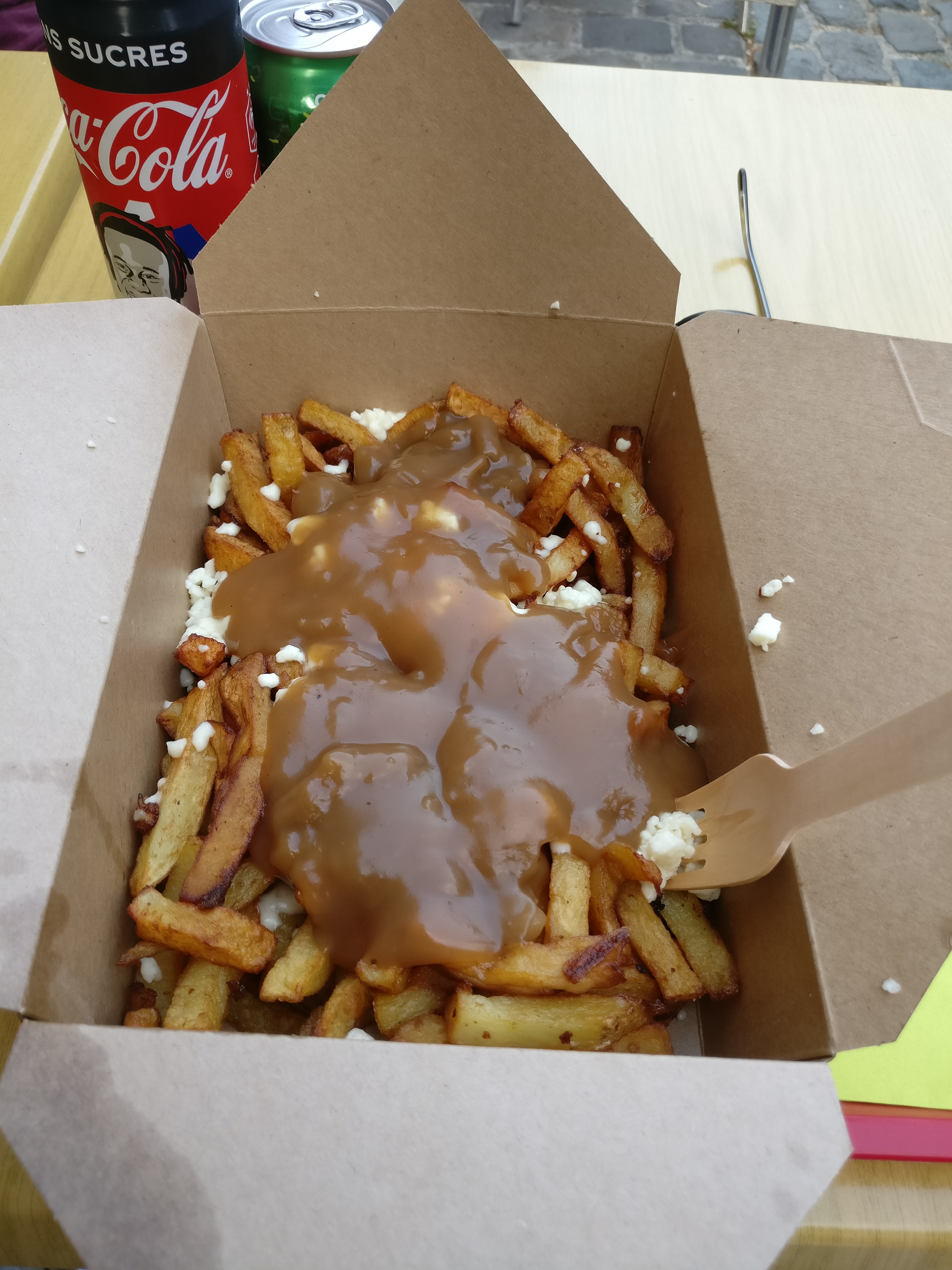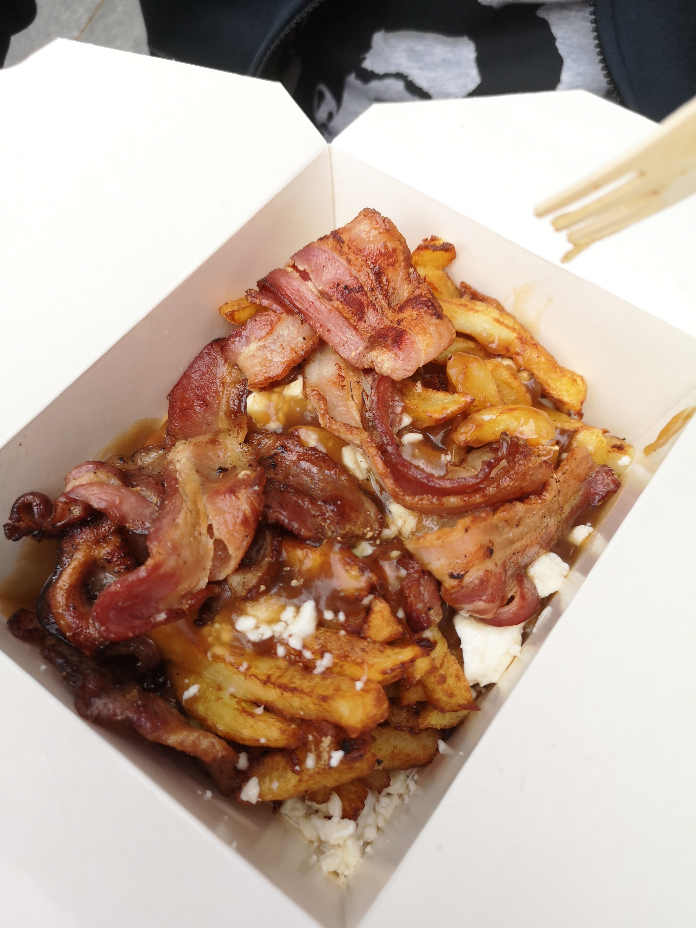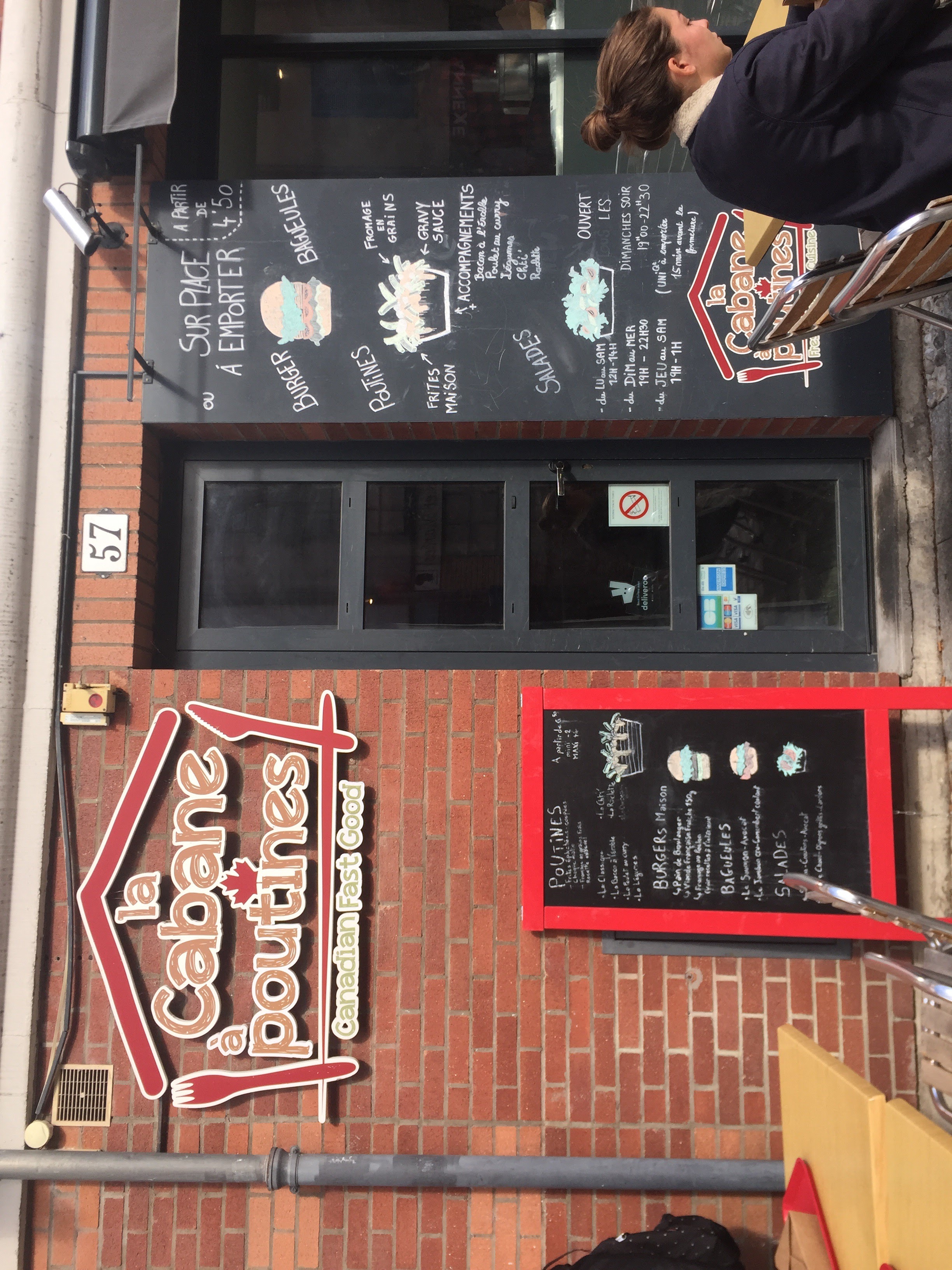 Spécialités canadiennes très bonnes mais un peu caloriques: frites maison, fromage, sauce canadienne + un ingrédient au choix (ici bacon au sirop d'érable). Seul vrai bémol: le lieu est petit donc peu de tables pour s'y restaurer