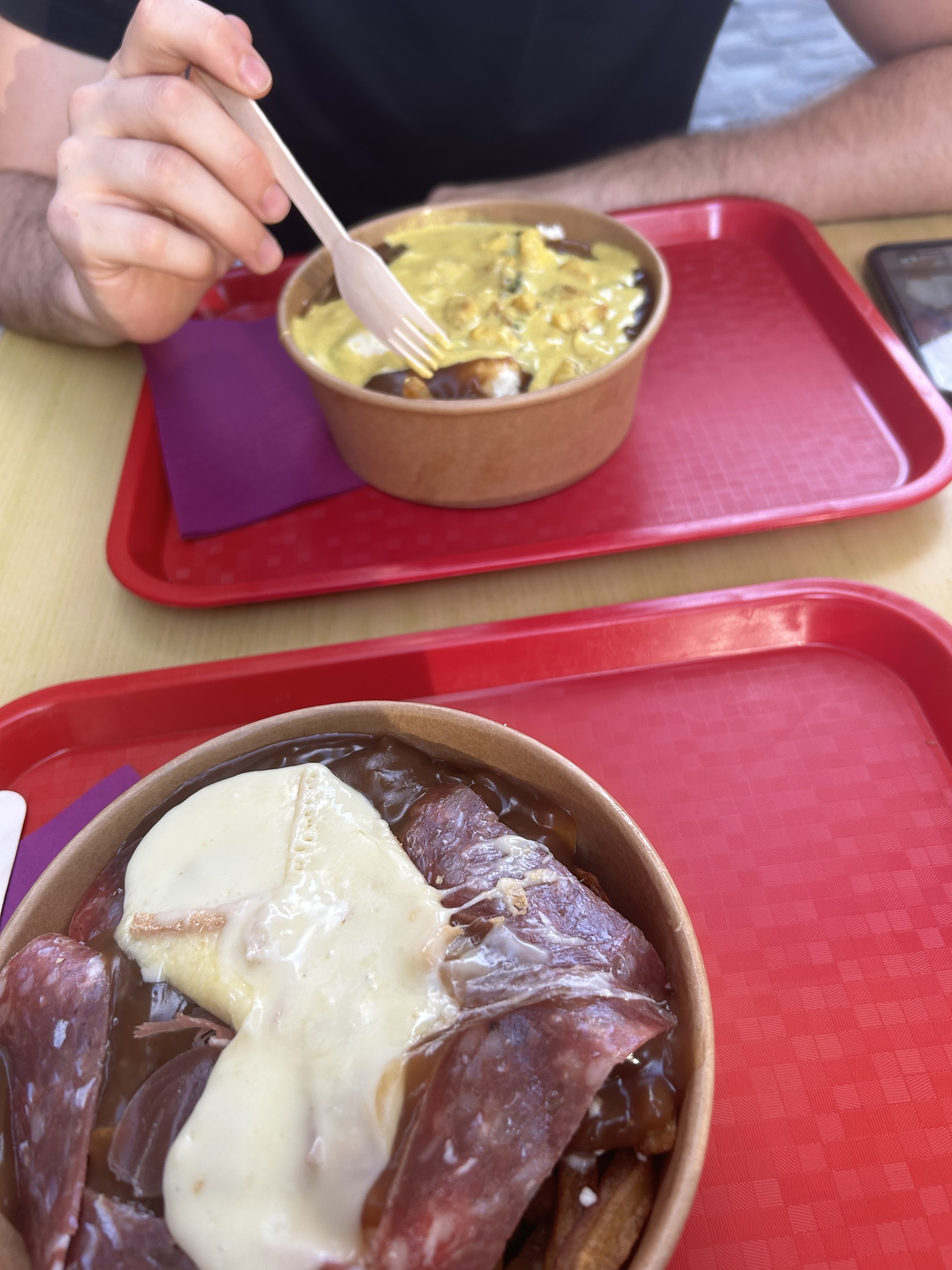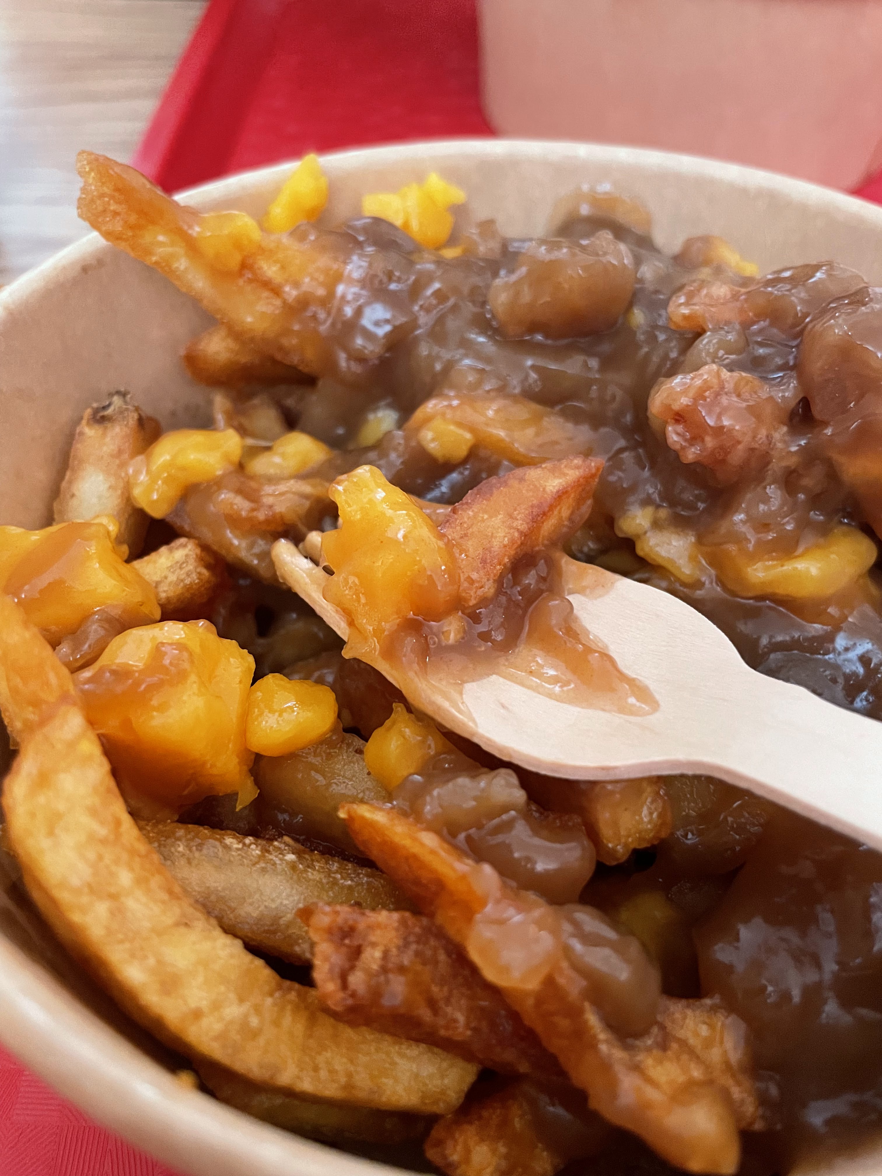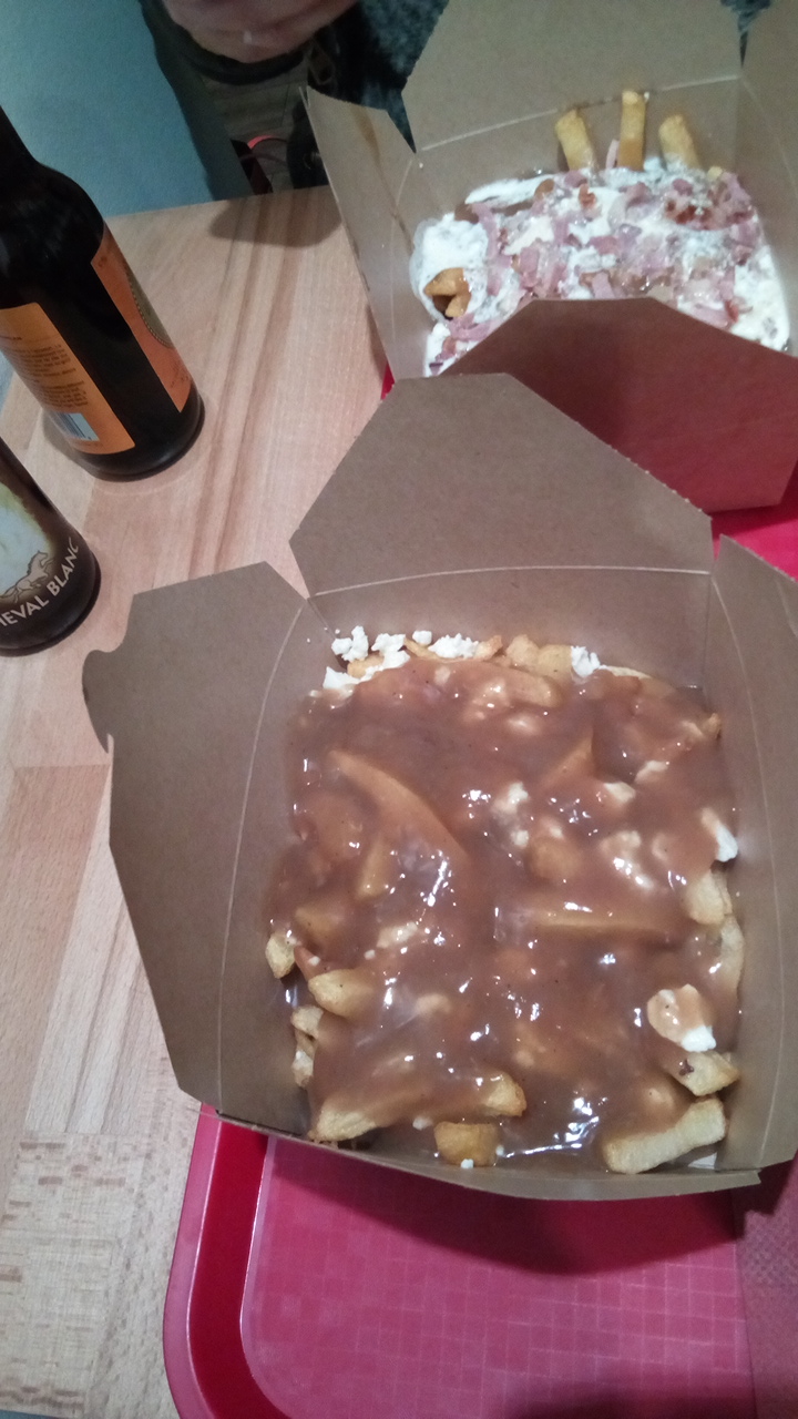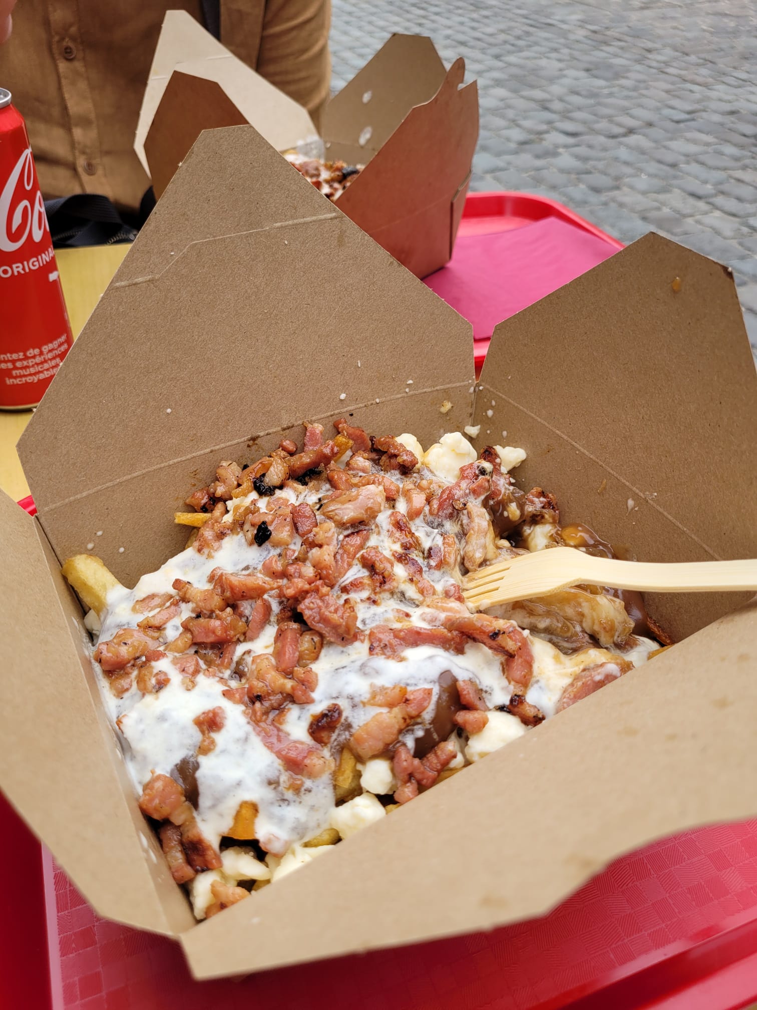 Spécialités canadiennes très bonnes mais un peu caloriques: frites maison, fromage, sauce canadienne + un ingrédient au choix (ici bacon au sirop d'érable). Seul vrai bémol: le lieu est petit donc peu de tables pour s'y restaurer