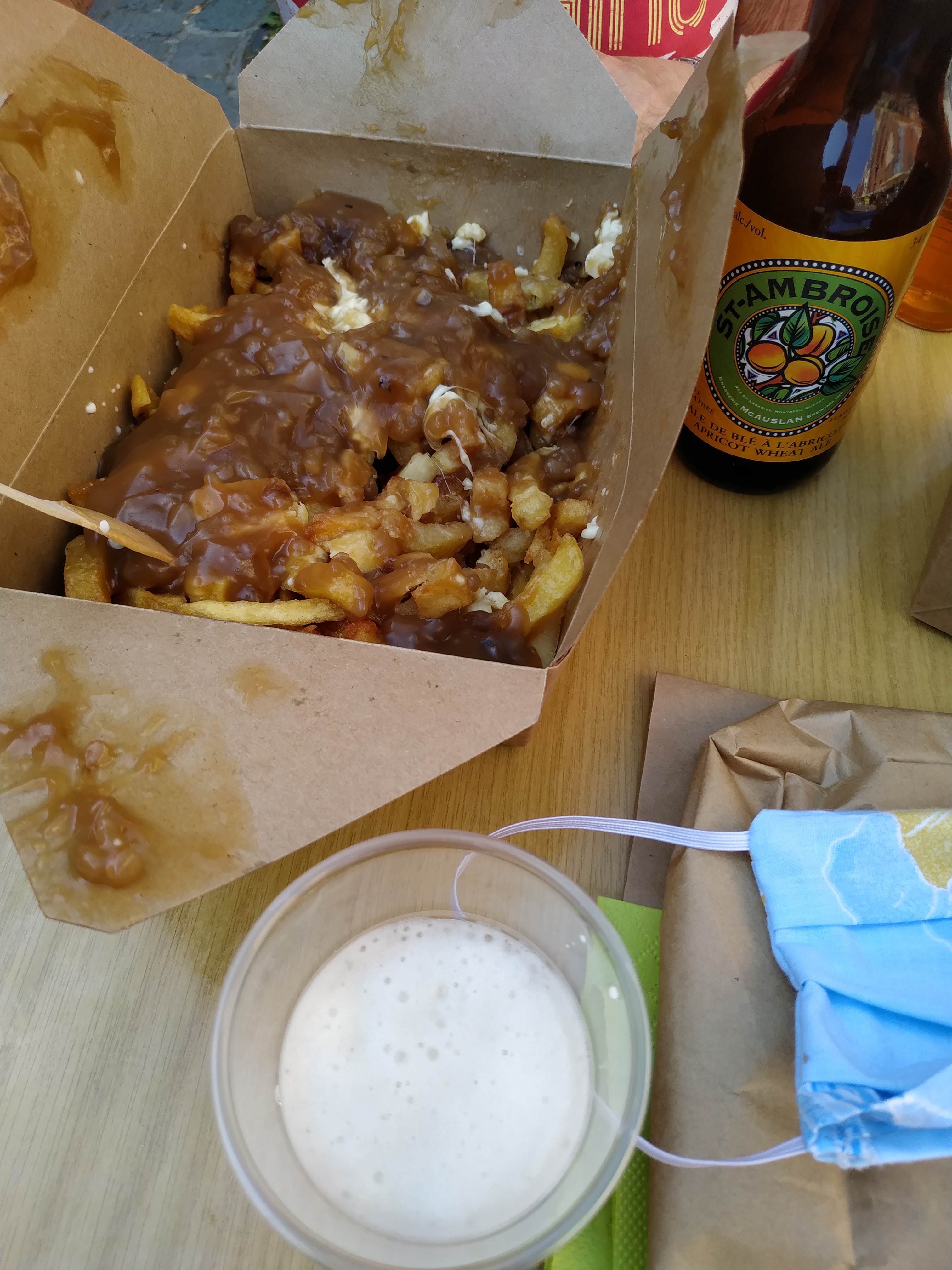 Petit repas sympathique du midi, j'ai essayé la poutine bacon. Ensemble bon et bière made in quebec. Satisfait du plat même si je trouve que c'est un peu cher pour le contenu. A faire quand même 😉