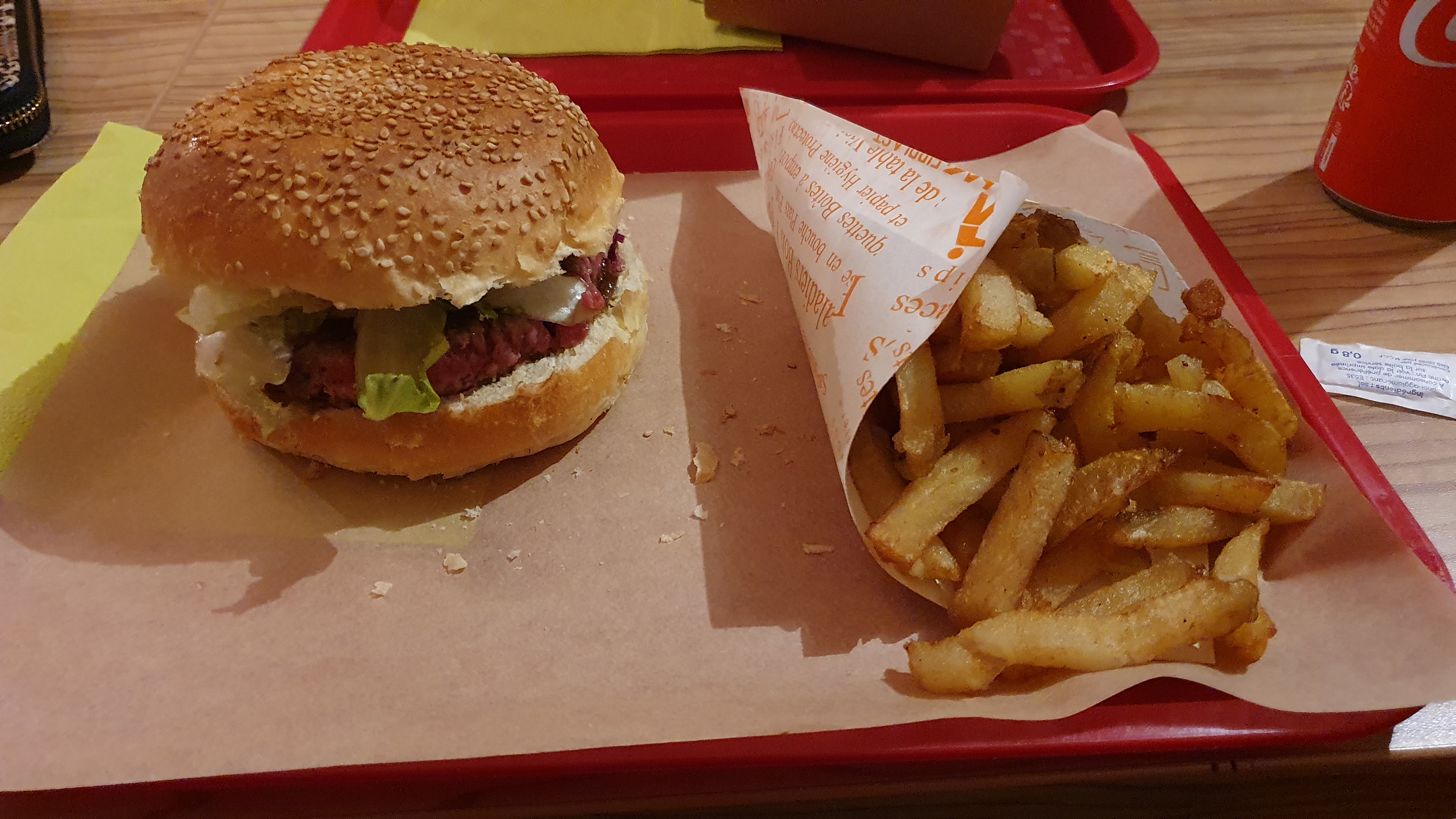 Comme une impression que les frites date de quelque jours. C’est clairement compliqué à manger à ce point là… je ne recommanderai plus