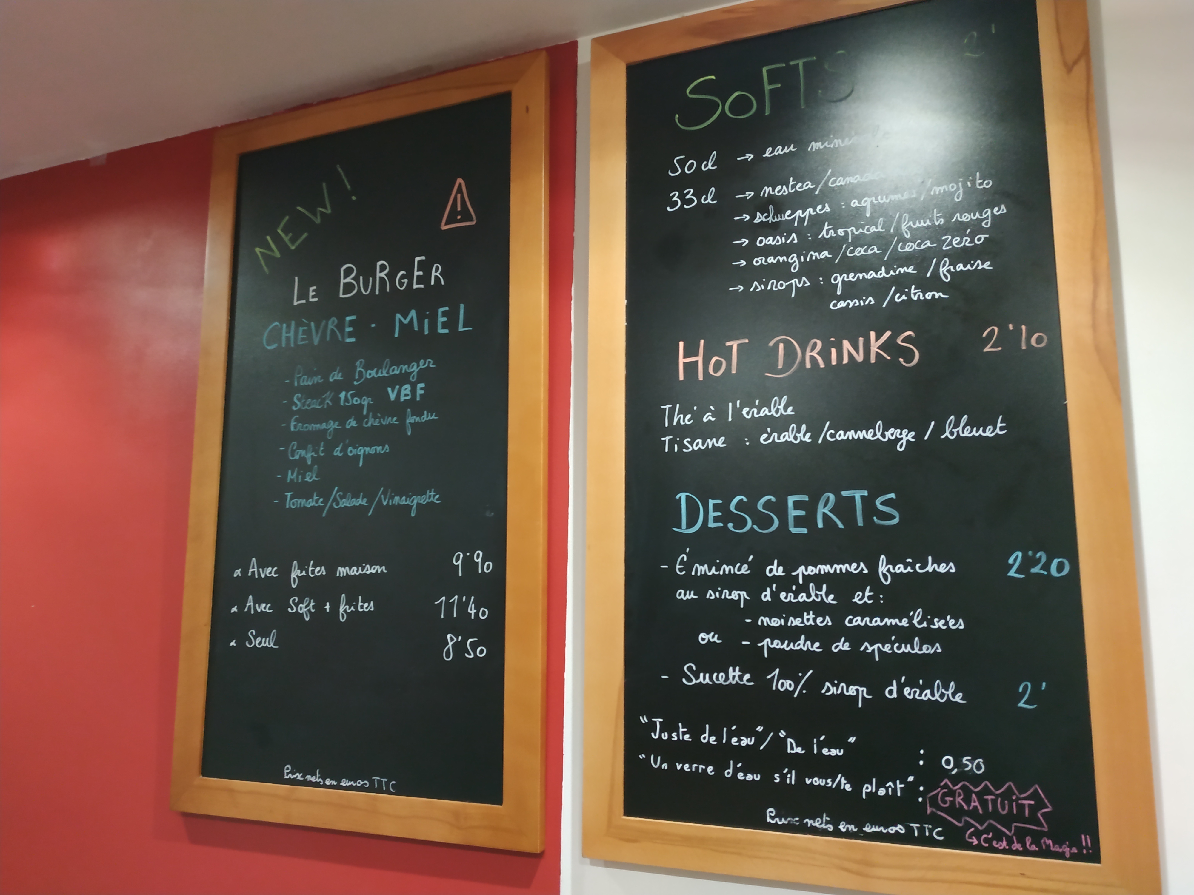 Concept original. C est bon, les frites sont excellentes, c'est tout de même un peu cher mais on mange bien donc je le conseille pour un repas rapide sur le pouce. Le package est bien pensé pour la vente à emporter.