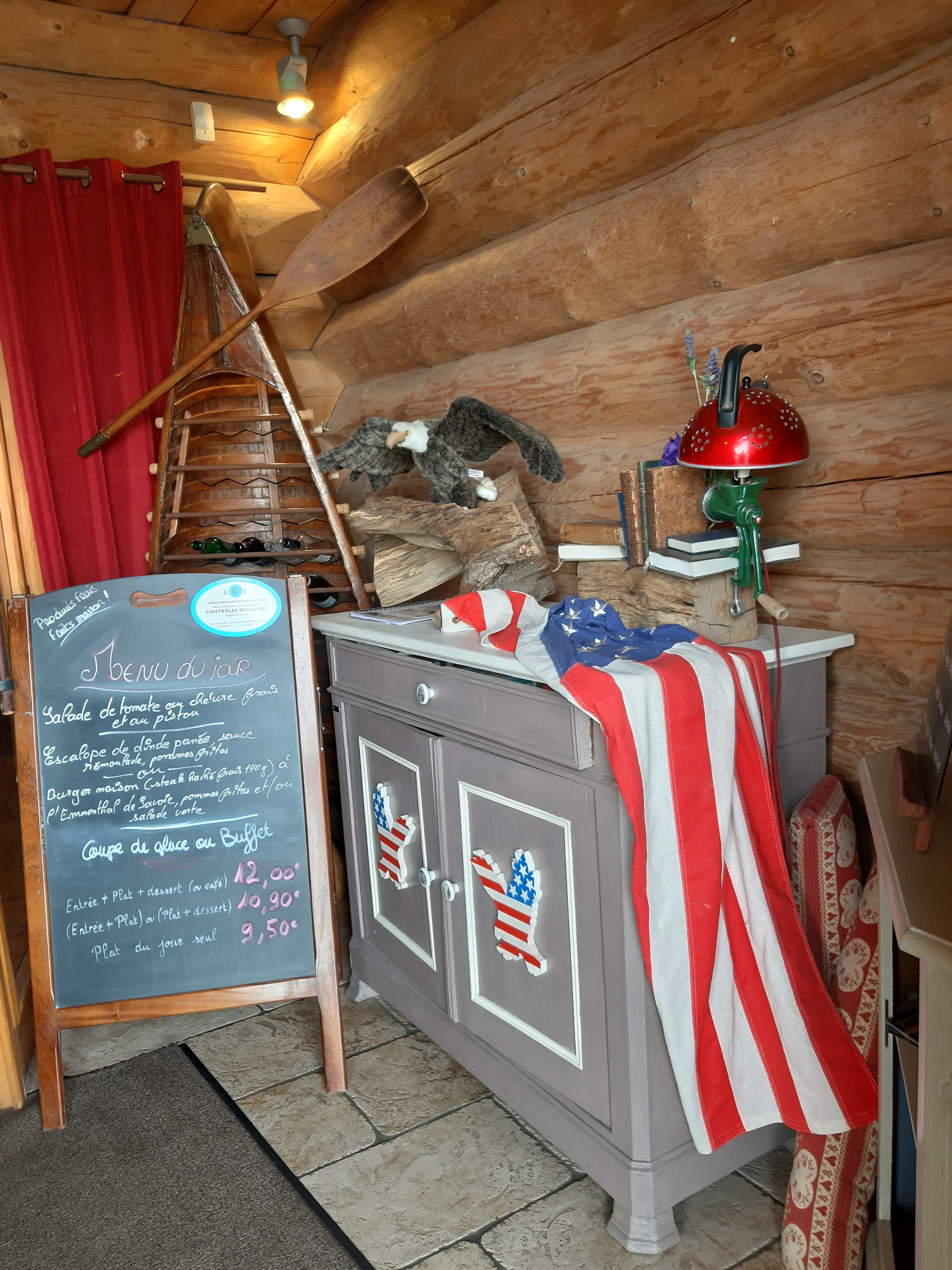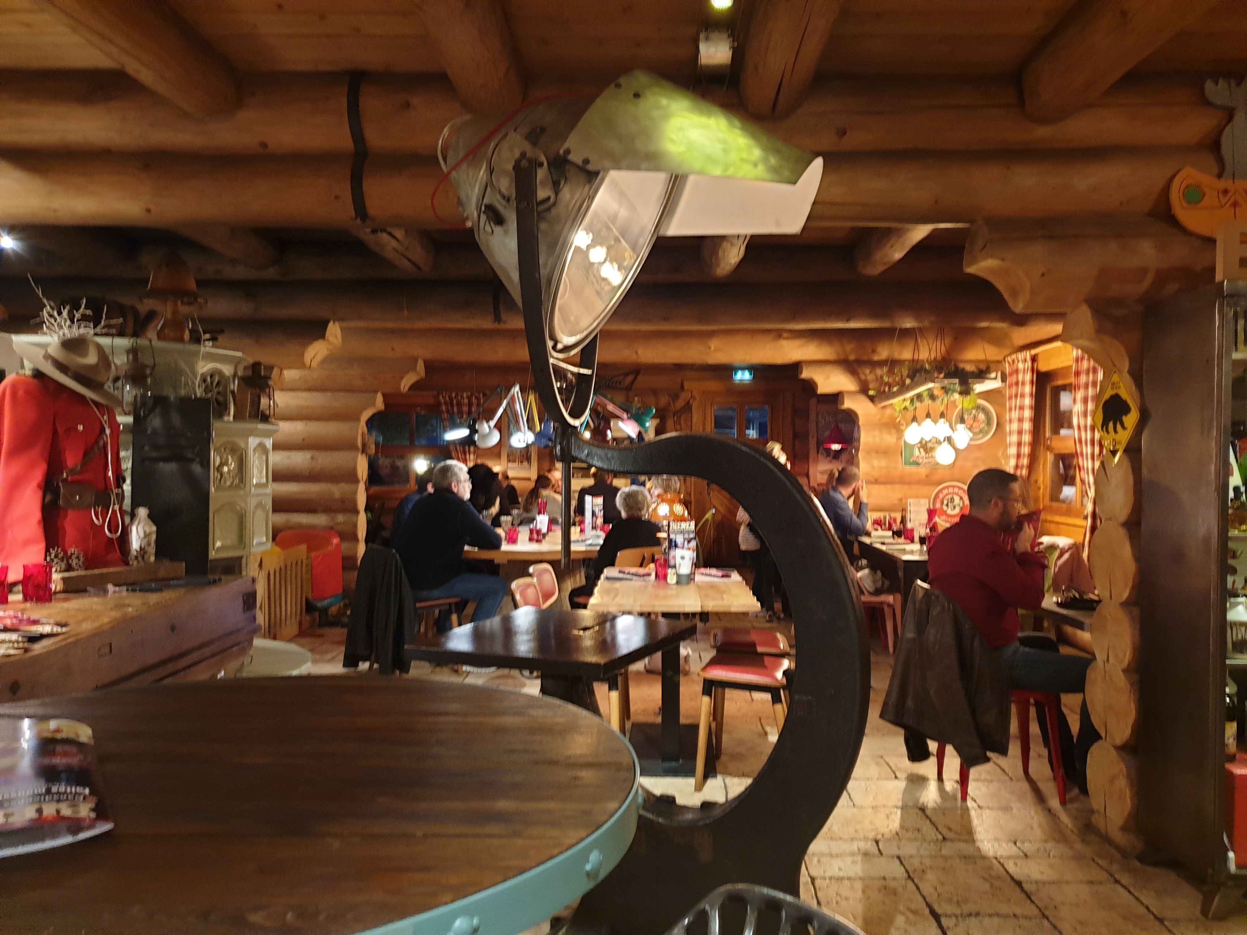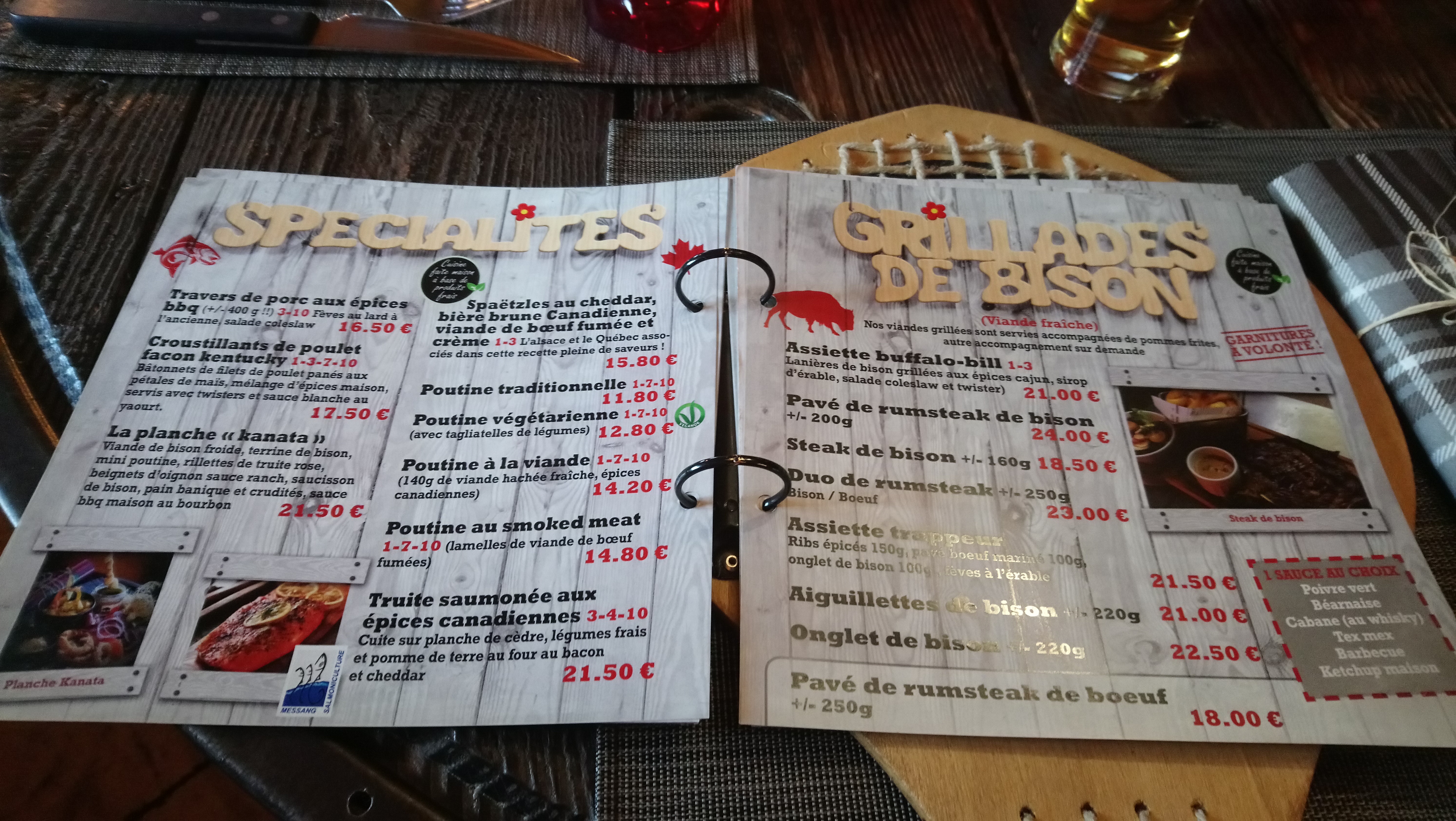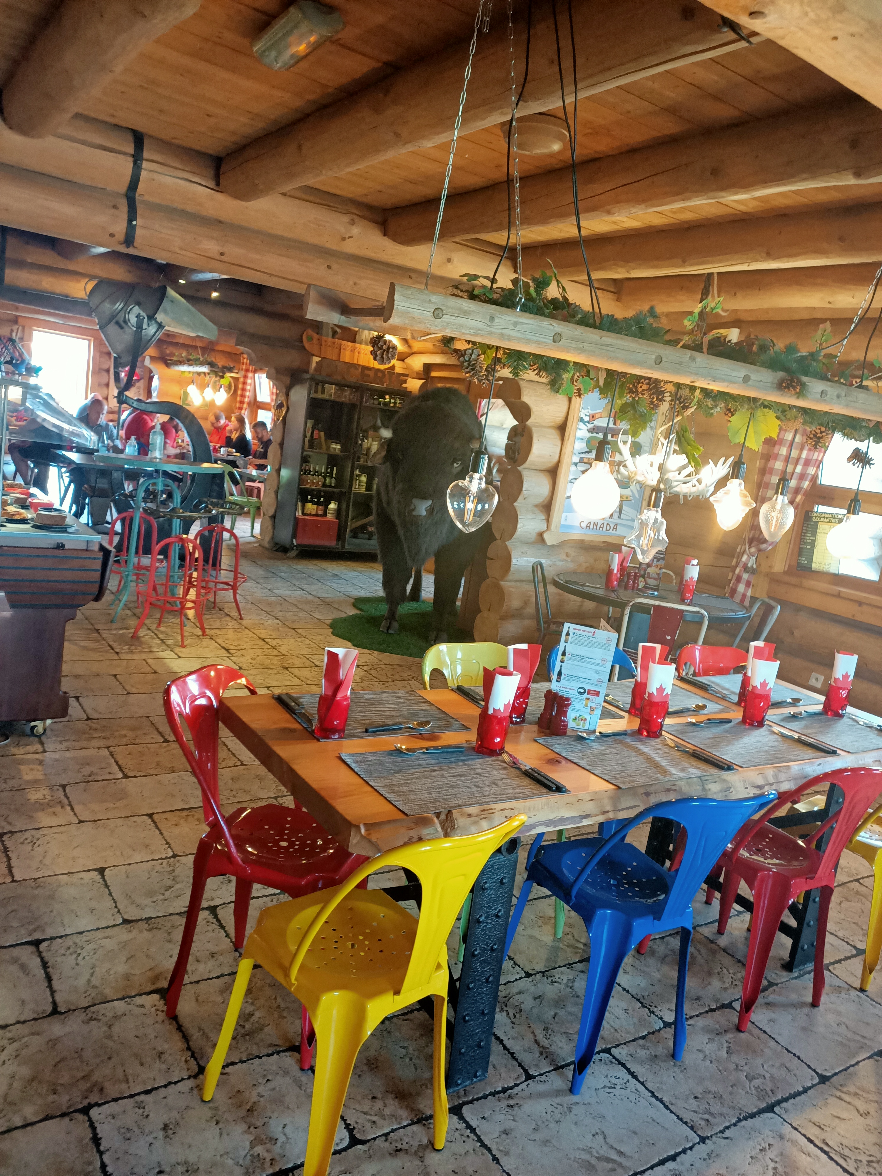 Adresse qui attire l'œil par la beauté du bâtiment, une fois à l'intérieur on est tout de suite dépaysé, belle décoration, ambiance chaleureuse et entre les costumes et décoration canadienne on retrouve tout un tas de gigantesque réplique d'animaux en peluche (mais le bison a l'entrée est sûrement un vrai) La carte est sur tablette, le menu est donc visuel, on peut avoir les détails des plats, quelques photos, c'est une première pour ma part et c'est le bonheur pour les personnes qui ont toujours peur d'avoir choisi le mauvais plat Le repas était tout bonnement délicieux, le travers de porc au sirop d'érable, un régal, la pièce était immense (500gr et très peu d'os) et le prix est tout petit ! On s'en sort pour 25€ grand max, avec un bel apéro, et si on va sur le menu, les dessert sont a volonté ! Sans aucun doute ma nouvelle adresse favorite sur Sarrebourg