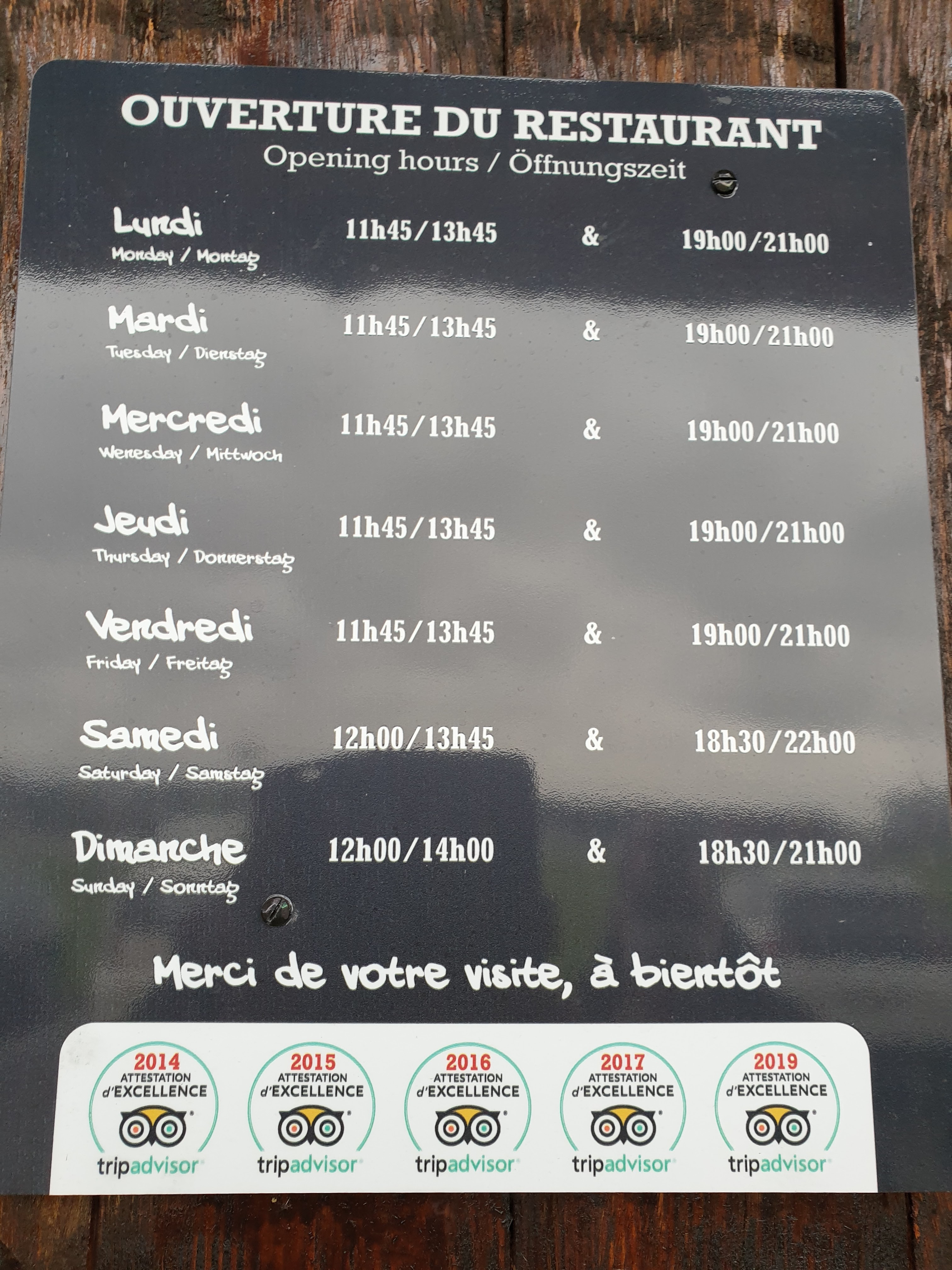 Restaurant plein. Un conseil : réservez. Repas ok. Service rapide pour servir les repas. Déçue de l infusion servie dans une petite tasse et même pas remplie d eau. Sinon les amis avec qui j étais ont apprécié leurs plats et desserts. Une suggestion: mettre un endroit protégé de la pluie à l extérieur pour les fumeurs