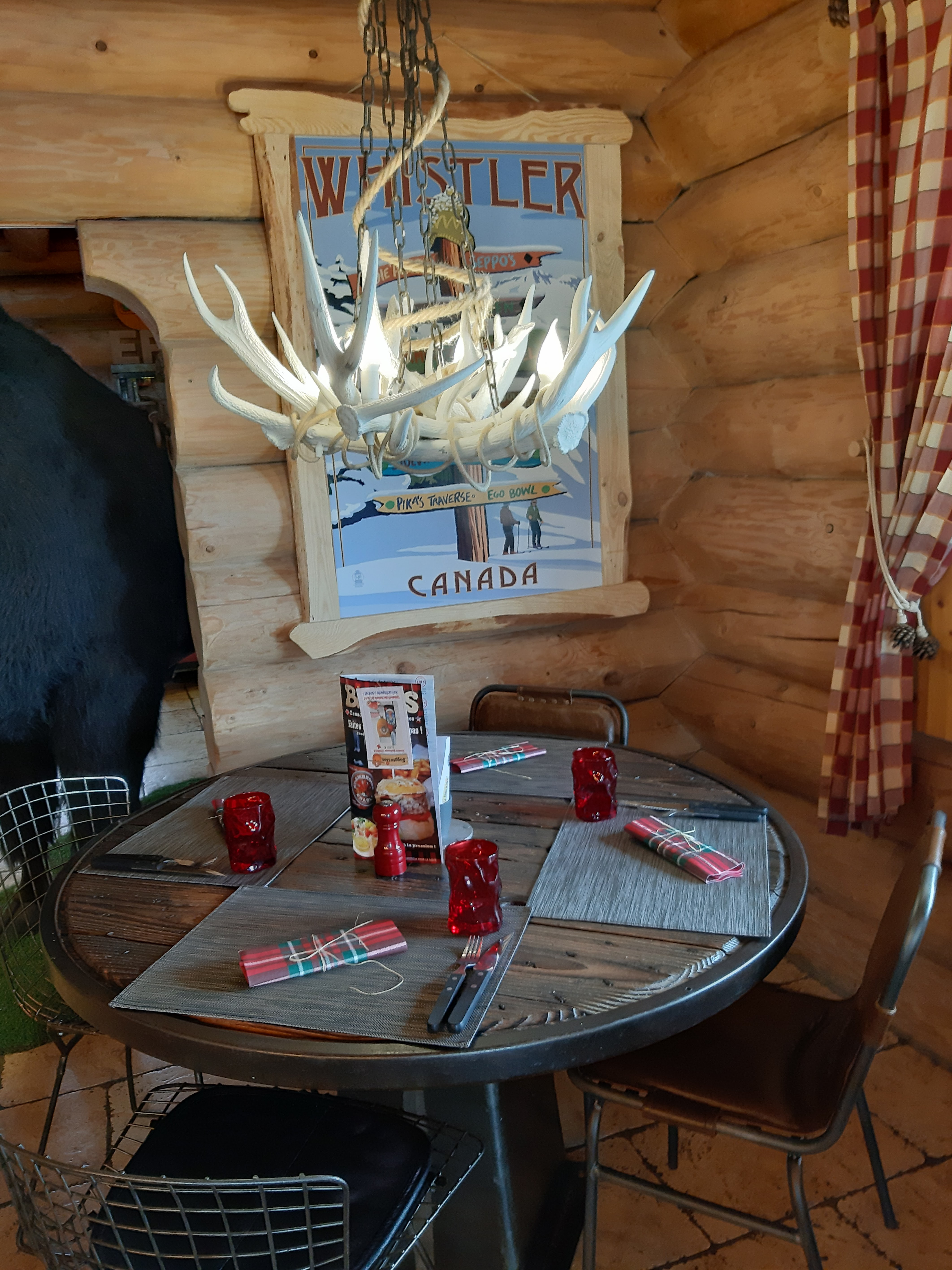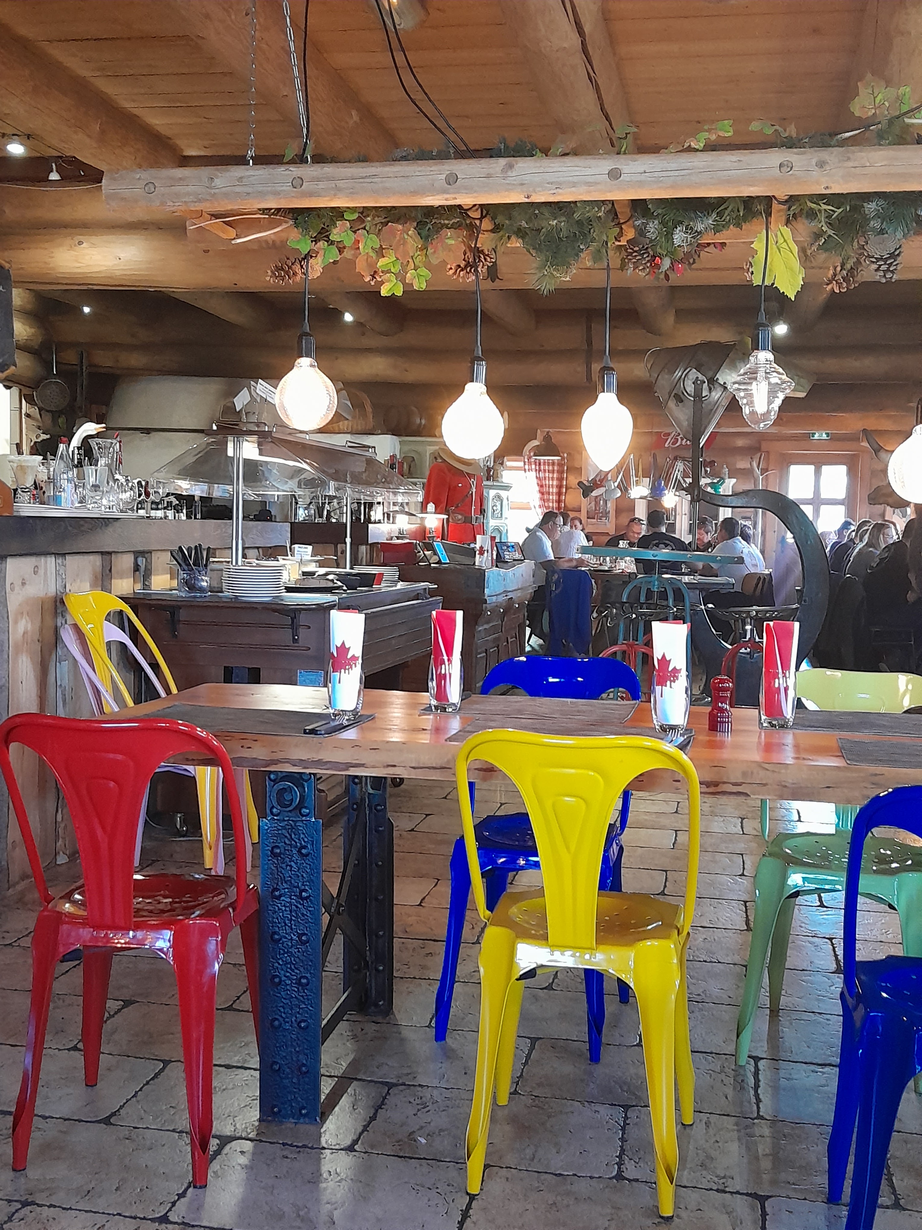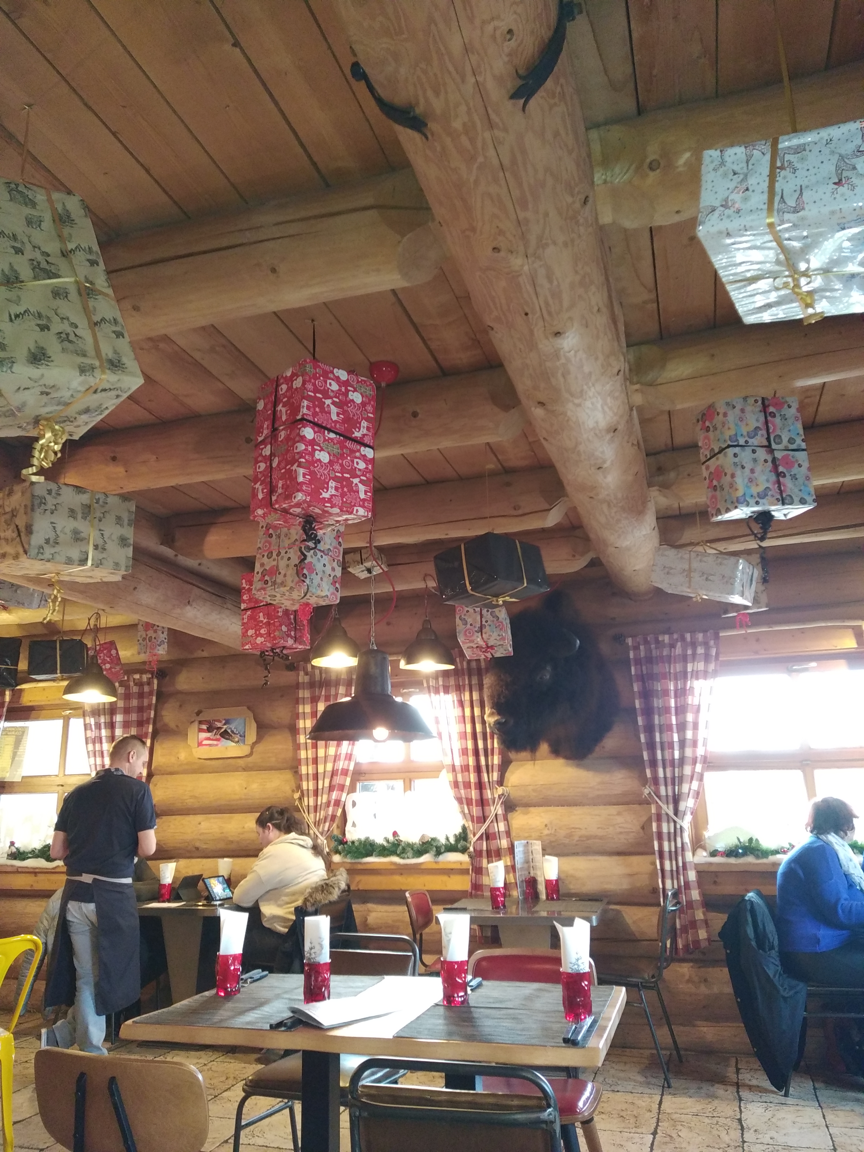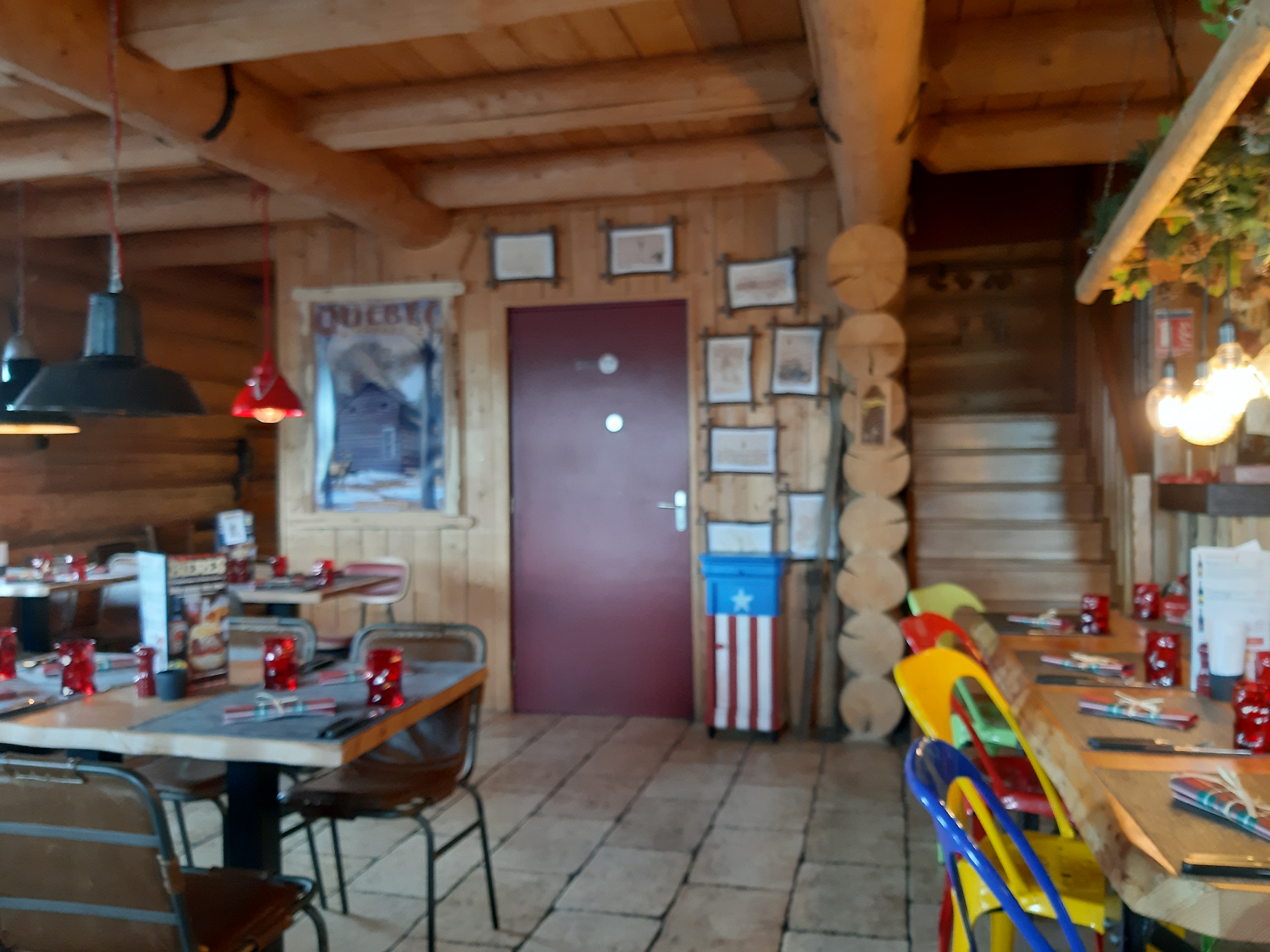 Chalet super sympa, décor chaleureux , personnel accueillant, même si on a mangé à coté d'un ours (en peluche certes mais impressionnant quand même ). Carte sur tablette tactile, du choix et des produits frais, tarifs raisonnables (mais il ne faudrait pas que ça augmente). Le thème général est le Canada/Québec avec les plats qui correspondent, mais pas que... Petit bémol: carte des allergènes à revoir... (surtout pour le gluten). Très accessible en voiture, bord de route, pas loin de la voie rapide. Bref nous recommandons sans pb !!