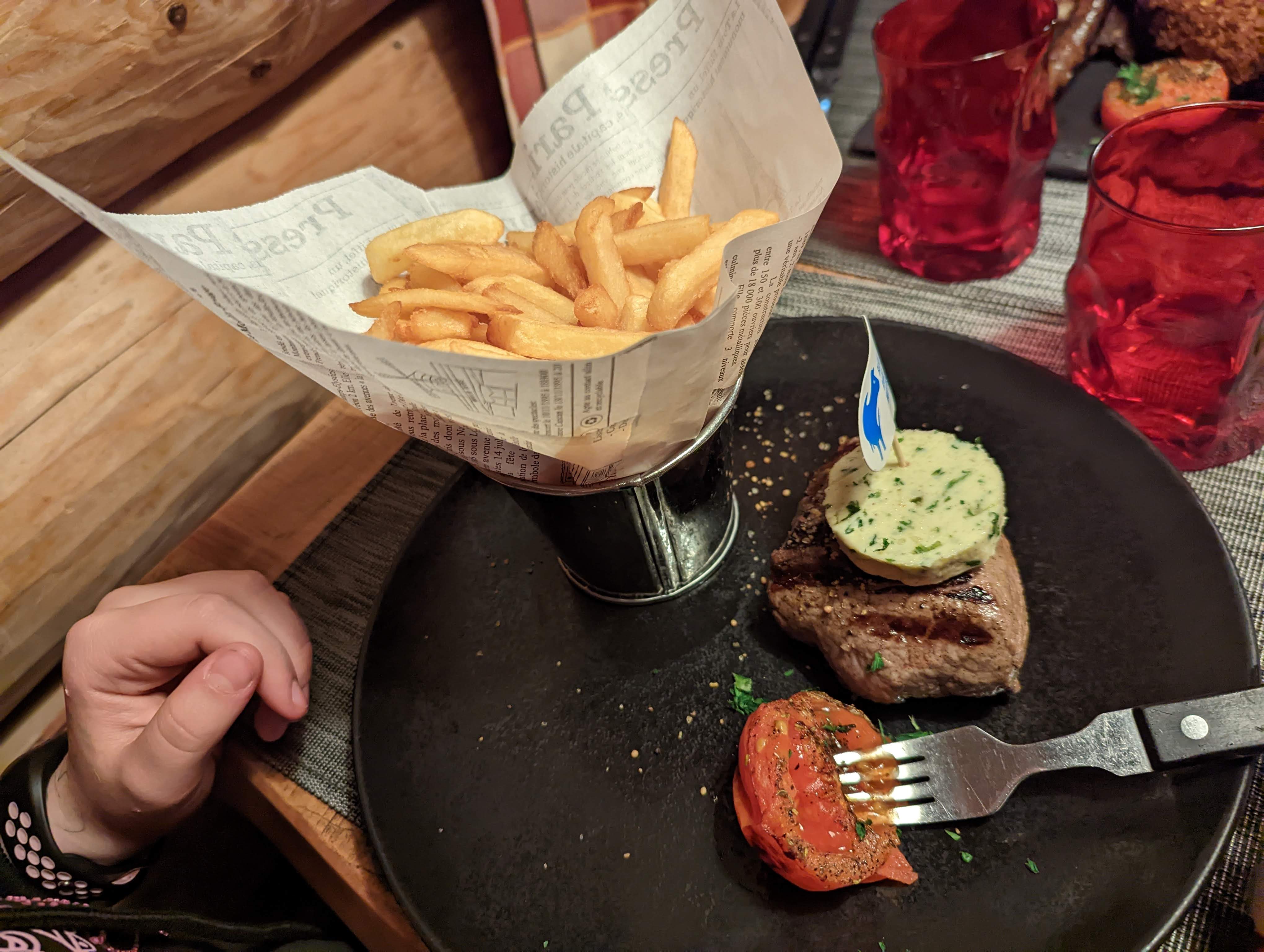 Agréablement surprise ! Après 24 ans sur Sarrebourg je viens d’apprendre que la cabane de Marie faisait des poutines. Pour moi c’était seulement un resto de viande. La poutine était très très bonne (je ne suis pas une pro de poutine), la petite salade à côté est vraiment sympa. J’adore le cadre Canada poussé jusqu’au bout => très jolie déco! Service bien☺️ J’ai pris le buffet de dessert à 8€ et quelques, j’en ai pris 3, c’était bon, mais sans être excellent (étant du buffet je peux comprendre...) d’où l’étoile en moins. Coupe de glace de whisky un peu décevant pour mon copain. La prochaine fois je testerai les poutines sucrées!