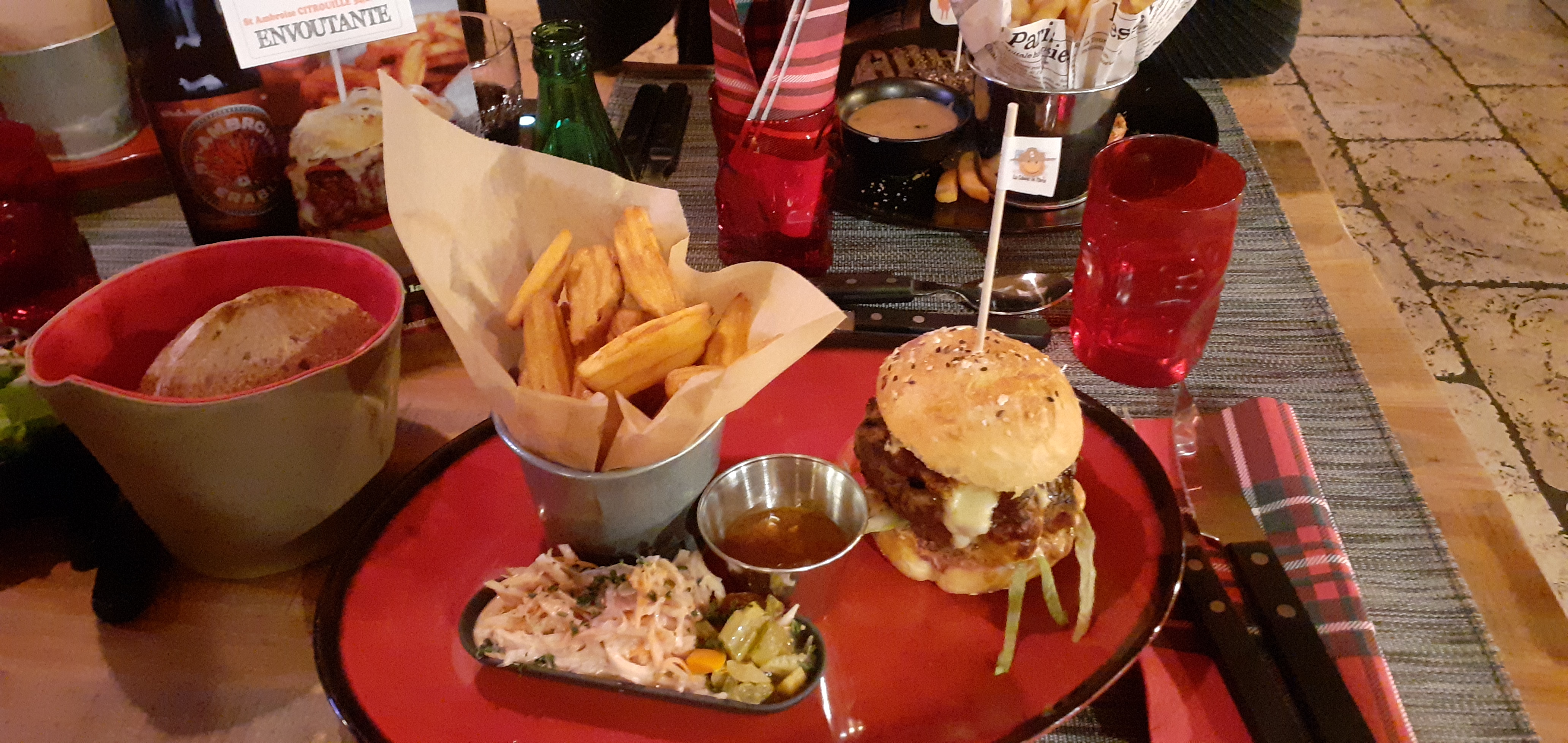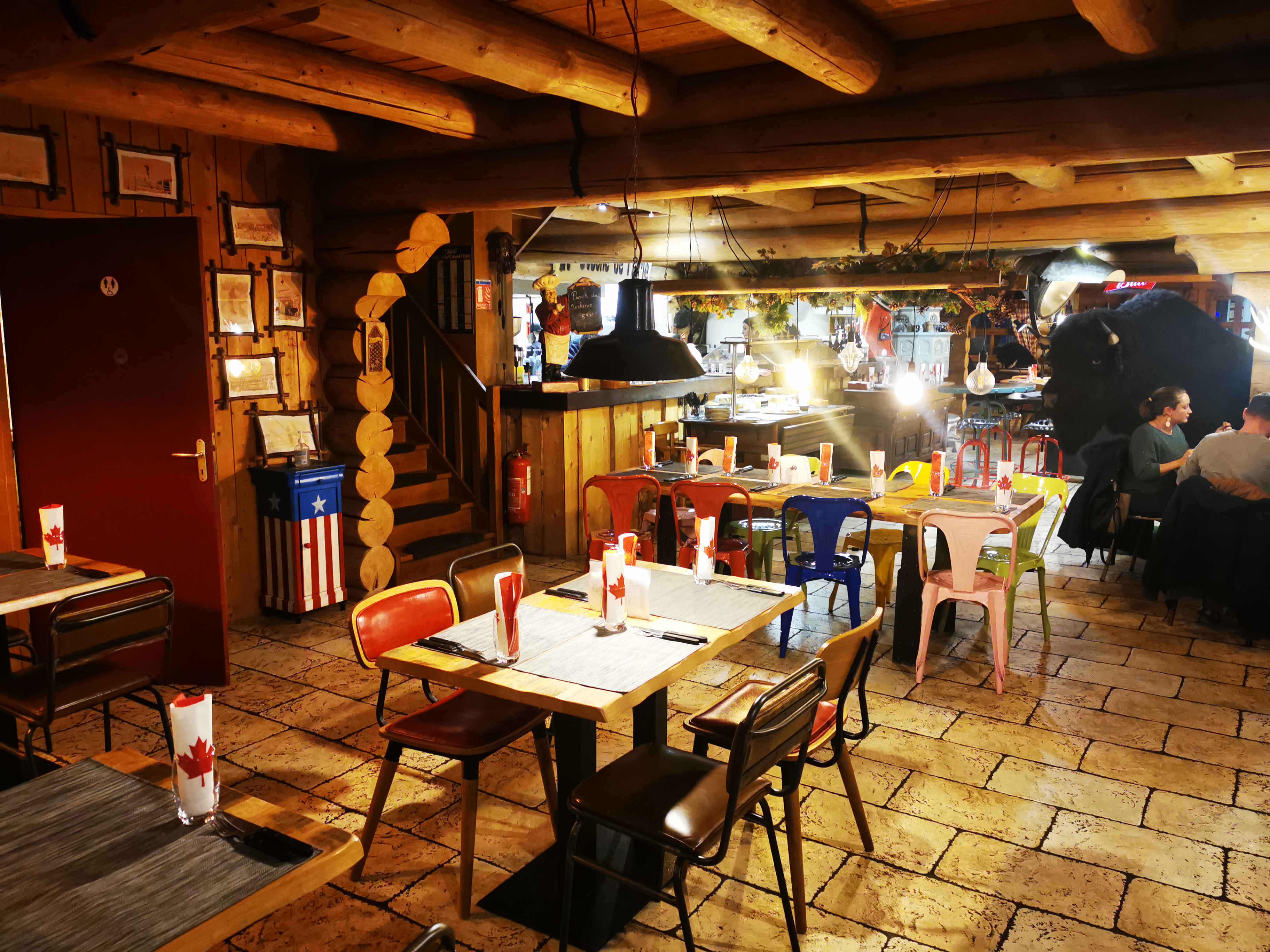 Ambiance canadienne avec plats et saveurs du pays…vous trouverez également un large choix de Burger très bien garnis…vous avez le choix à la carte, buffet de dessert et formule du jour bon rapport quantité, qualité prix. Un bon endroit également pour les amateurs de bières originales.