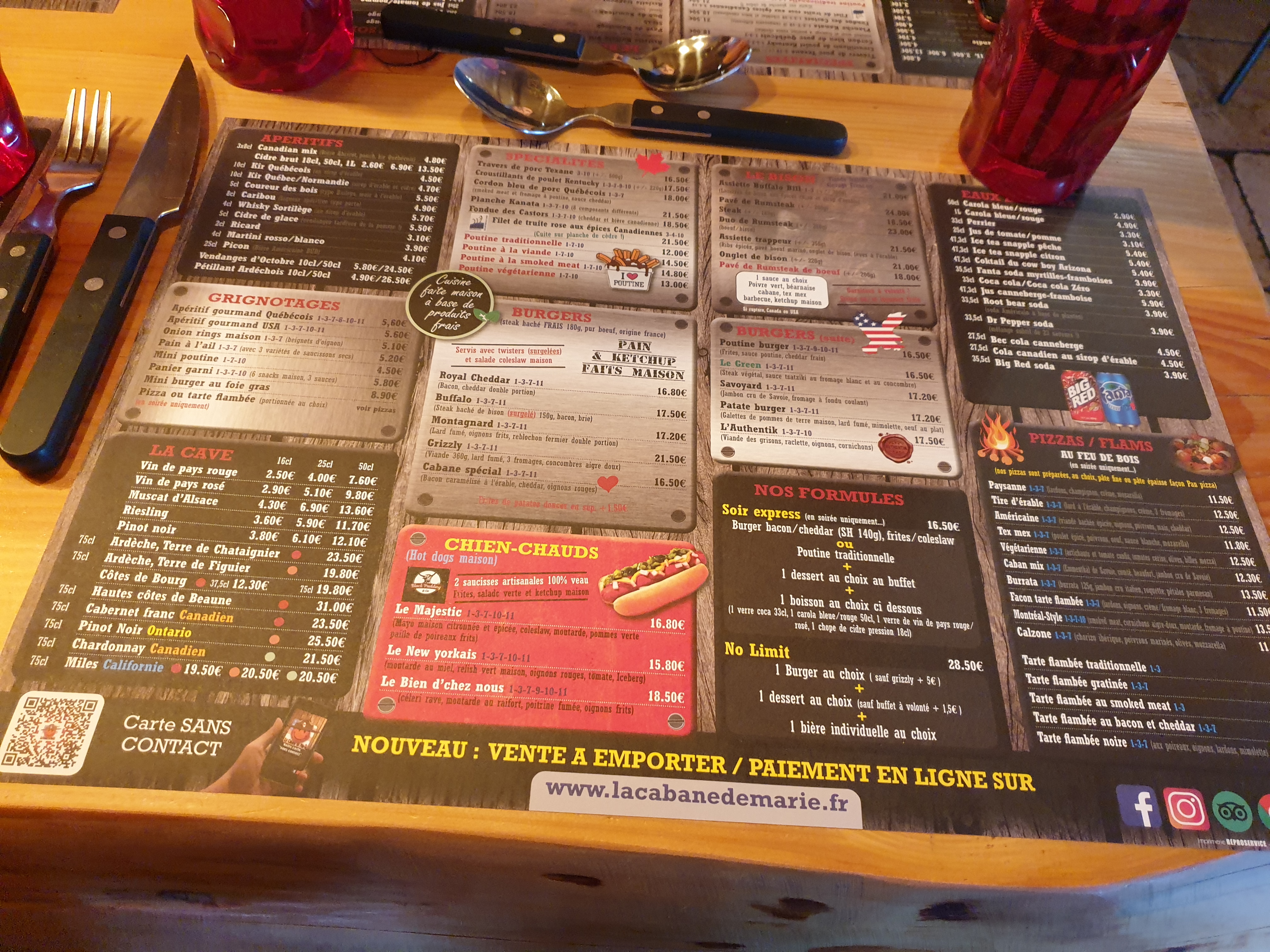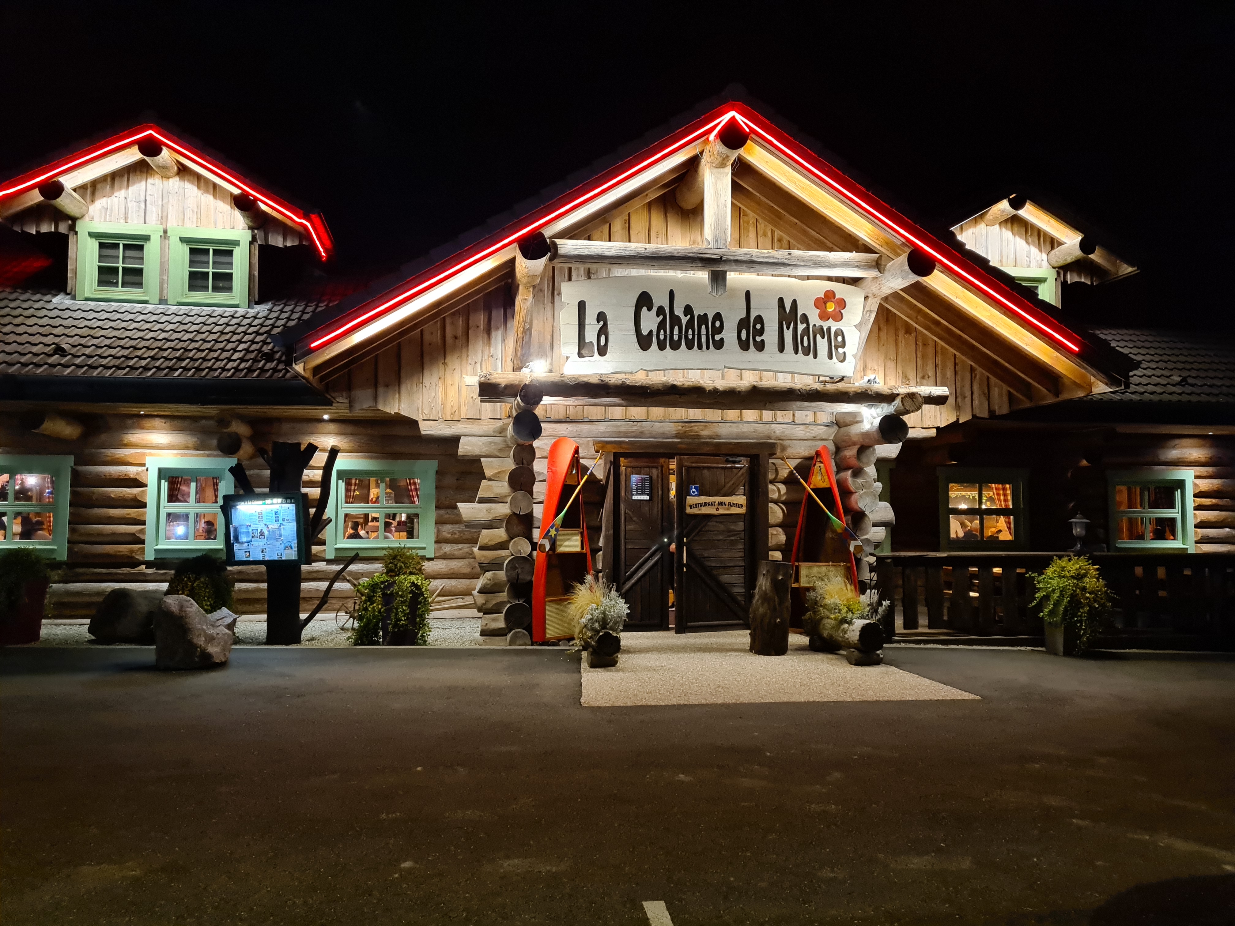 De passage sur Sarrebourg, la cabane de Marie attire le regard et la curiosité: Magnifique, petite caresse au caribou, l'élan et une table munie de tablettes pour les menus, difficile de choisir, tant les photos attisent l'appétit! Service rapide et convivial, quand à ! la poutin! Un régal super copieux, soirée gastronomique inoubliable pour un prix plus que raisonnable dont le montant est vite oublié tant l'assiette est ...magique de succulance dans ce magnifique endoit ( incontournable pour se taper la cloche!!!