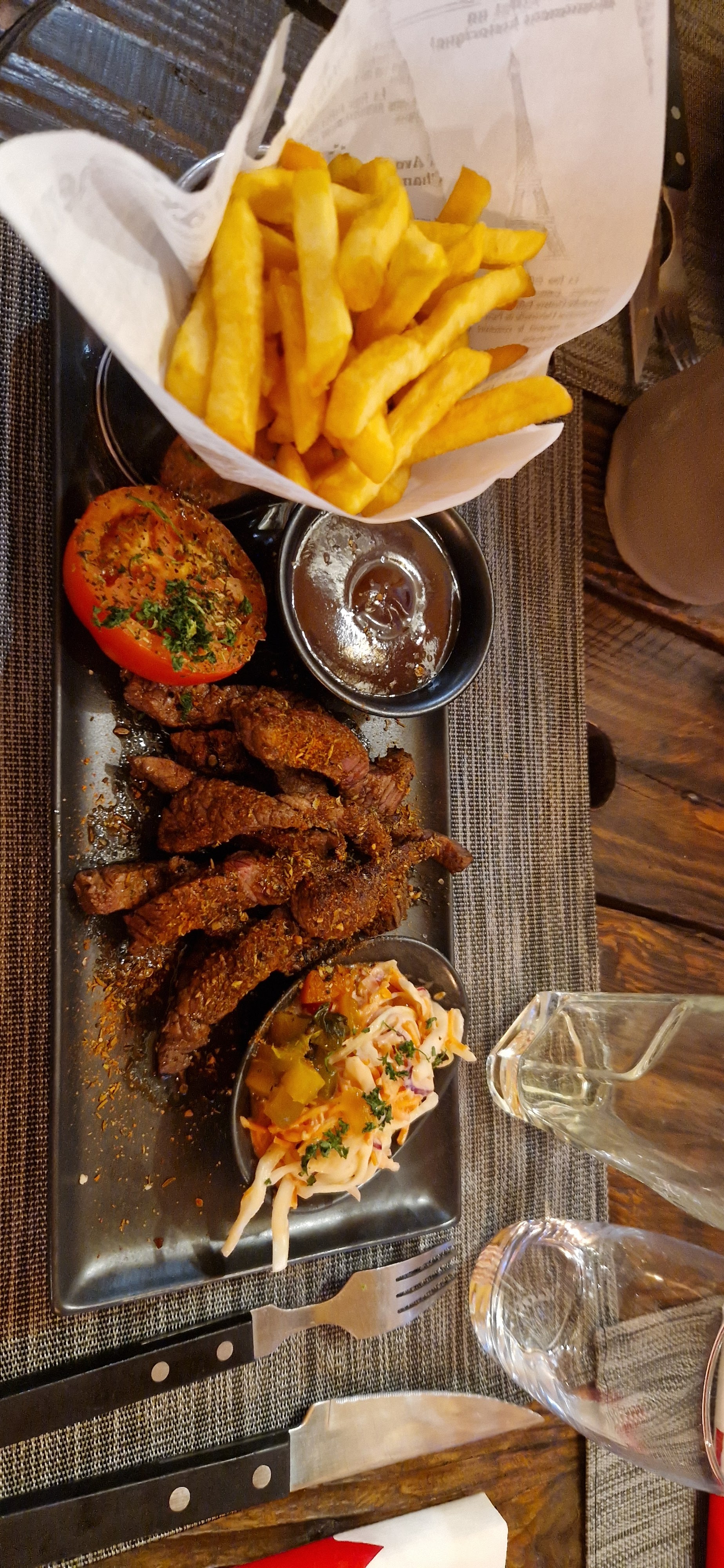 Apparemment, c'est normal pour la patronne de servir du coca cola sans bulle. De plus, elle ne vous montre pas la bouteille. J'ai dû demander deux fois pour qu'on me le change. Pour la patronne ça sort sans bulle de la bouteille en plastique mais oui et les cochons sont violets aussi. Plat du jour maison qui n'a rien de maison. Pourtant c'est écrit en gros sur la pancarte en photo ! Frites surgelés et bœuf mal cuit. Qu'est ce qui est maison ? La petite sauce qui sort du pot ? La tomate de décoration ? La viande qui sort du congélateur ? Non mais serieux..