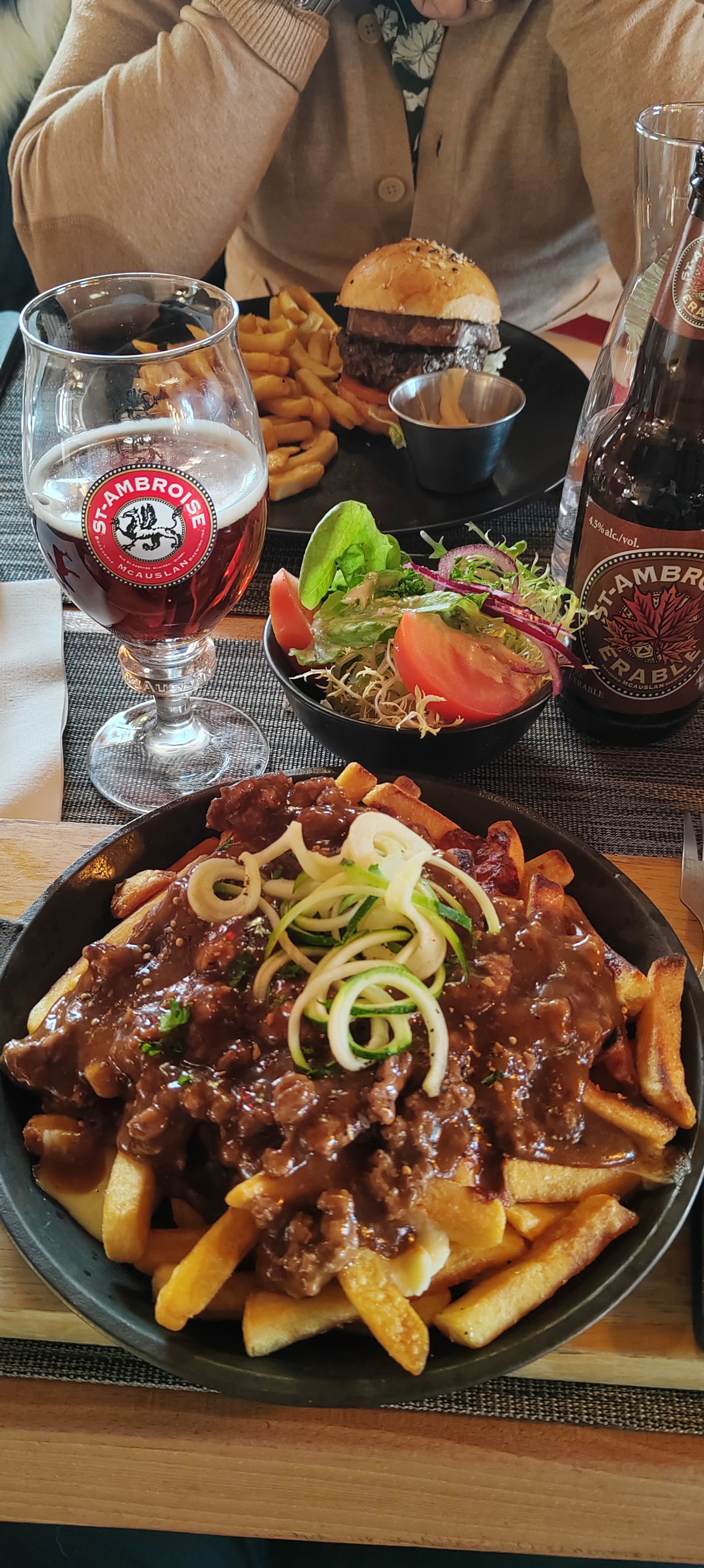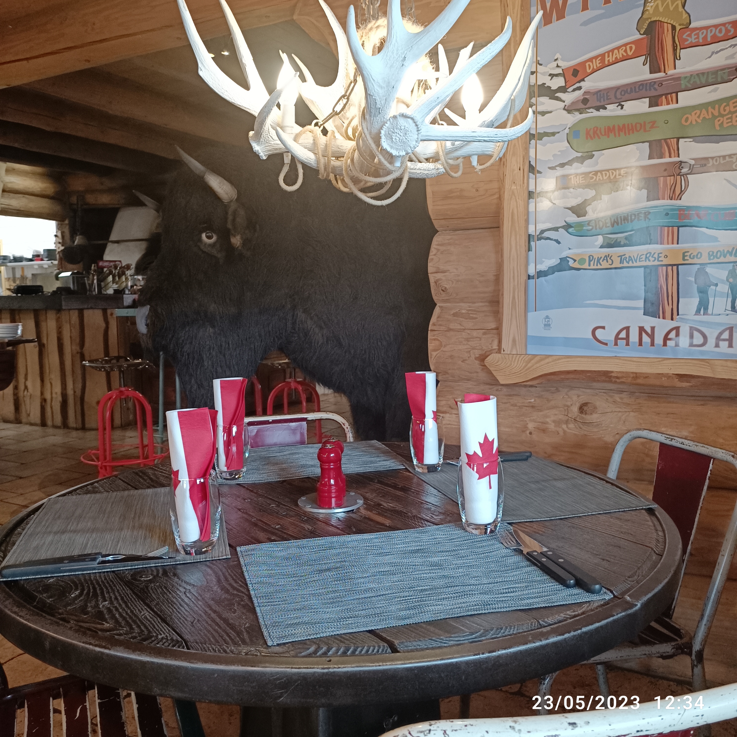 Un restaurant avec un sacré décors qui nous transporte directement au Canada Un restaurant qui nous fait découvrir des bons plats du Canada bref des qu'on arrive près du restaurant on a déjà changé de continent et le voyage commence. L'apéro confirme le dépaysement on se demande juste ou était la douane ... Bon choix de bières du continent américain et des boissons bien de la bas on peut même prendre des planches à partager Les plats sont très bons et la viande de bison est bien tendre et cuite à la perfection La poutine est bonne et généreuse et le service est impeccable rien à redire. Les toilettes sont très propres Si je repasse dans le coin je saurai où aller