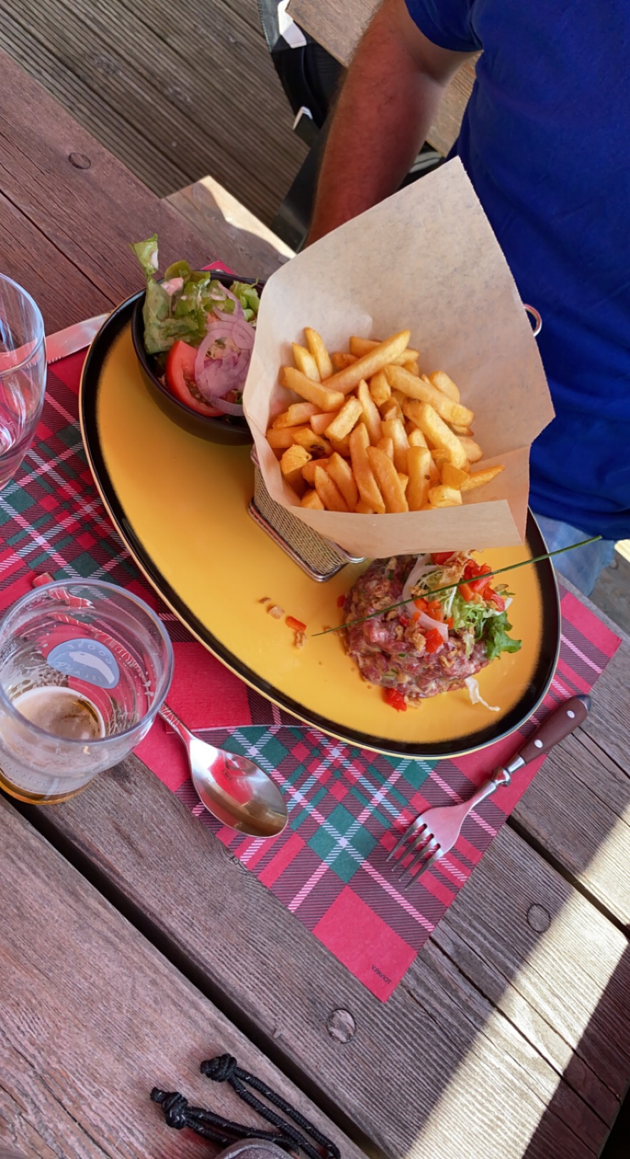Les photos résument d'elles même... Inutile de chercher à justifier les 5 étoiles. Salade de choux blanc en entrée, burger au reblochon (ou faux filet au choix) et buffet de desserts à volonté. Le tout pour... 12€. De la qualité, des saveurs et une présentation soignée, c'est parfait ne changez rien. Bravo je reviendrai 😉😜 J'oubliais le service est lui aussi exemplaire dans la rapidité et la sympathie.