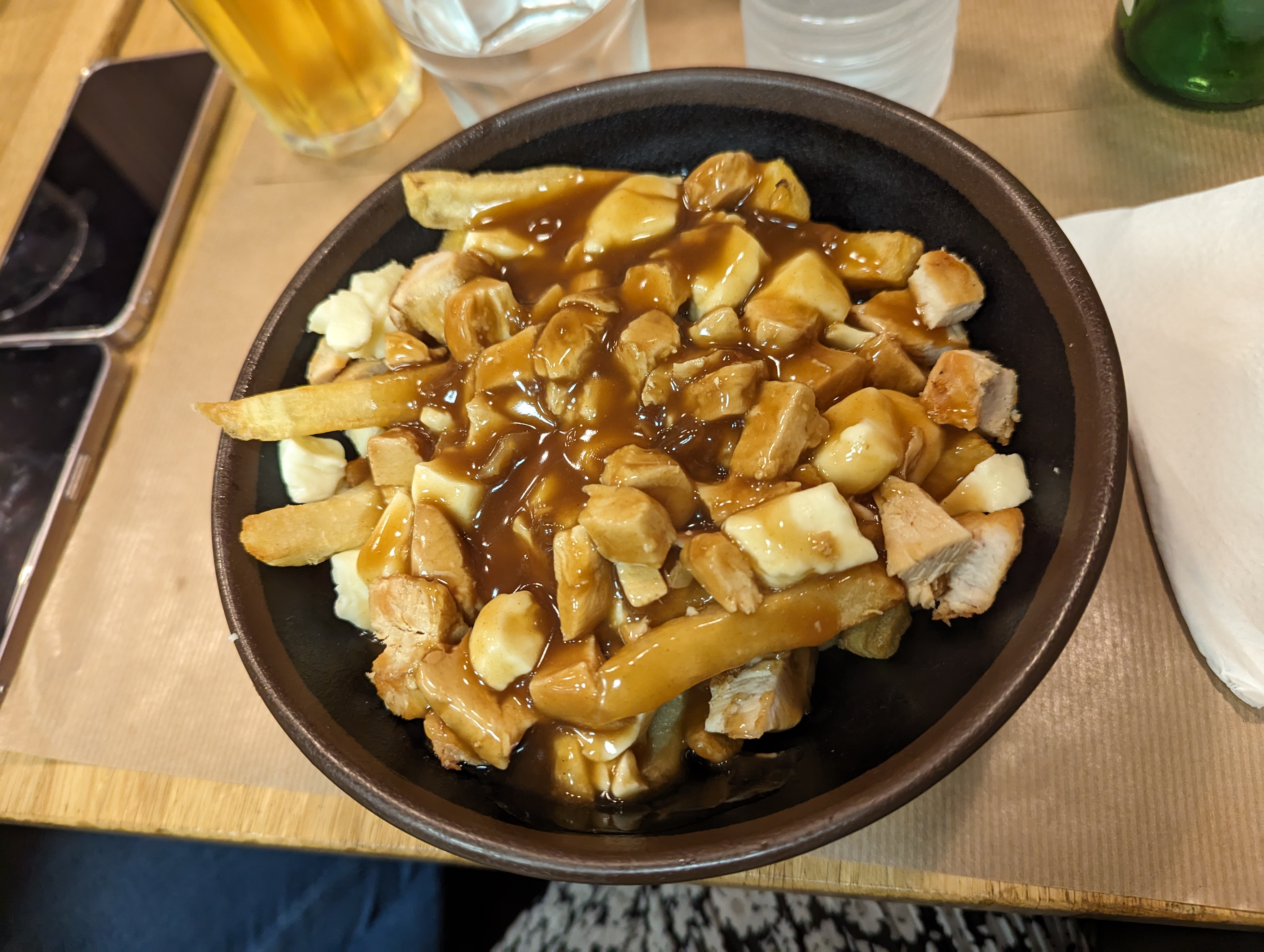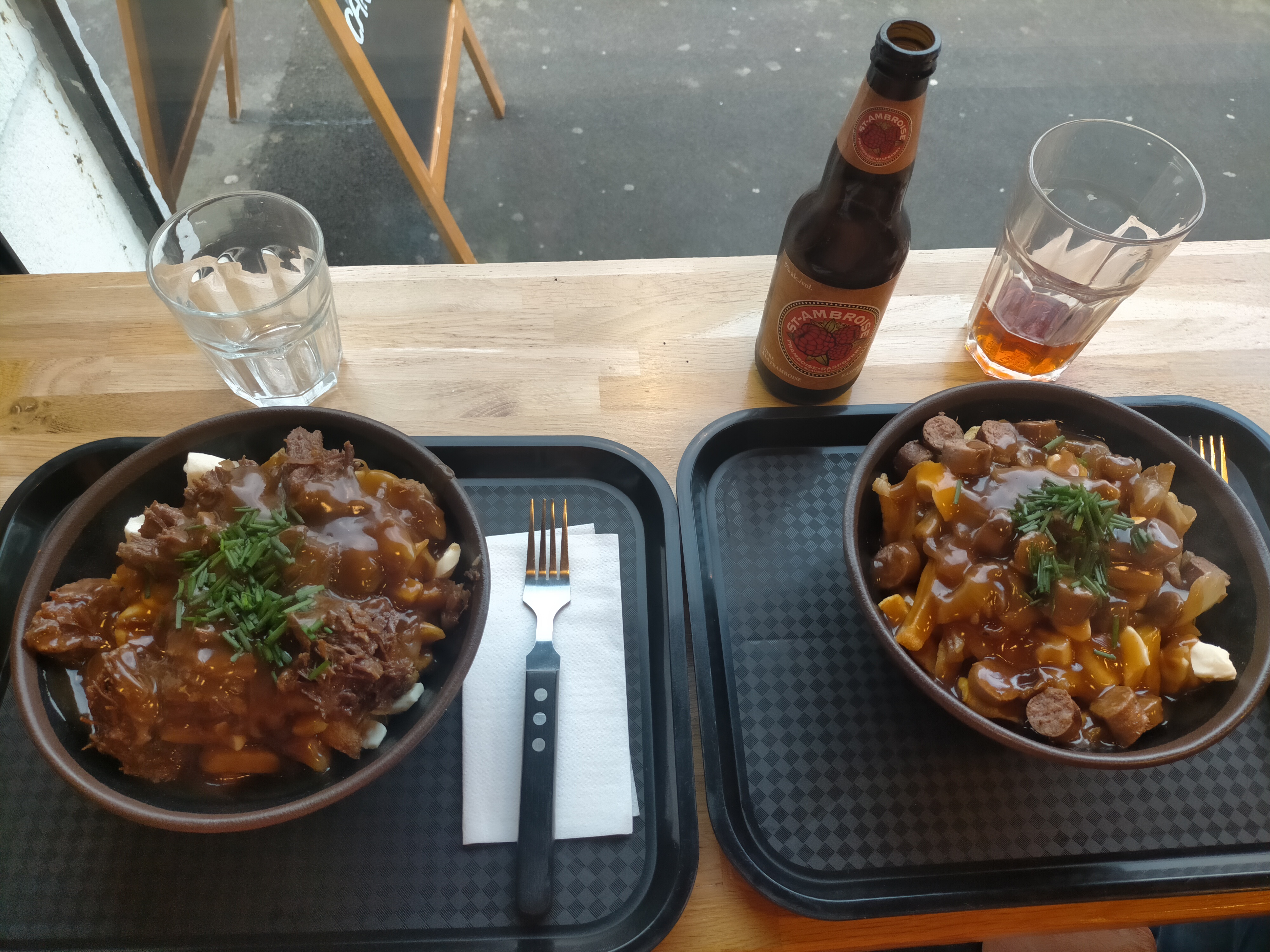 J'ai mangé avec mon collègue ce soir, moi qui connais le Canada c'est absolument remarquable. Le cadre, de style industriel, est beau et d'une propreté irréprochable (un mur en briques apparentes magnifique), les poutines sont remarquables : la saucisse de bison avait véritablement du goût, les frites de très bonne qualité, vin Pinot Noir excellent à un prix défiant toute concurrence, et le service familial irréprochable et privilégiant le contact. Cette famille a tout compris à la restauration, d'ailleurs ce n'est pas de la restauration c'est mieux ! C'est une véritable expérience, allez-y les yeux fermés vous découvrirez le Canada profond dans sa splendeur.