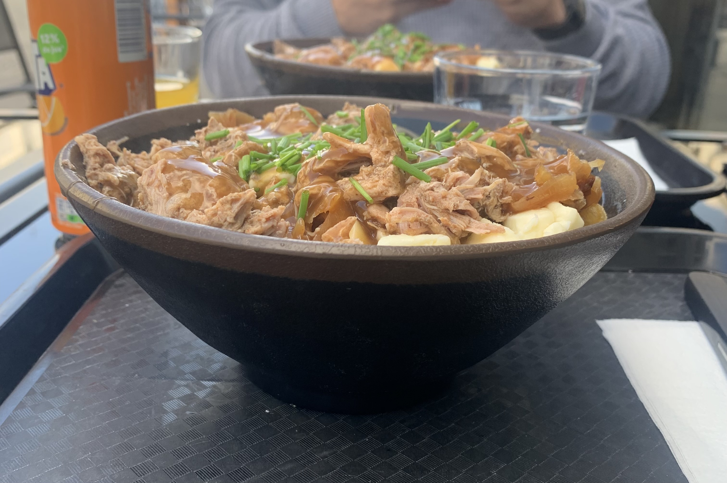 Heureux hasard, et depuis des vidéo youtube sur ce thème, envie de goûter. On y est passé dimanche, à emporter, réchauffer au four après plusieurs heures... bah c'était un putin de délice ! Que ce soit la poutine, ou l'éffiloché de porc... c'était une tuerie ! Service plus qu'agréable, car en moto, sac bien fermé... on revient ce soir ! Envie de goûter frais !!!