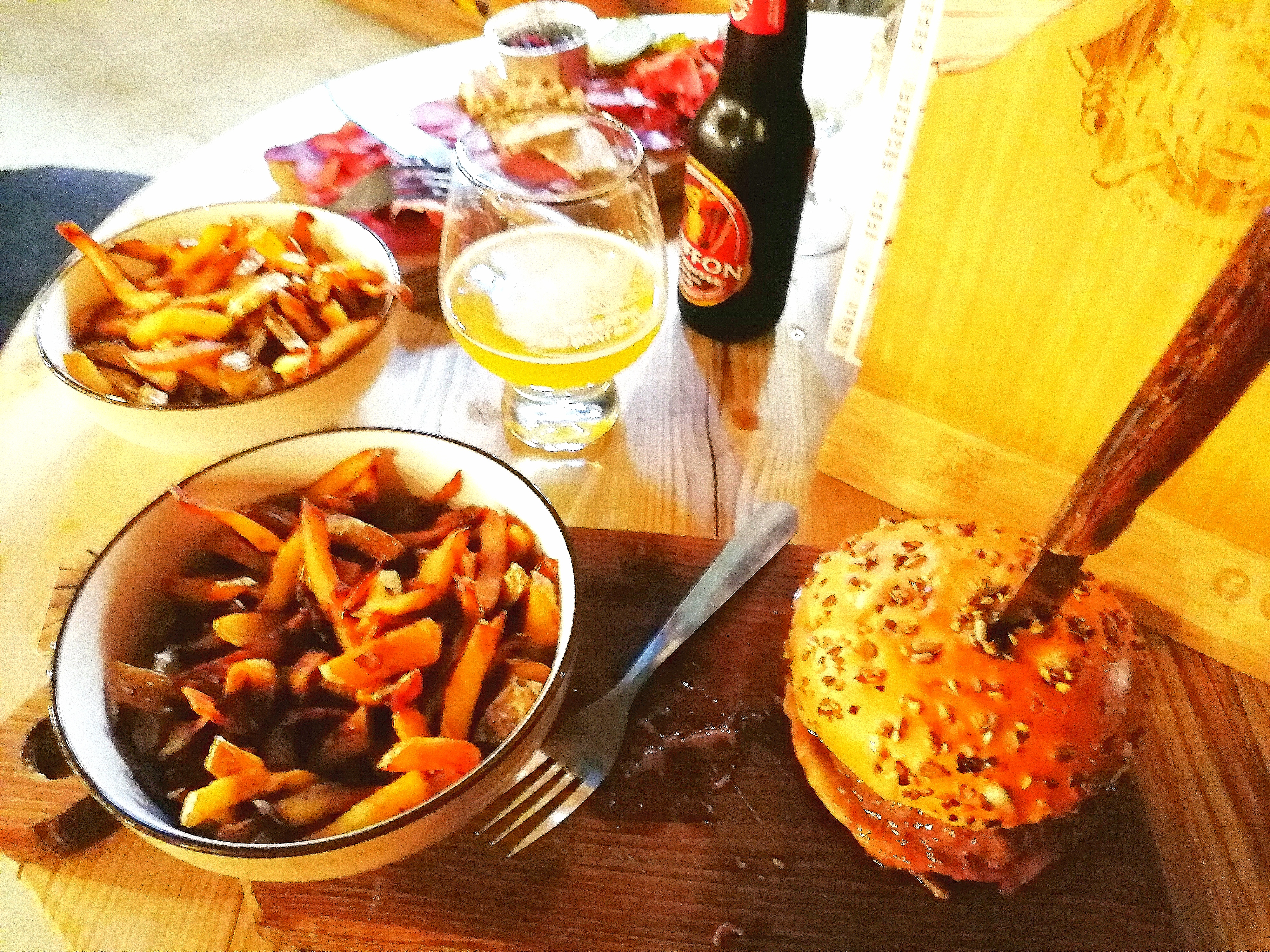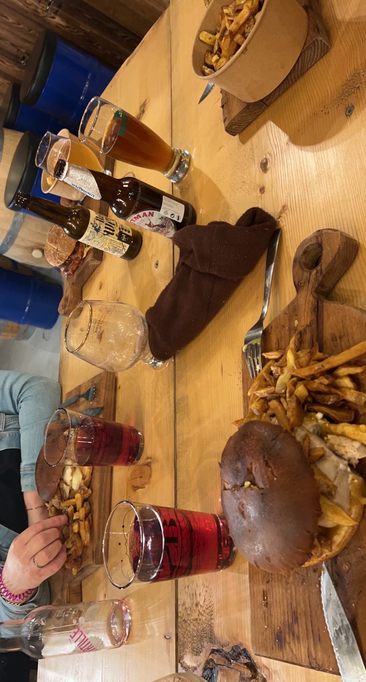 Ambiance sympathique sur place avec du lancé de haches où on s'amuse vraiment. Sélection de bières géniale avec un point fort sur les bières du Mont Blanc. Il y a aussi quelques boissons canadienne à base d'érable qui sont chouettes à découvrir. Sur la nourriture, l'accent est mis sur les spécialités canadiennes, mais il y a bien d'autres choses pour se sustenter. Et le clou, le top du top, ce sont les 2 chapitres des apéro escape game. Le principe, vous repartez chez vous avec une glacière géante remplie de boissons ( alcool et soft), de saucissons de Savoie, de pâtés de Savoie, de biscuits salés nivernais, de fromage de Savoie, de chips, de sucré et de pain......par contre pour y accéder il faudra jouer, résoudre des énigmes et des casses tête. Ambiance assurée entre copains ou en famille pour 2h. L'apéritif est donc étalé dans le temps et c'est vraiment top