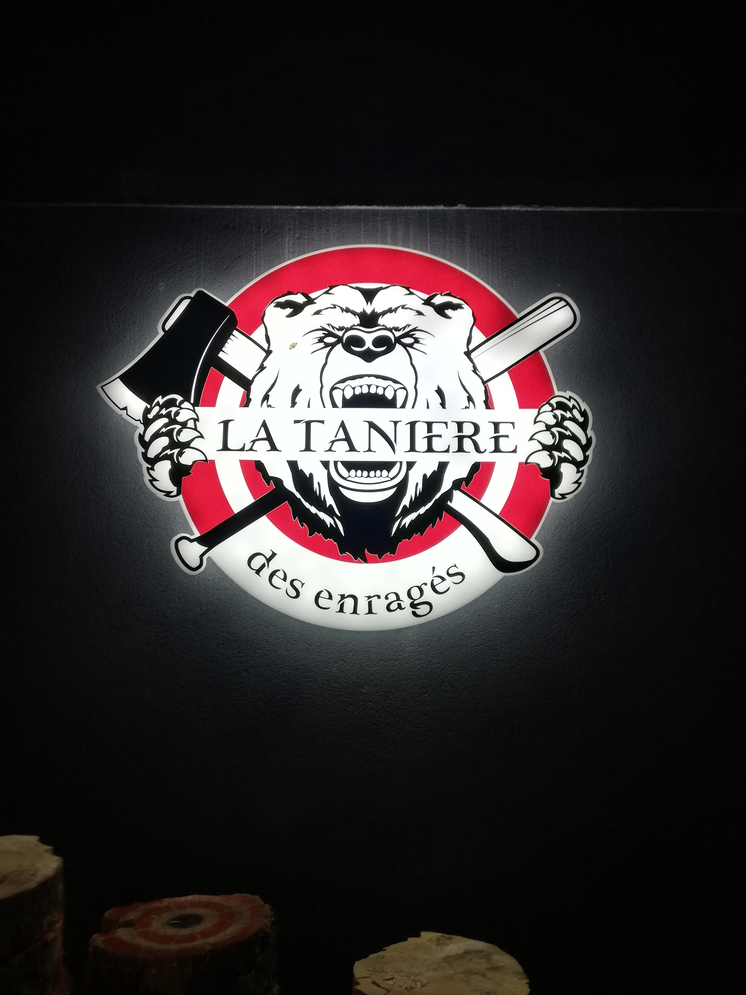 D'une part un bar à bière avec un très grand choix, et servant des spécialités canadiennes pour calmer les appétits. Et d'autre part un centre de lancer de couteaux et de haches que je ne pourrais que recommander très fort. Contrairement aux bars à haches, vous ne serez pas lâchés au bout de quelques secondes sur des cibles en vulgaires planches avec des haches de jardinage. Vous serez accompagnés jusqu'à ce que vous plantiez vraiment, et cela sur des cibles de grande qualité (bois debout compressé). Autre nouveauté : les cibles sont projetées, ce qui lorsque vous serez lassés des cibles concentriques classiques, vous permettra de changer de jeu (cibles changeant de positions entre les lancers, cible retrecissant après un succès...et je pense que le patron a encore plein de belles idées. ... Photo à suivre