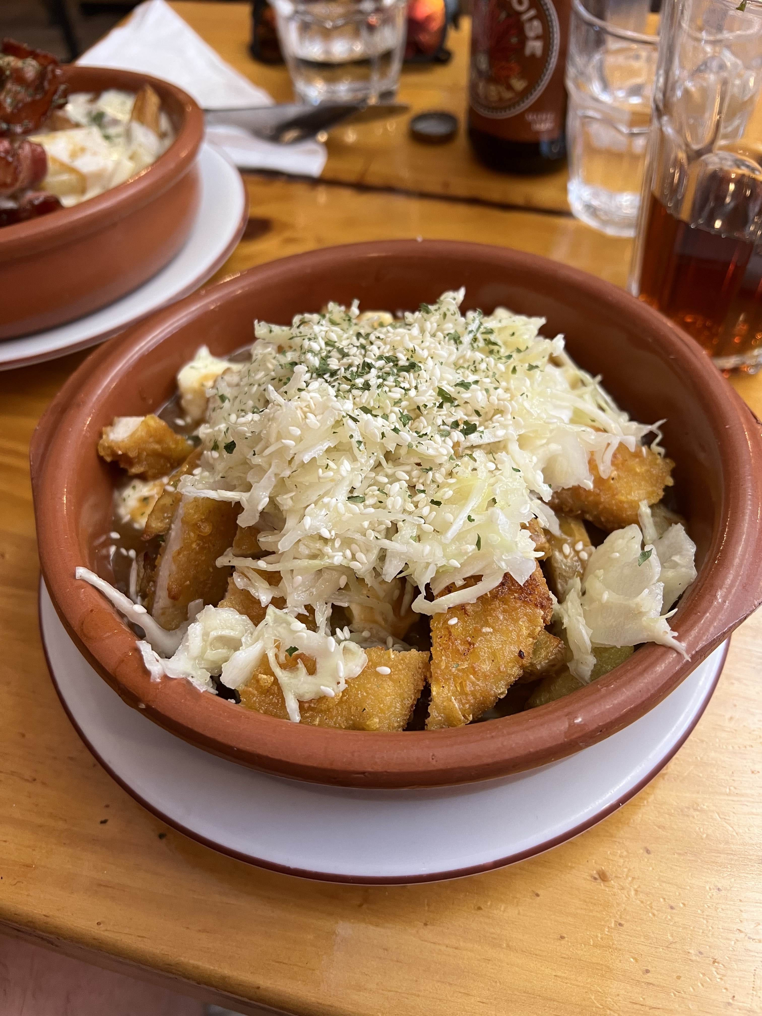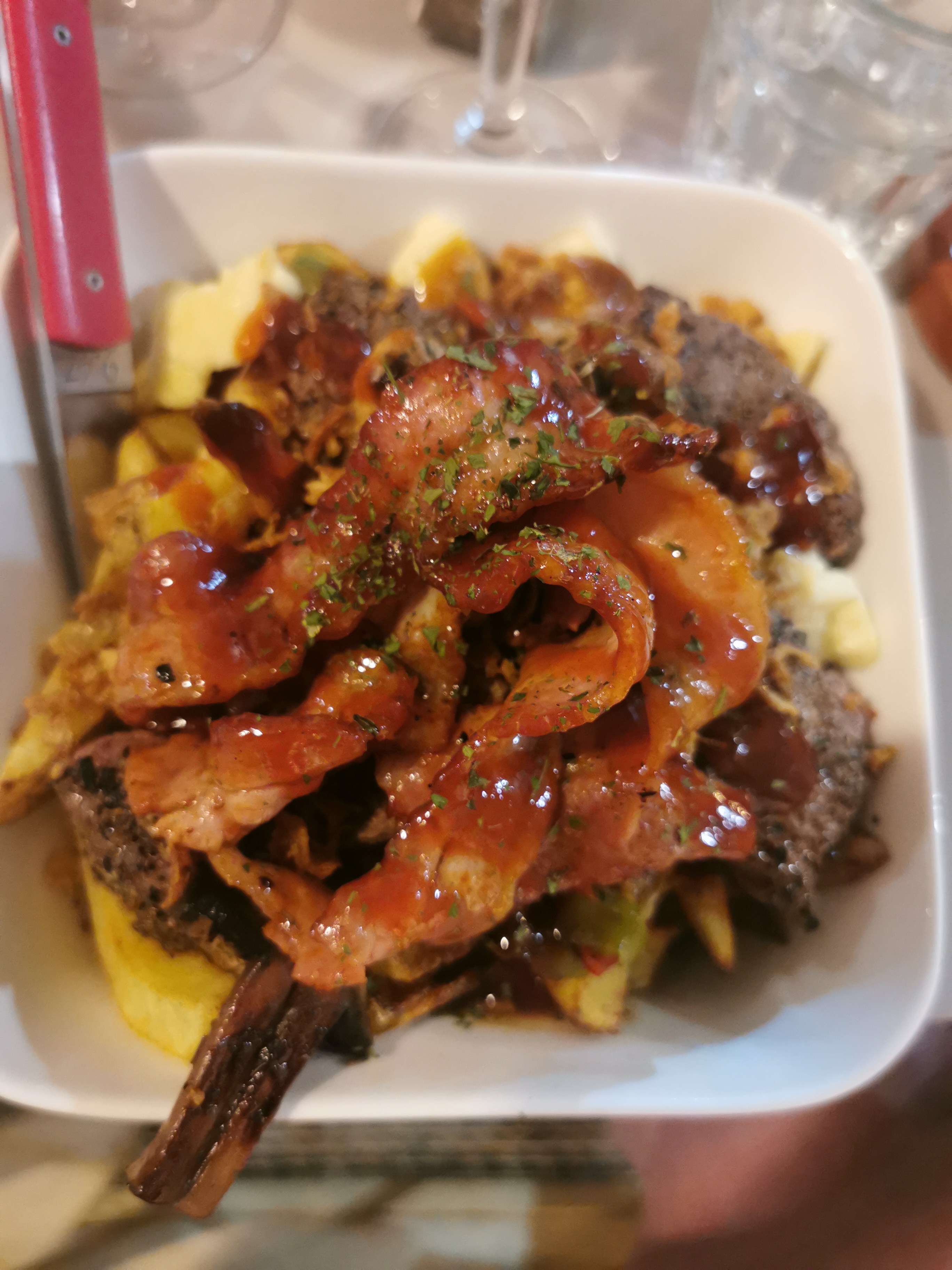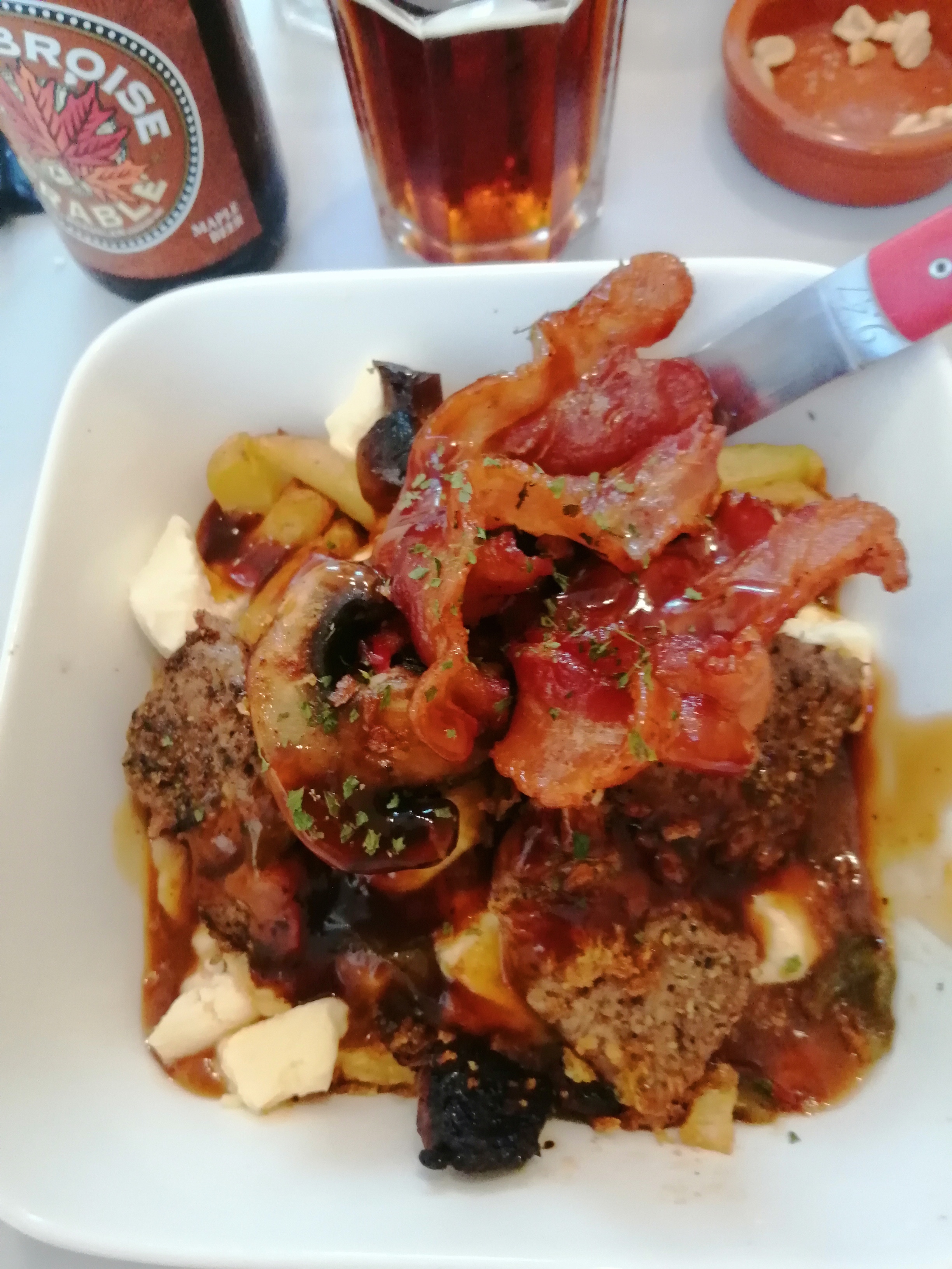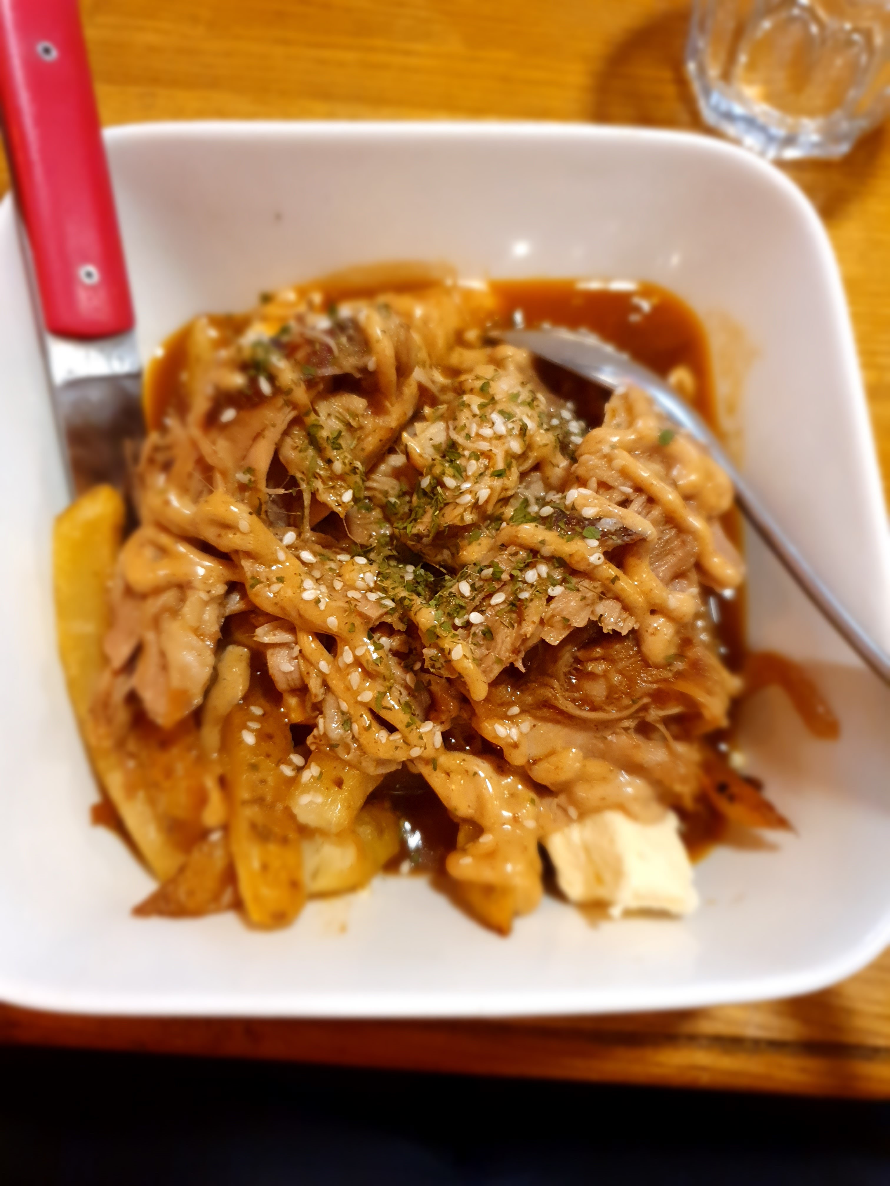 Je n’ai pas de références sur les poutines (à part celles que je fais à la maison) mais celles que nous avons mangées étaient vraiment top ! (Bourratives certes mais c’est un peu le principe de ce plat 🤣) quoi que la « verte » j’ai bien apprécié le chou style coleslaw qui « rafraîchis » un peu ce plat ! Le petou de mamie était top aussi ! L’accueil est sympa, au premier abord un peu « brut » mais on cerne vite le personnage qu’est le gérant (un des deux gérants) . Nous avons beaucoup discuté avec lui et c’était vraiment cool de découvrir toutes les faces de la restaurations sans filtres ! Je recommande vivement ce restaurant ! On reviendra à notre prochain passage à Pau !