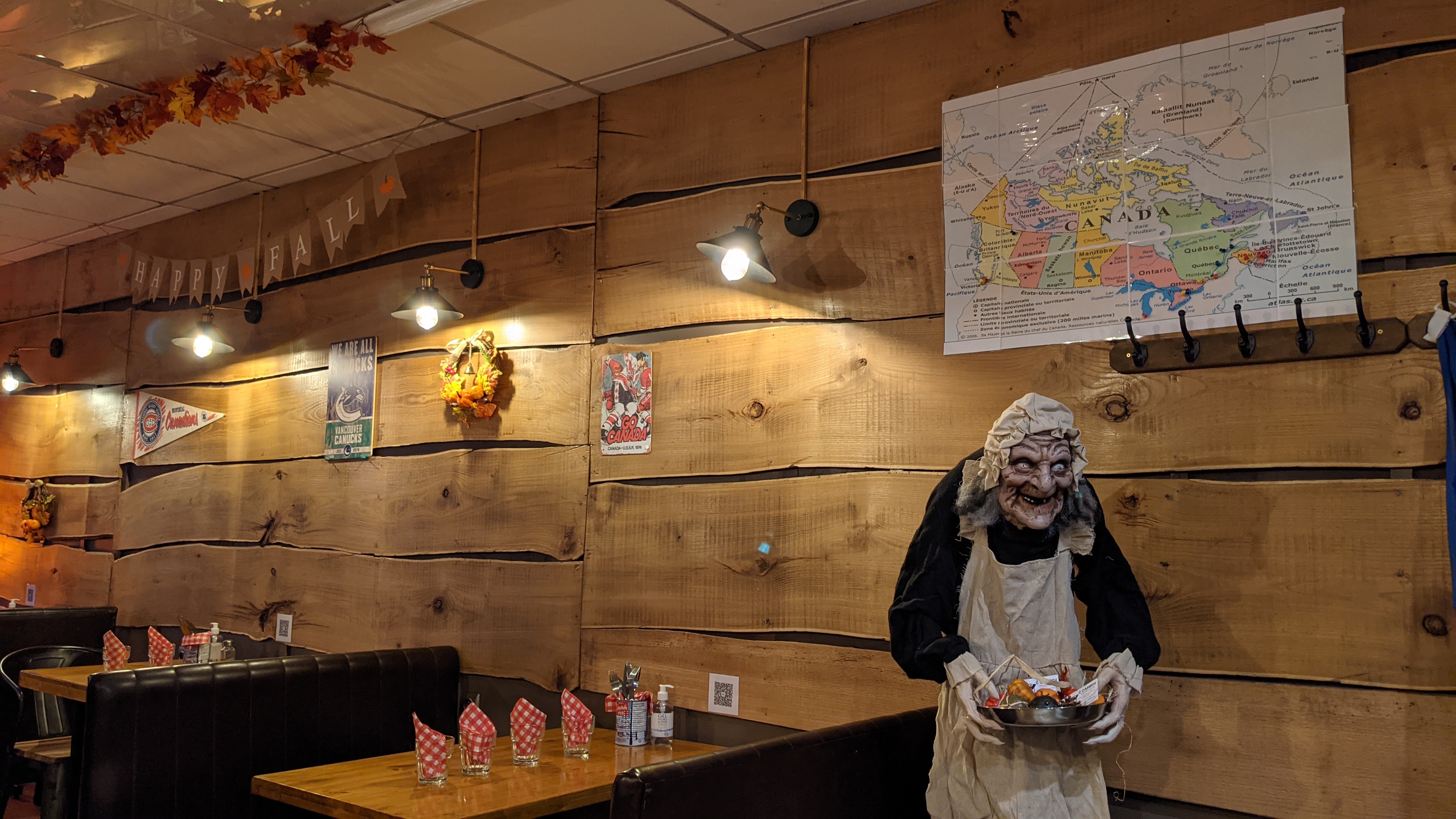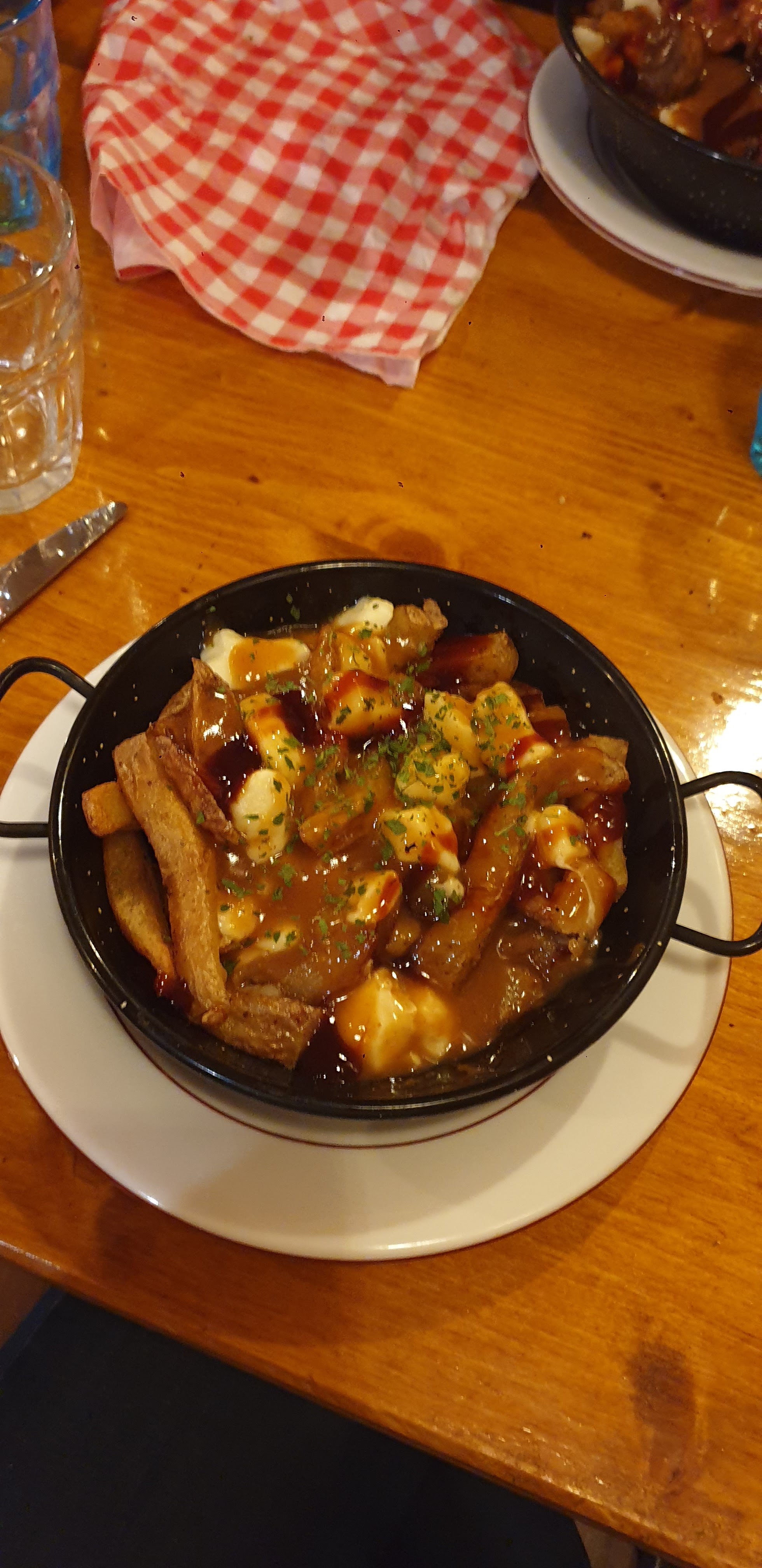 Une expérience dépaysante. Le serveur et le cuisinier sont deux personnes complètement dans le thème canadien chemise de bucheron a carreaux...... Les pourines délicieuses et très copieuses. Je recommande vivement
