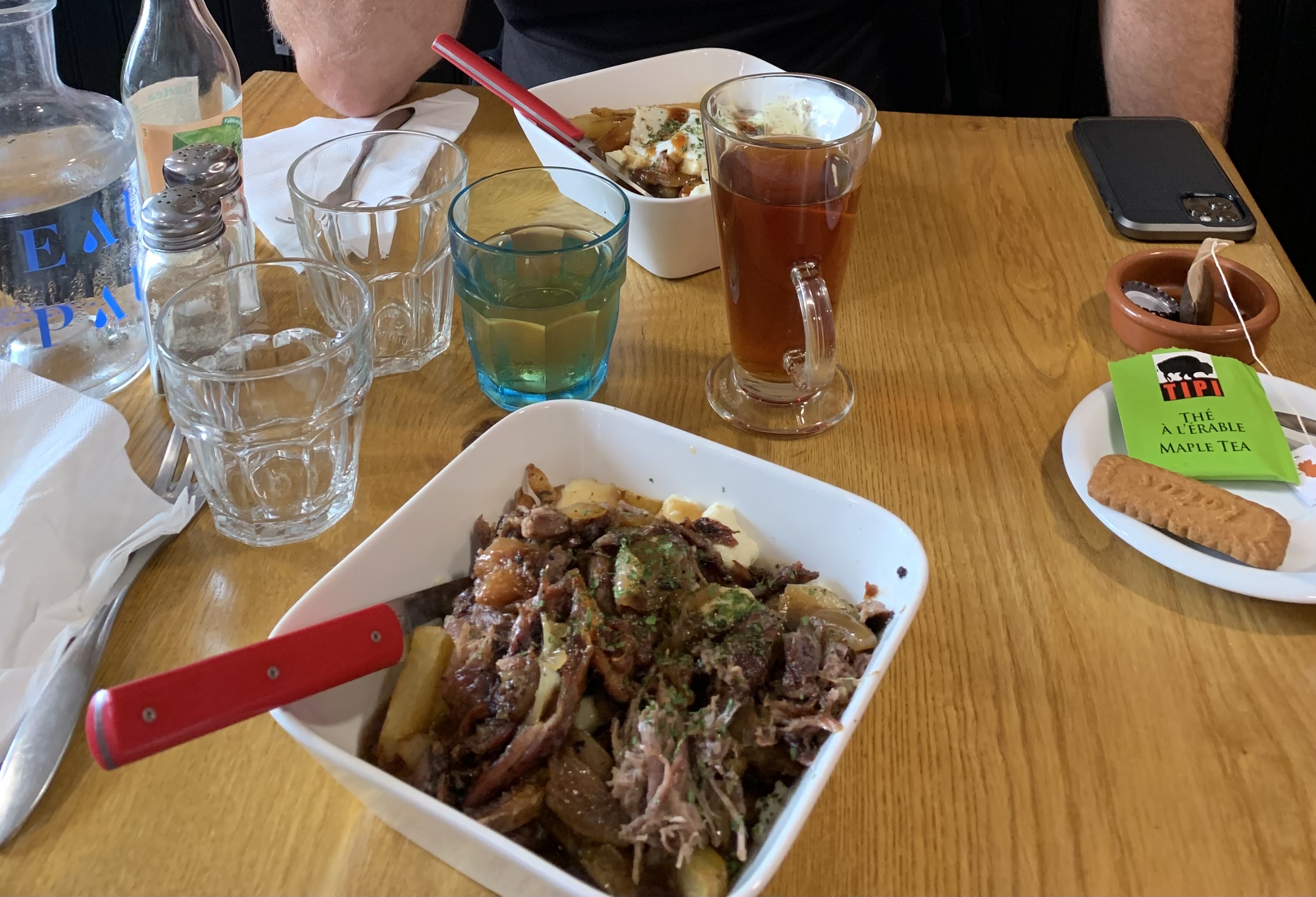 Gérants agréables au possible, tous les plats sont expliqués avec envie pour mettre l'eau à la bouche. Les poutines sont savoureuses à l'extrême, très goutûes; bref une vraie régalade. Le pudding en dessert avec un petit thé à l'érable vient couronner la prestation qui mérite un 6/5. À renouveler au plus vite :)