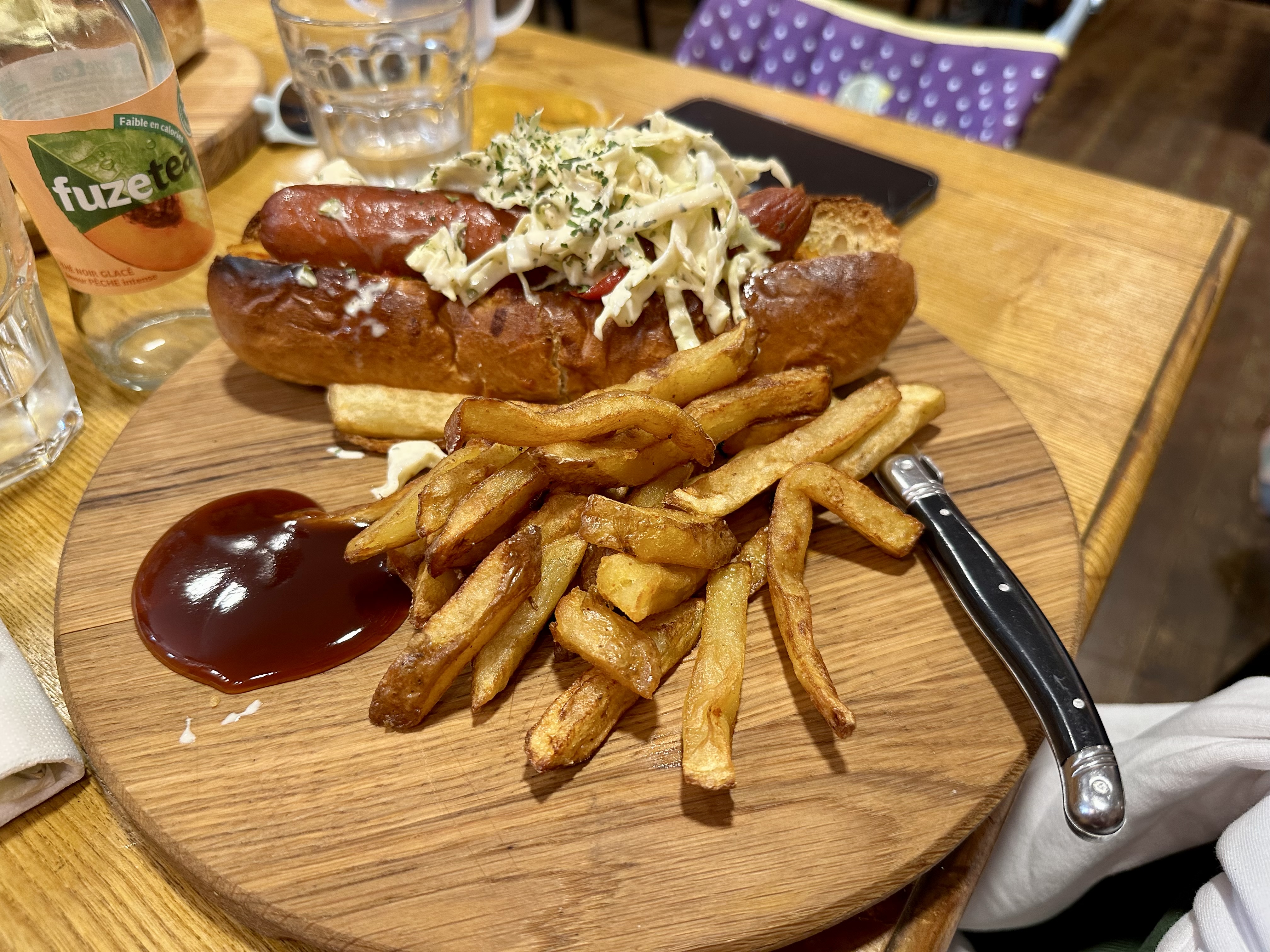 Je ne connaissais pas la cuisine québécoise, j'ai testé... sans regrets! Une poutine, un pogo (4 en fait pour une seule commande), une saucisse confite, un jambon cuit... j'aurais dû prendre des photos! Heureusement que le serveur nous a proposé des doggy bag! J'ai apprécié la simplicité et la gentillesse. Le chef est venu en fin de repas et on m'a offert le digestif... très sympa! Que vous vouliez découvrir cette gastronomie ou simplement passer un bon moment, vous êtes à la bonne adresse !