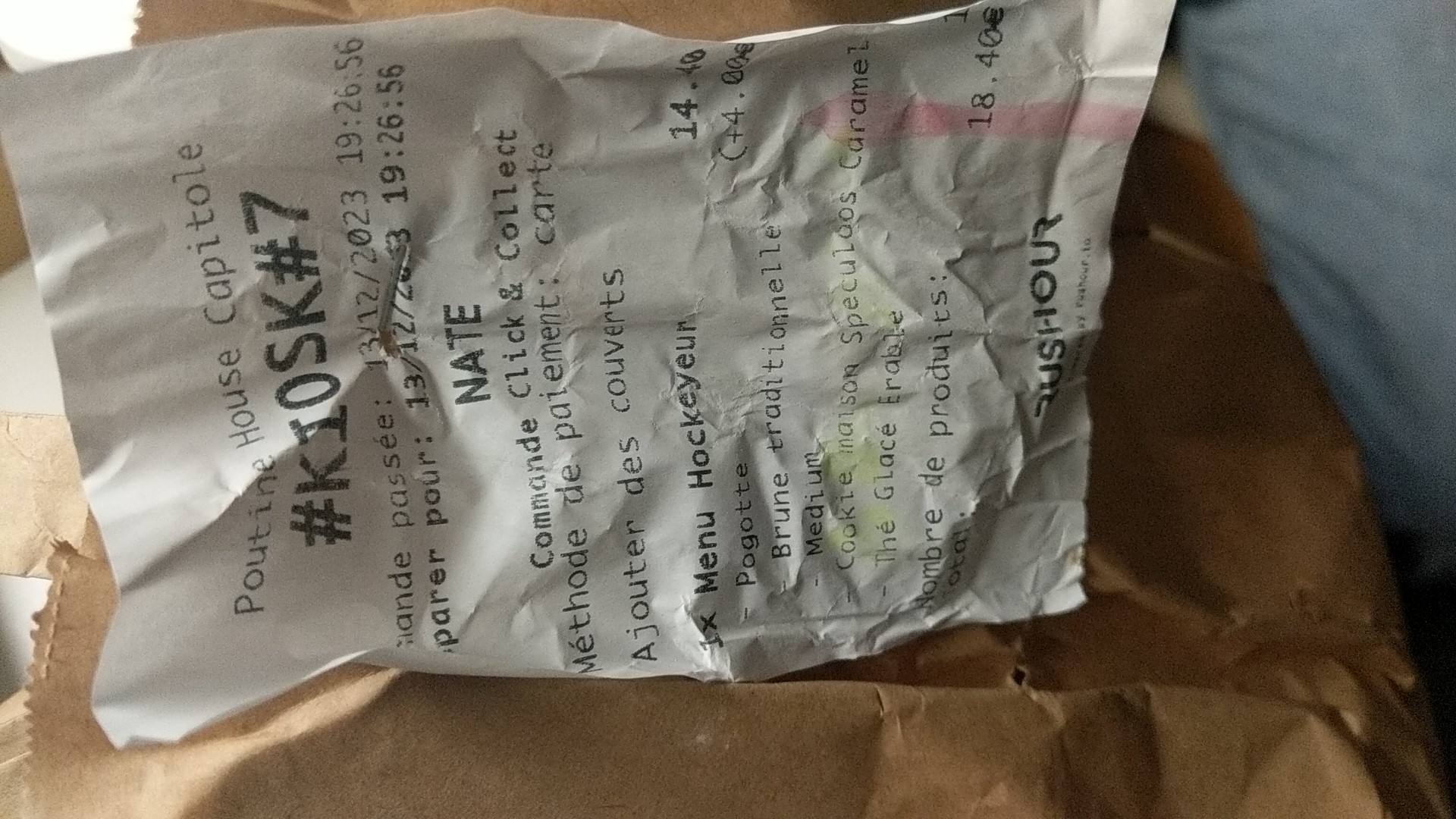 Nous avons commander avec uber eat aucun reproche envers uber eat en revanche les poutines était mauvaise elle était fade sans goût elle ont vraiment étais faites à la va vite très déçue pour 30€ ça fait mal quand même