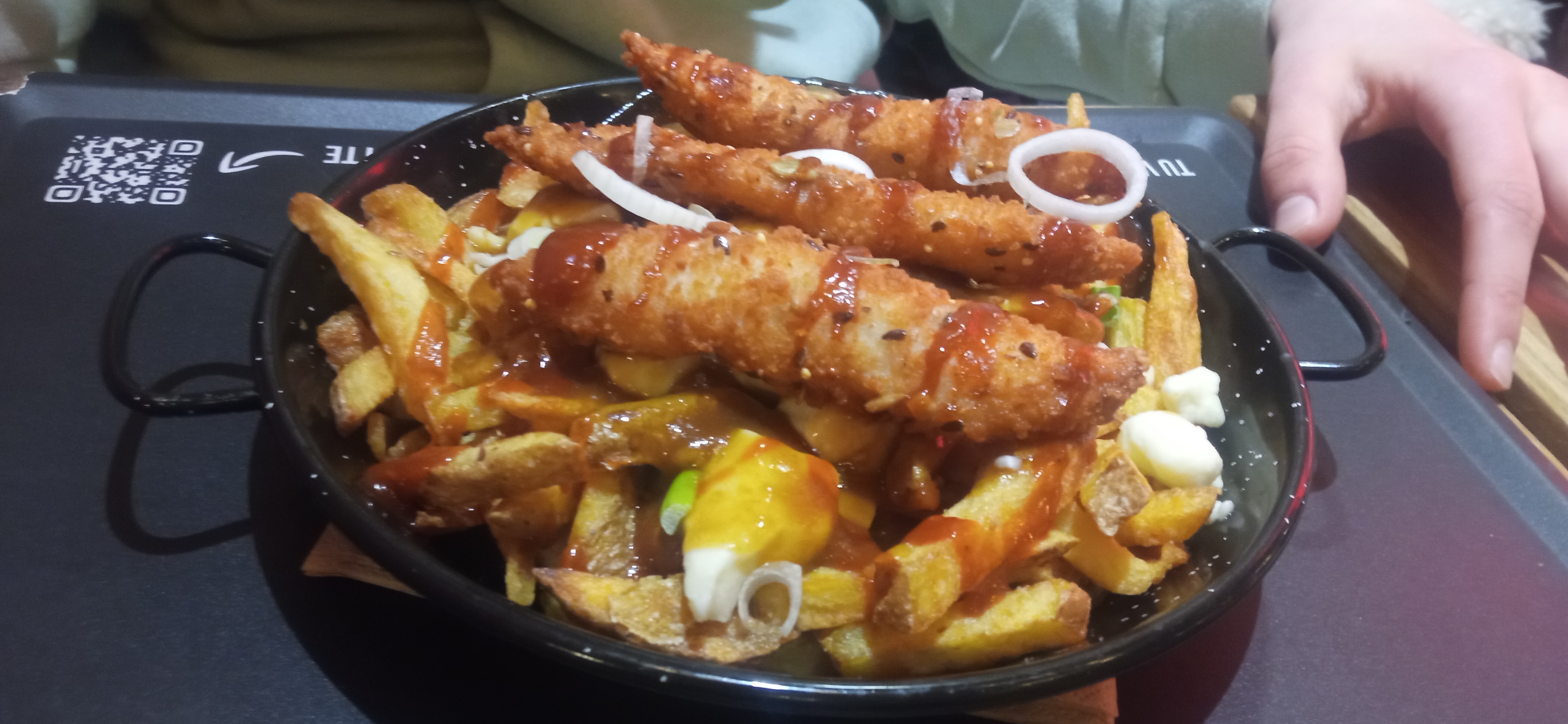 Un 02 novembre en terrasse à Brest sous un beau soleil. Plat original et copieux mais pas sans calories :) !!! Servi rapidement et personnel très sympathique. Décoration intérieur super j’adore !!!