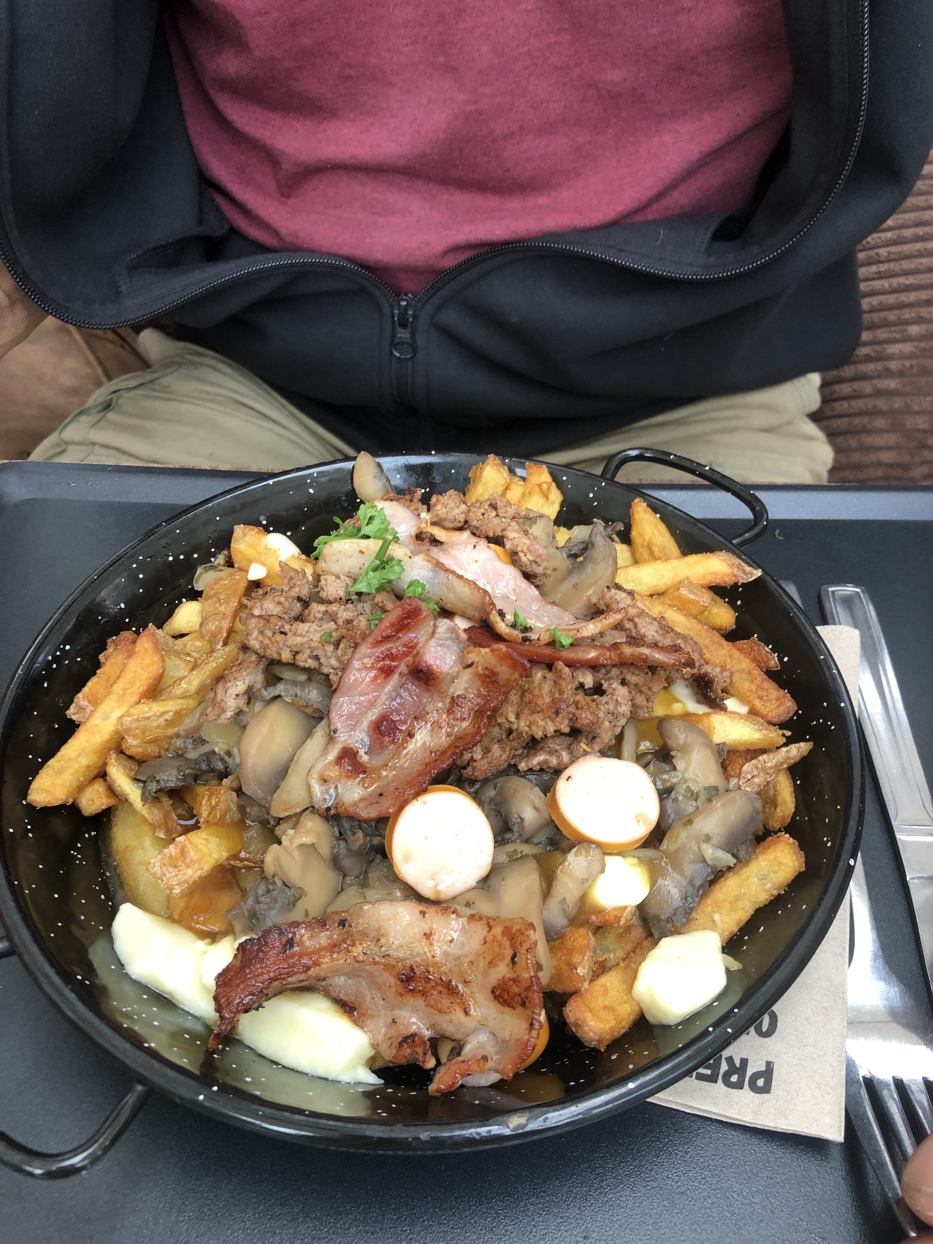 Plutôt sympa comme endroit . La poutine très bonne mais pas autant qu'à Montréal. Le seul ( gros ) bémol... les WC...