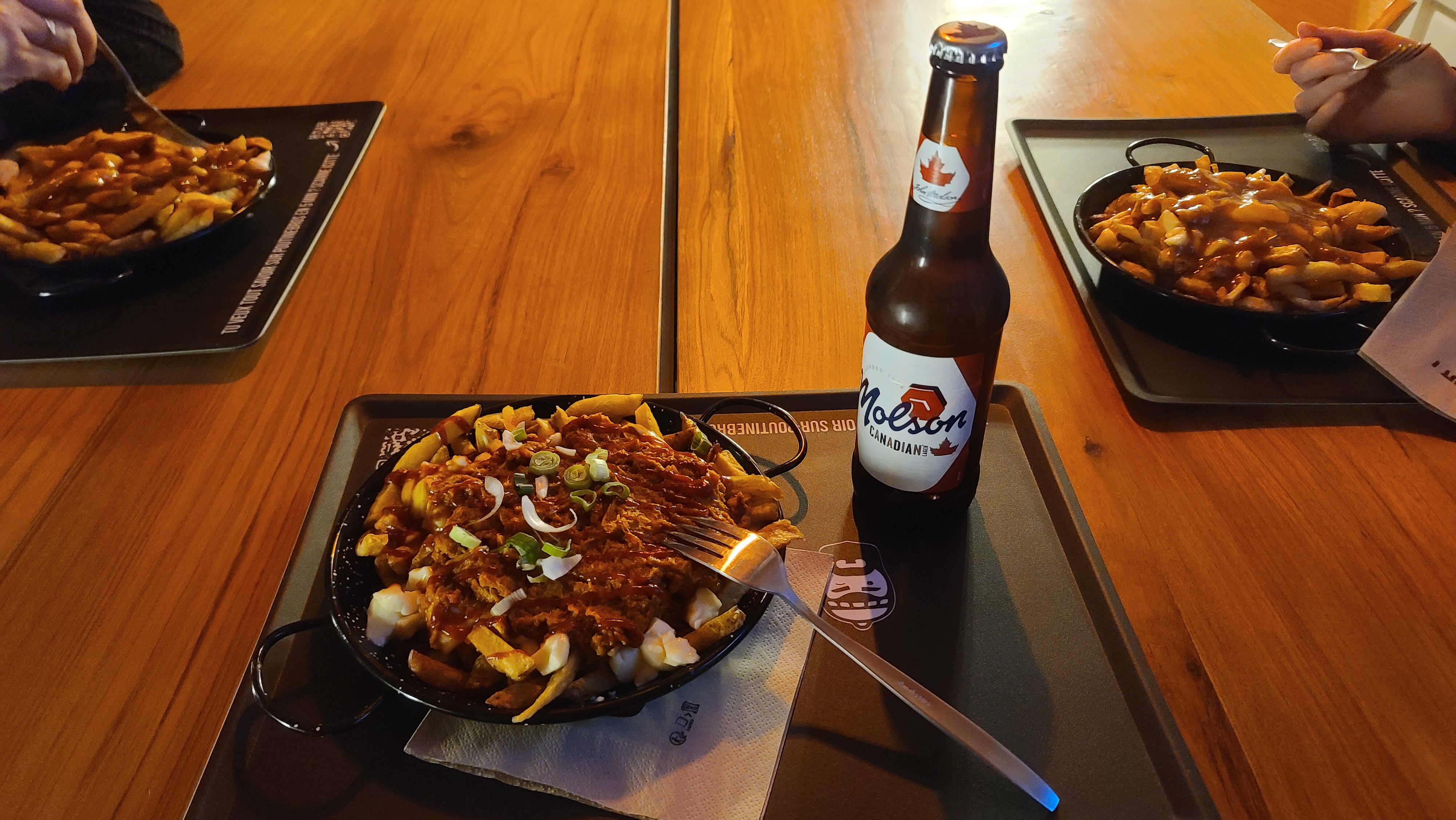 Pour passer un moment de dépaysement en mangeant le plat emblématique du Québec 🇲🇶, la poutine, vous êtes au bon endroit. La bière Molson Typique du Brasseur de Montréal est parfaite pour accompagner votre plat 🍺 Personnel sympathique en tenue du Pays, portions généreuses, décors chaleureux, prix corrects. Il ne manque que la neige et les températures négatives 🤣 Cela était notre 2eme visite depuis l'ouverture et nous reviendrons 👍✌